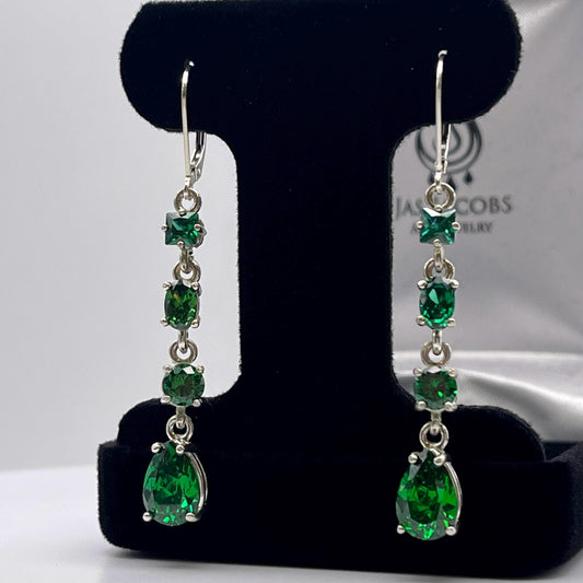 6.6ctw Multi Cut Emerald Earrings Drop Dangle 2” Teardrop