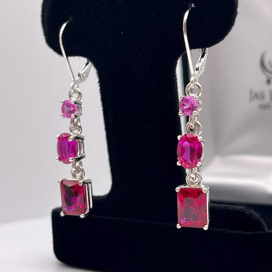 5ctw Multi Cut Pink Sapphire and Ruby Earrings Valentines Jewelry Gift