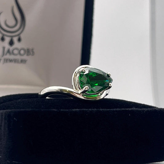 2.5ct Pear Cut Emerald Ring Size 6 Jewelry Gift Side Set Teardrop Ring