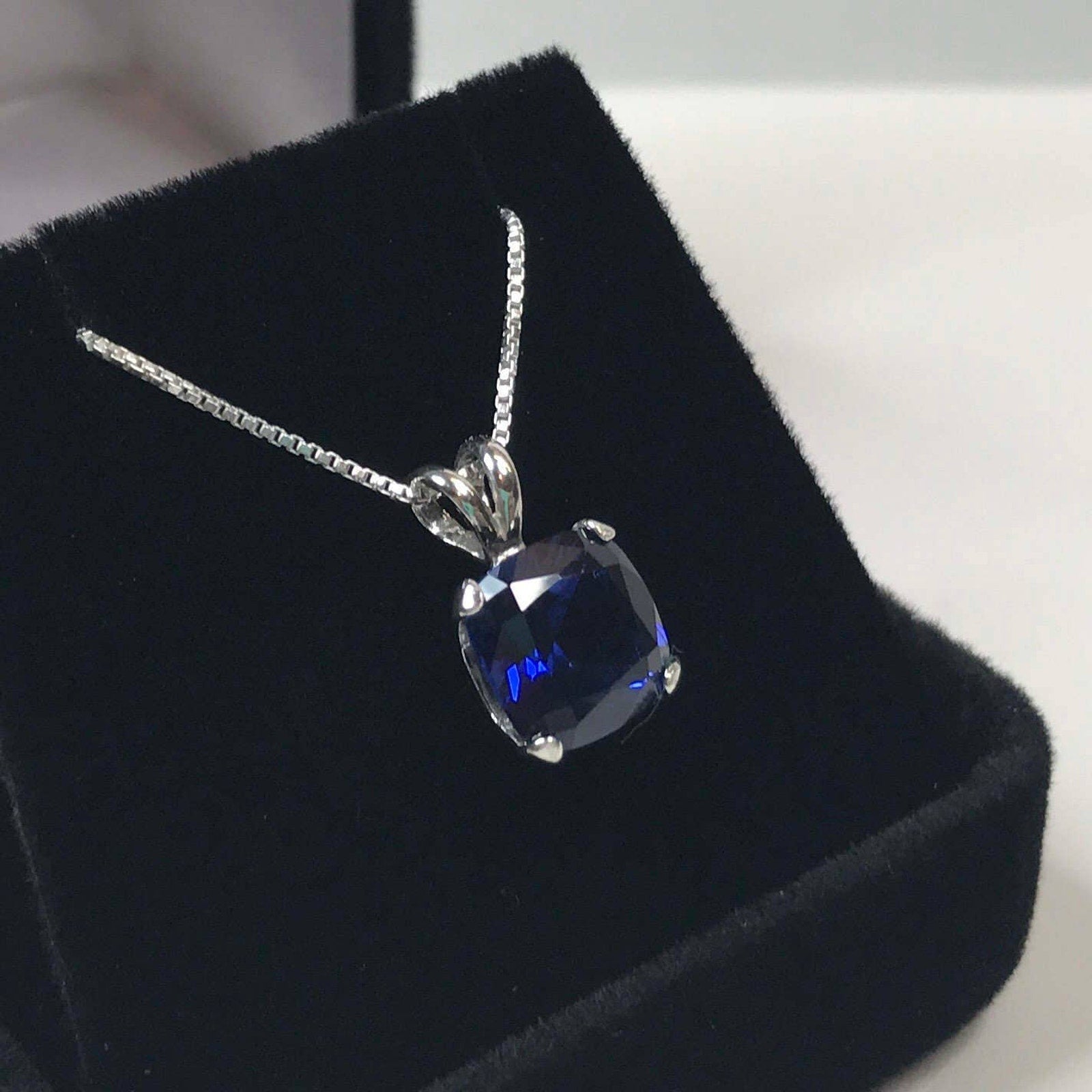 2.5ct Cushion Cut Sapphire Necklace Solitaire Pendant Necklace Trending Fine Jewelry Gifts September Blue Sapphire 18"