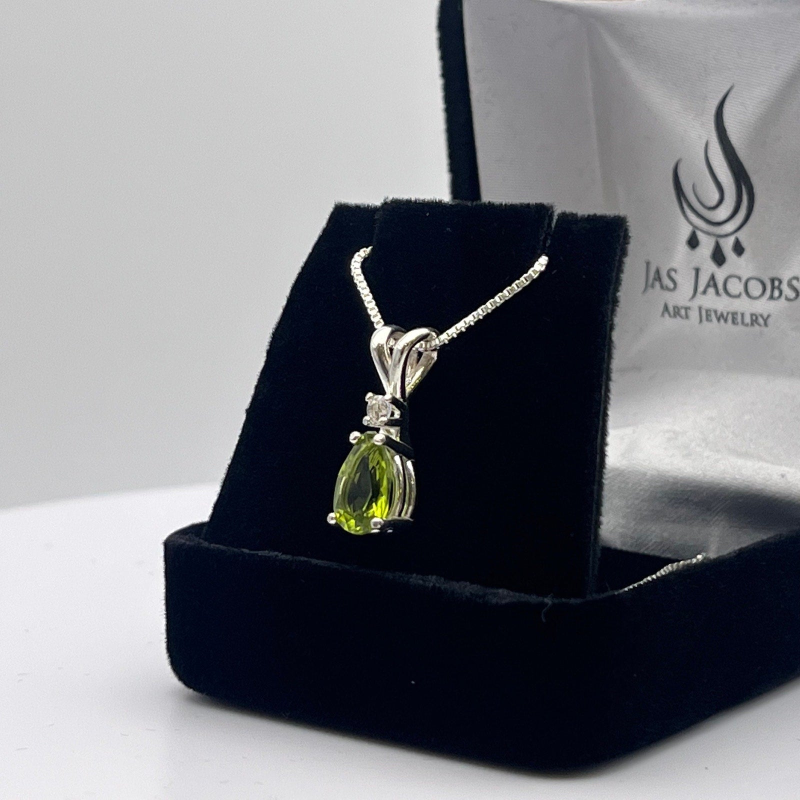 BEAUTIFUL 1.25ctw Pear Cut Peridot Necklace Peridot Pendant Sterling Silver Trending Jewelry Gift August Birthstone 16” 18”