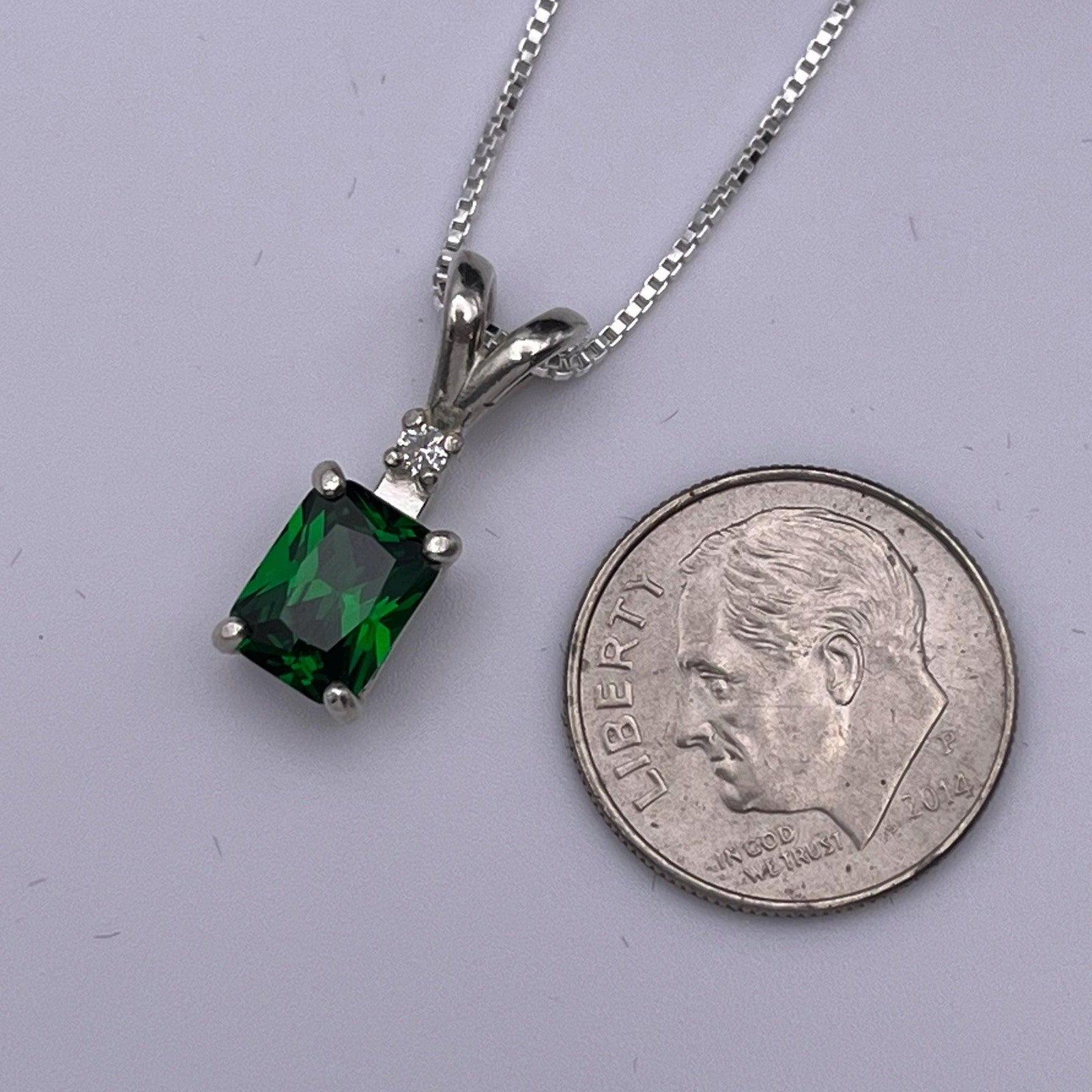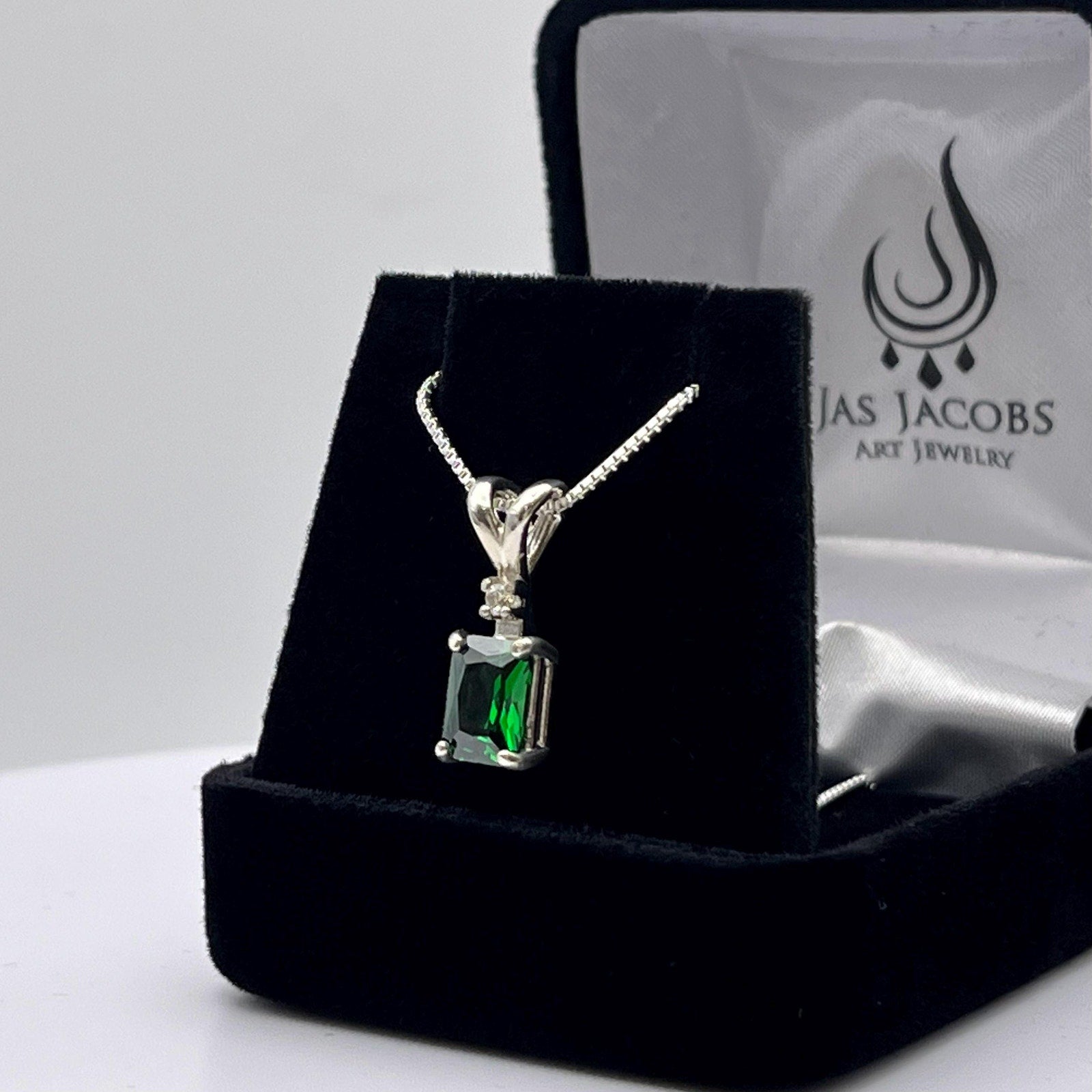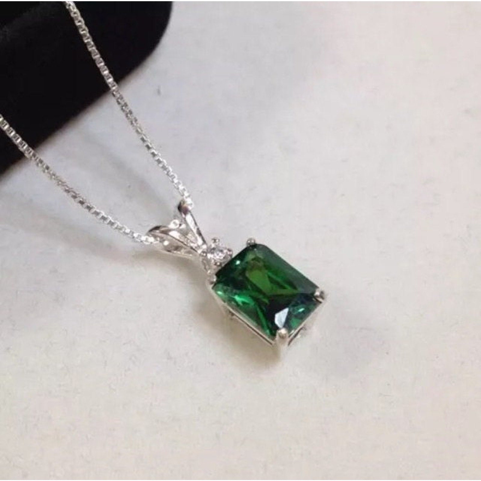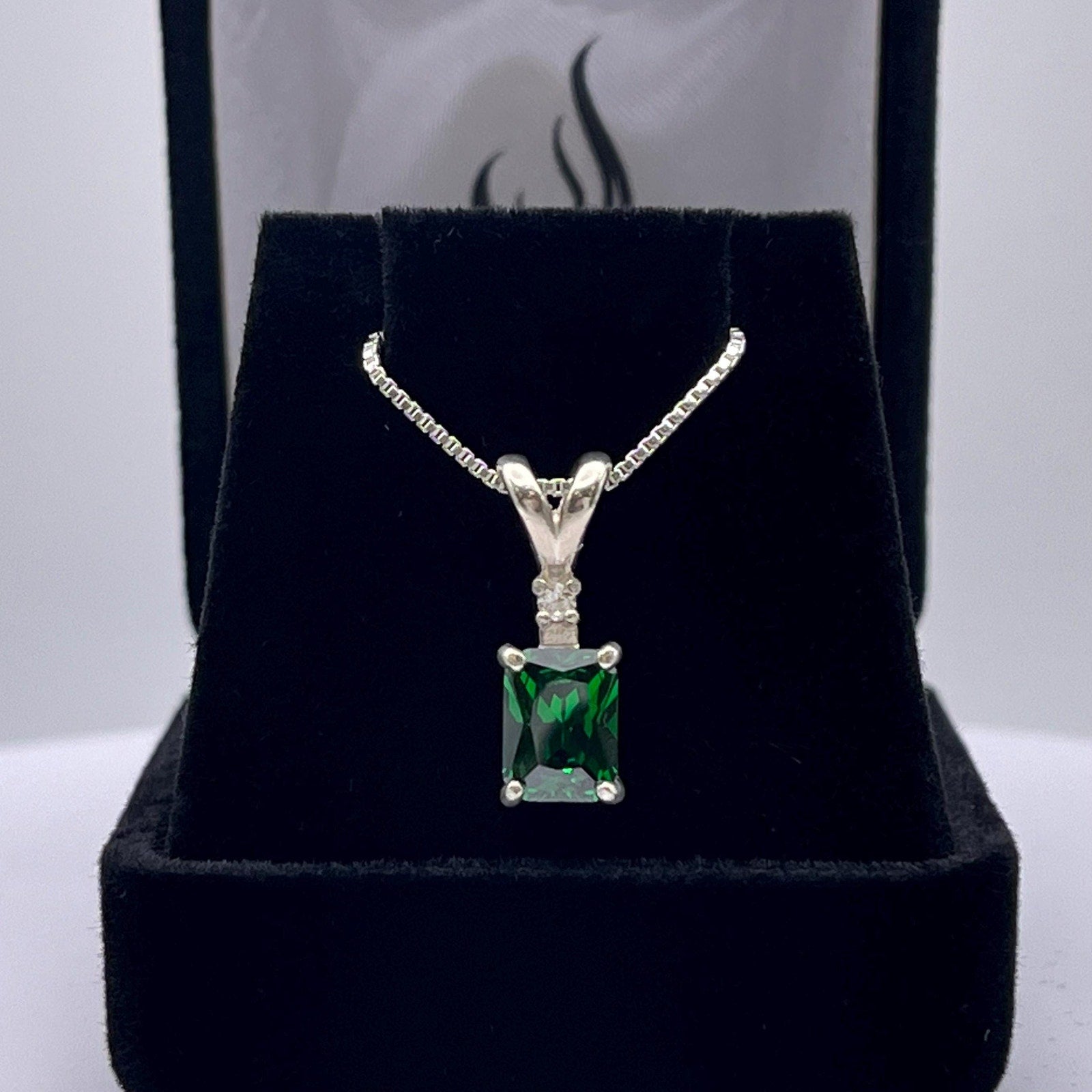 Beautiful 1.5ct Emerald & White Sapphire Sterling Silver Pendant Necklace Jewelry Gifts Trending Jewelry Green Emerald Cut Emerald Necklace