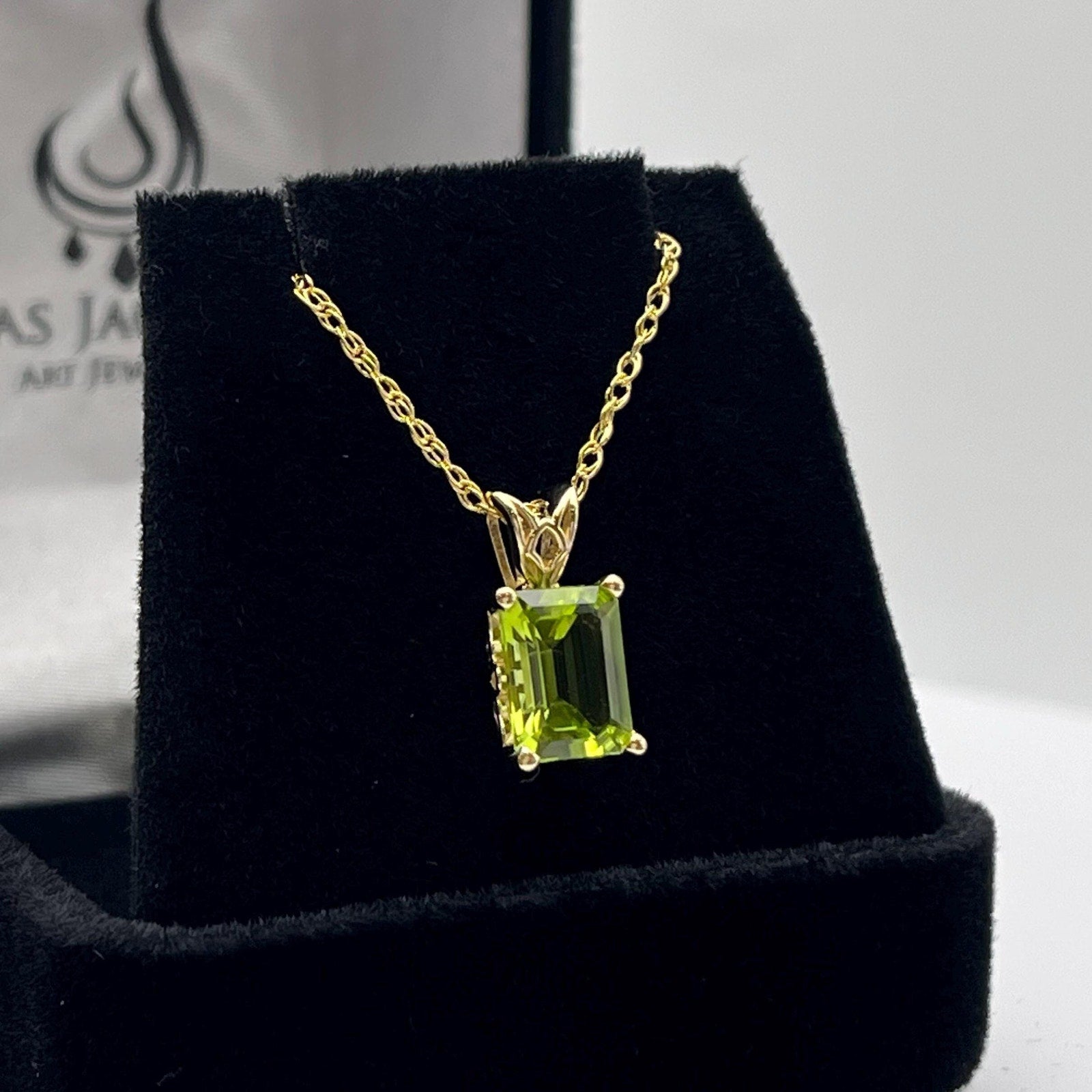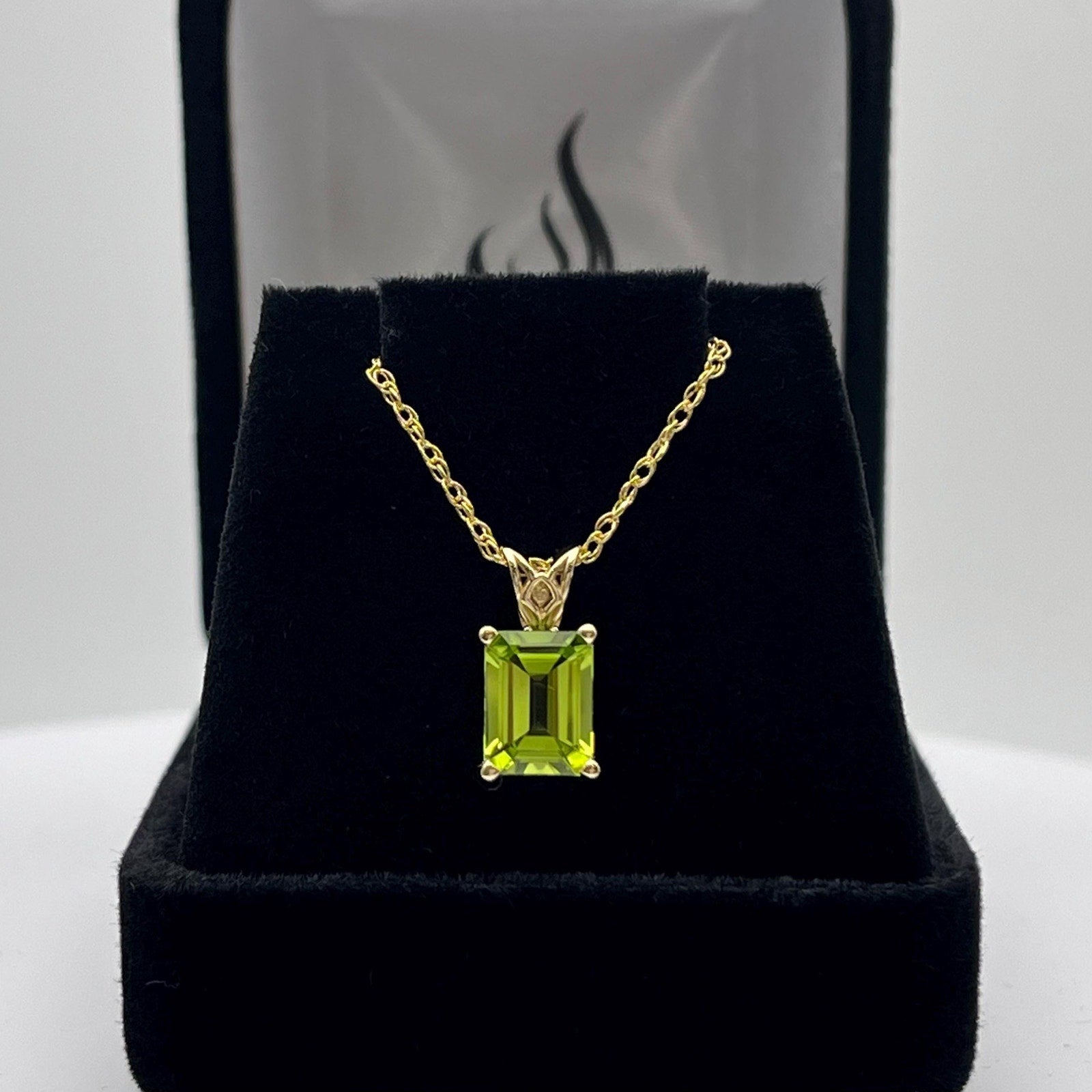 Beautiful 1.7ct Genuine Emerald Cut Peridot Necklace in 14k Gold Jewelry Gift August Birthstone jewelry
