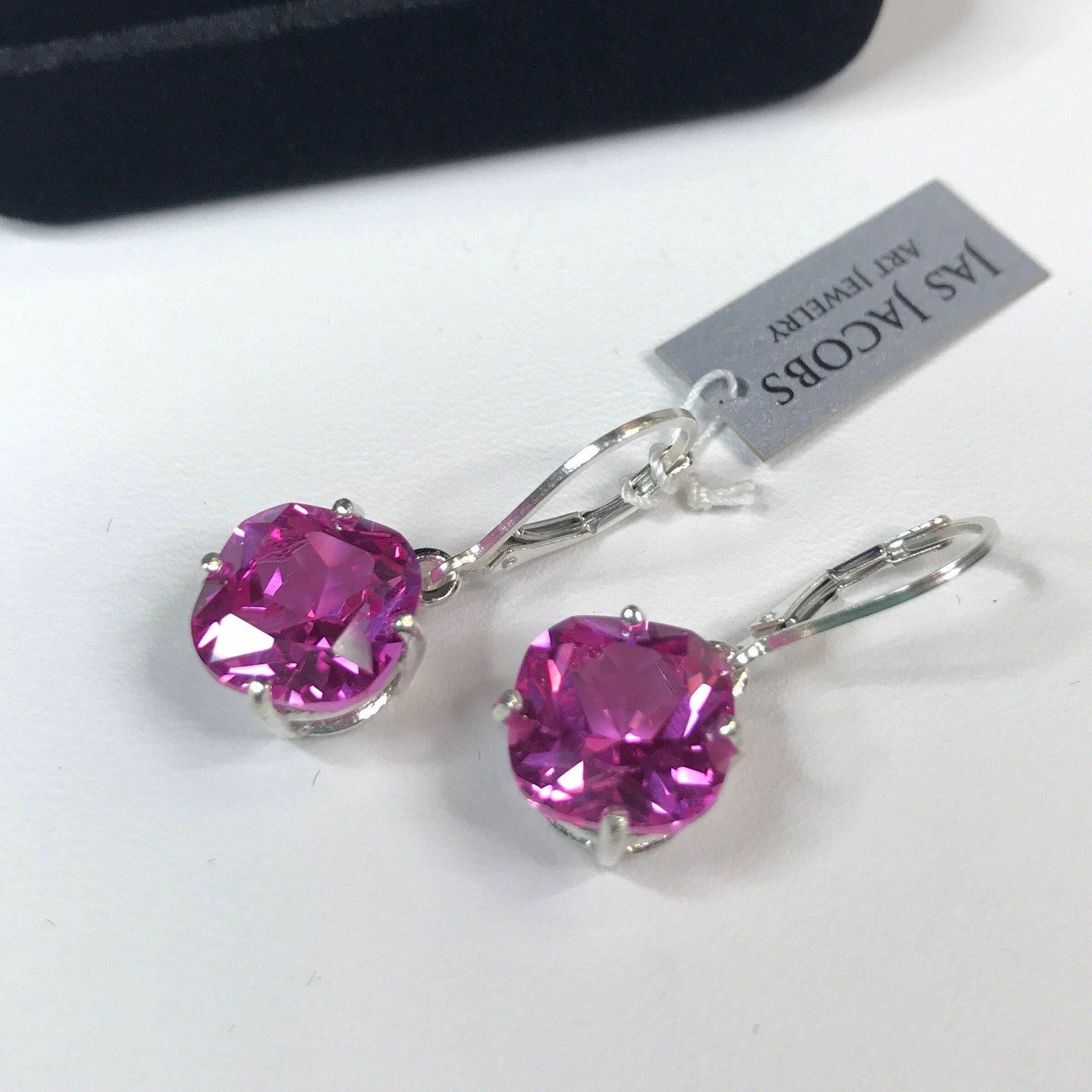 Beautiful Pink Sapphire & Sterling Silver Leverback Earrings