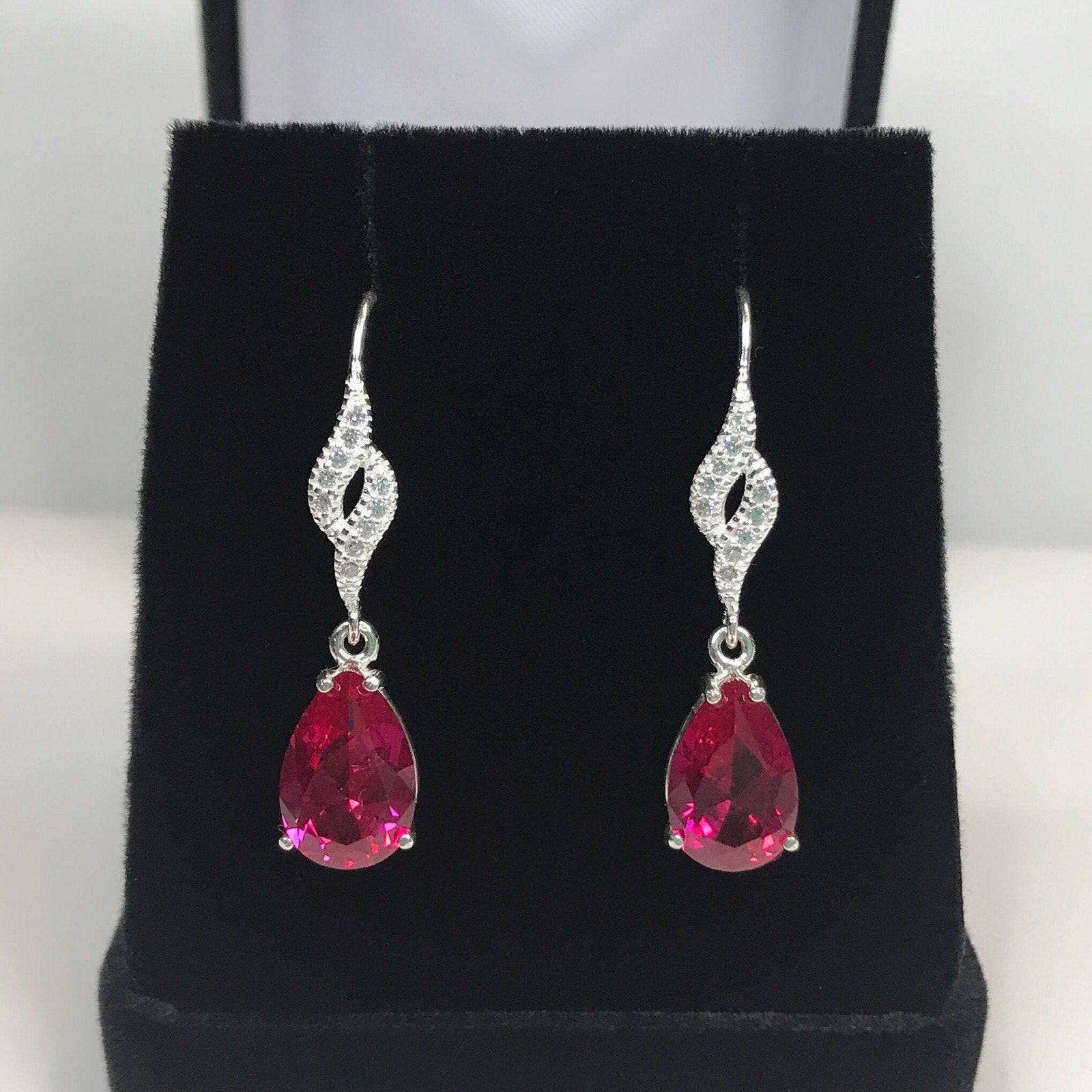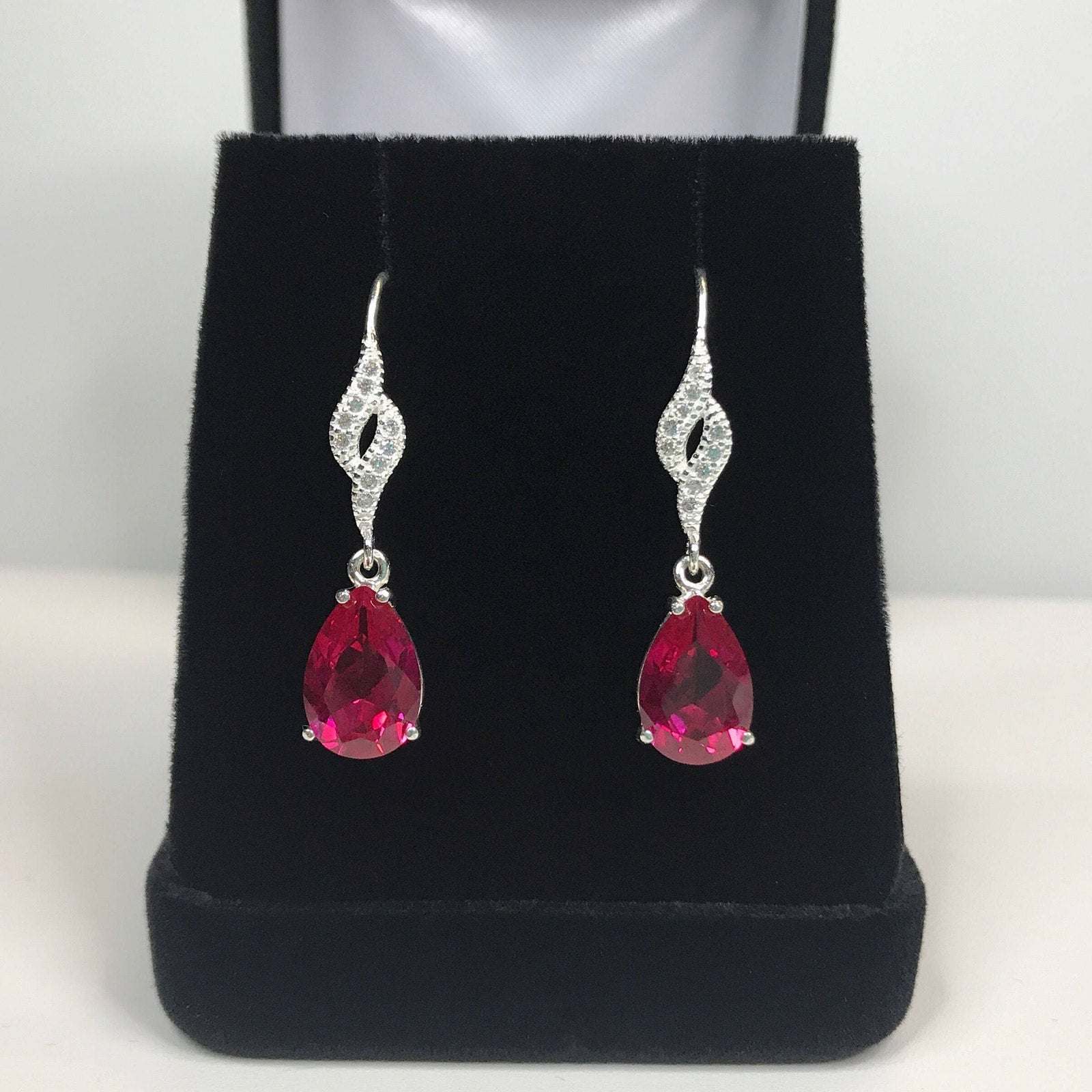 Beautiful 10ctw Pear Cut Ruby Earrings White Sapphire Earrings Pear Drop Dangle