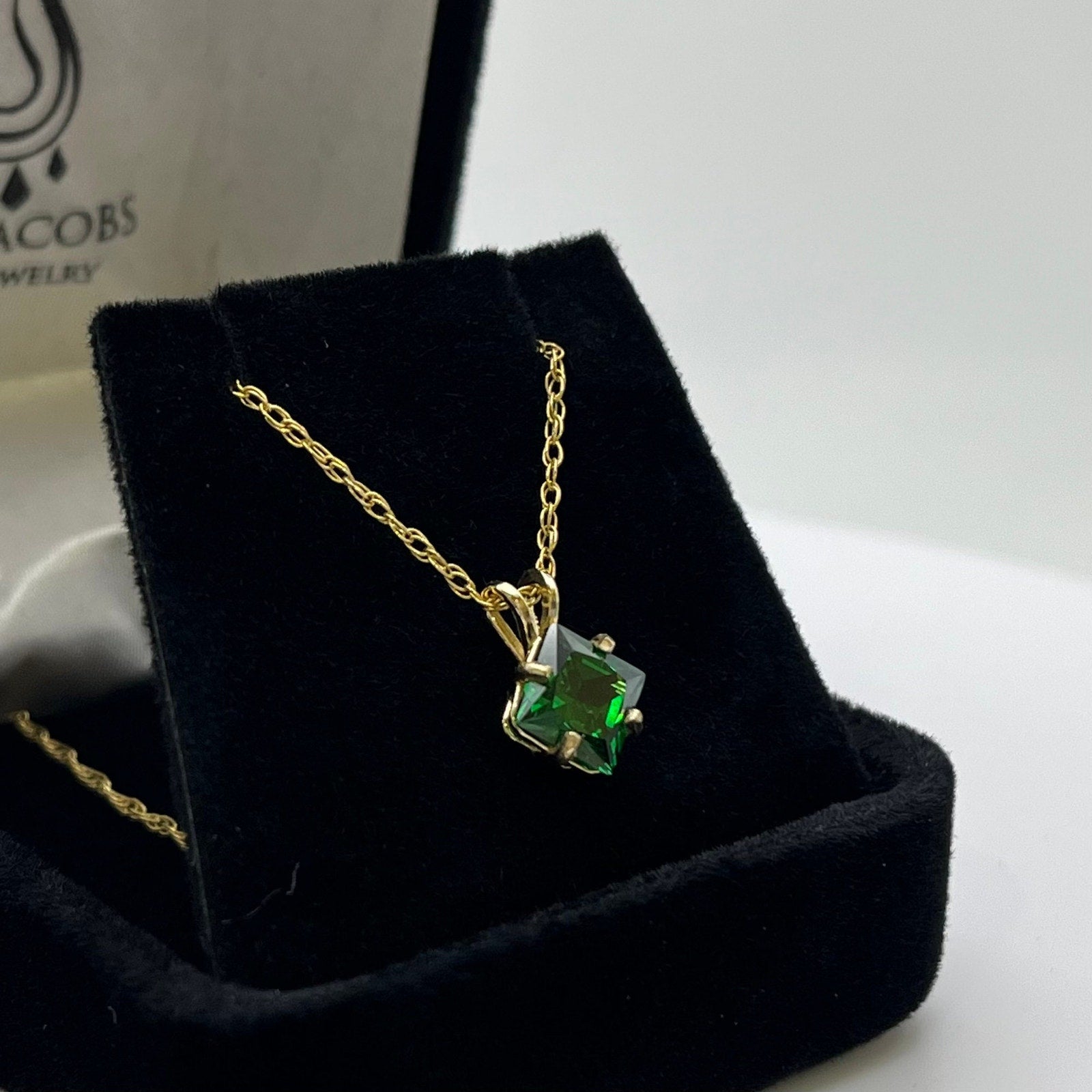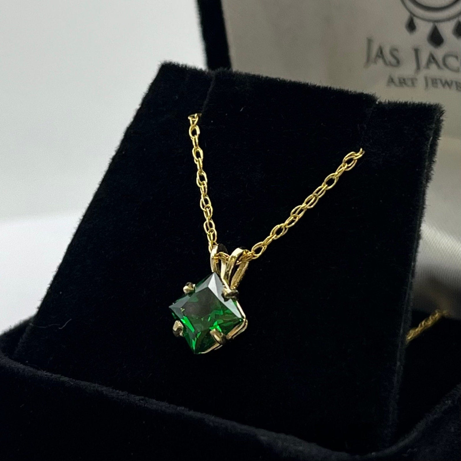 Beautiful 14k Gold 1ct Princess Cut Emerald Necklace Trending Jewelry Gift May Birthstone s Day