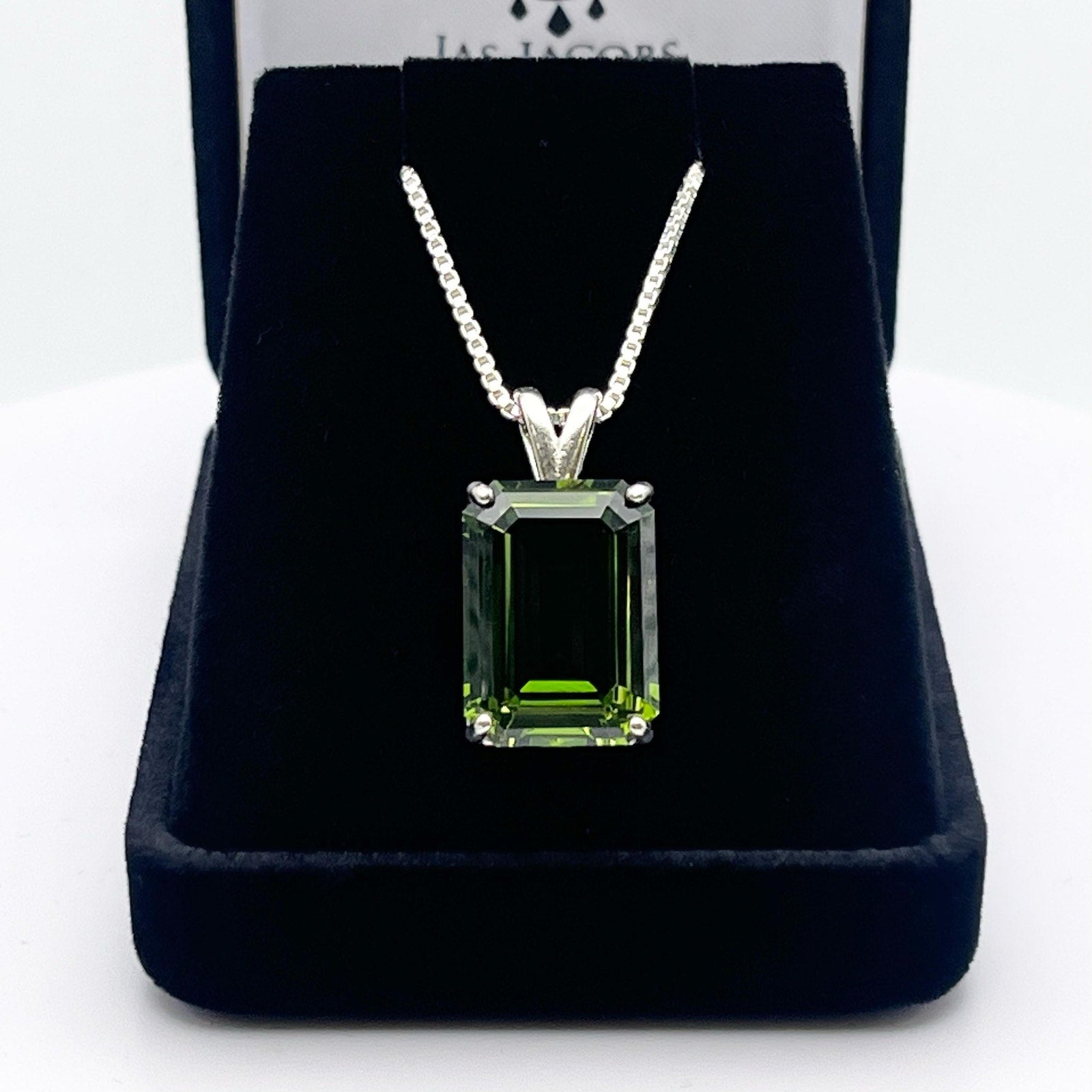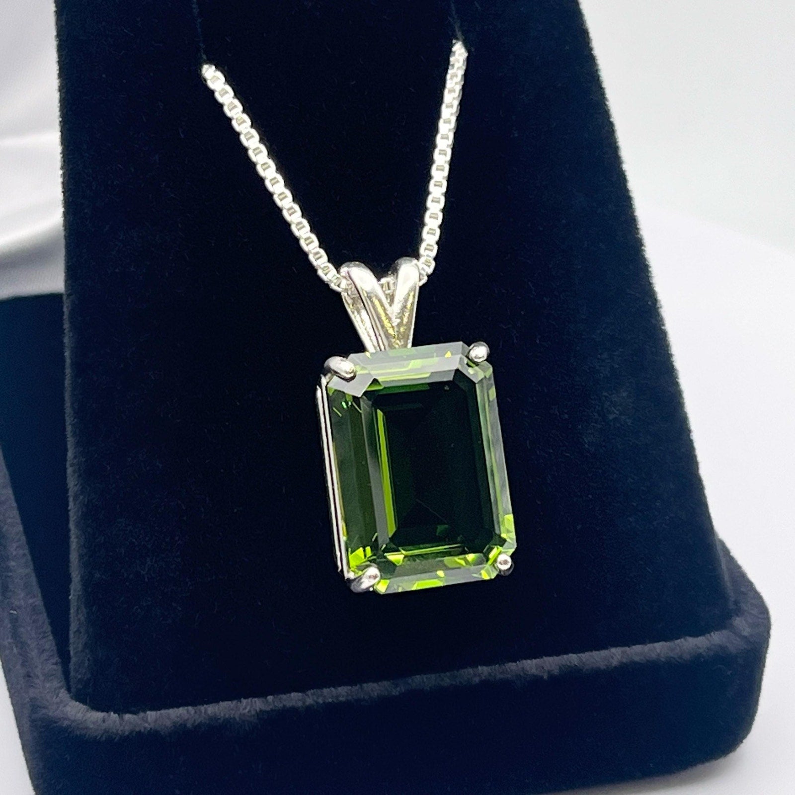 BEAUTIFUL 18.5ct Emerald Cut Peridot Necklace in Sterling Silver Pendant Jewelry Gift Holiday August Birthstone Large Peridot Necklace Lab