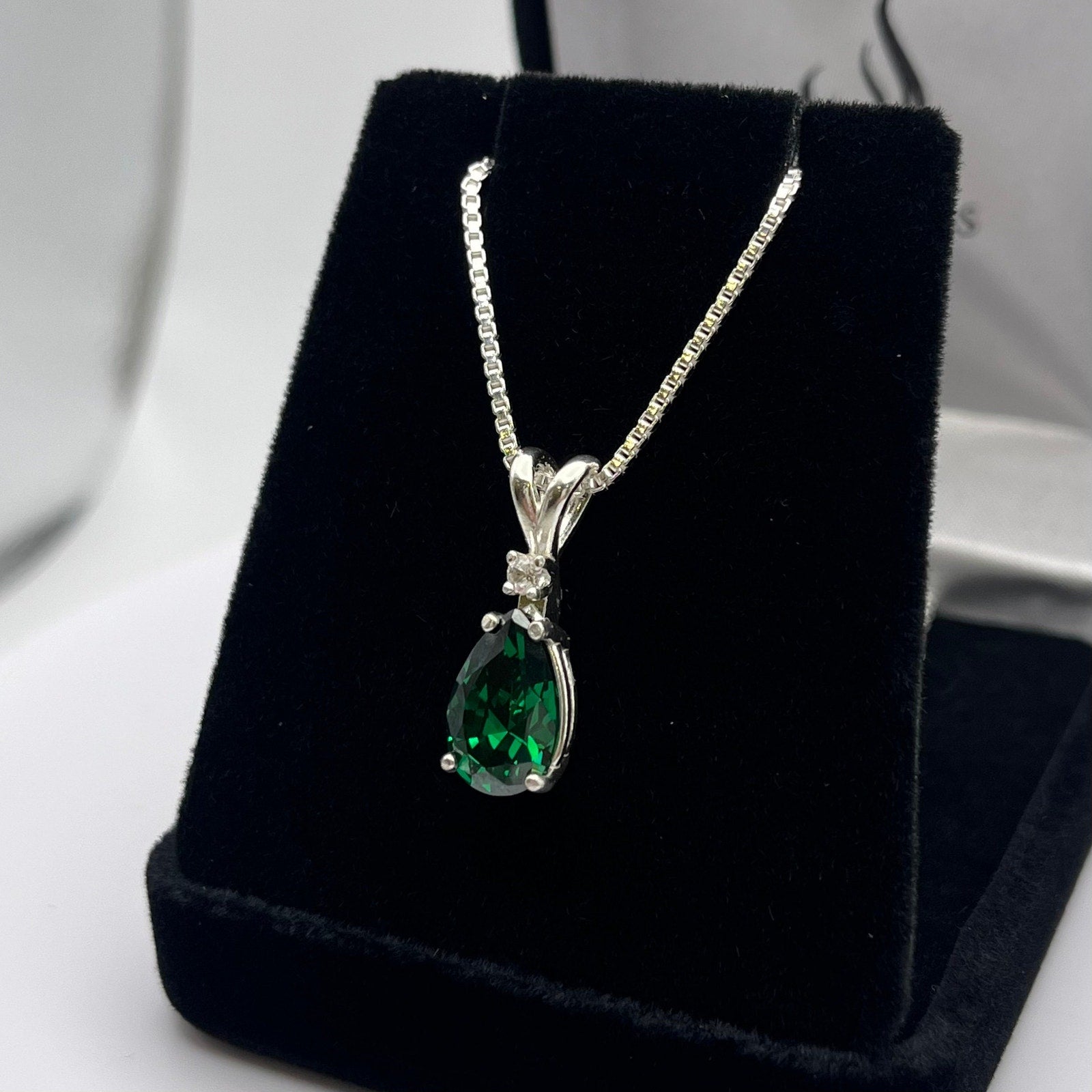 Beautiful 2.3ctw Pear Cut Emerald Necklace with White Sapphire Accent Pendant Necklace Jewelry Gift May Birthstone