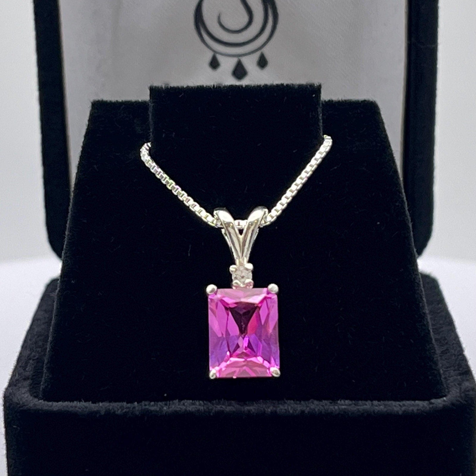 Beautiful 2.5ct Emerald Cut Pink Sapphire Necklace Trending Jewelry Gift Holiday