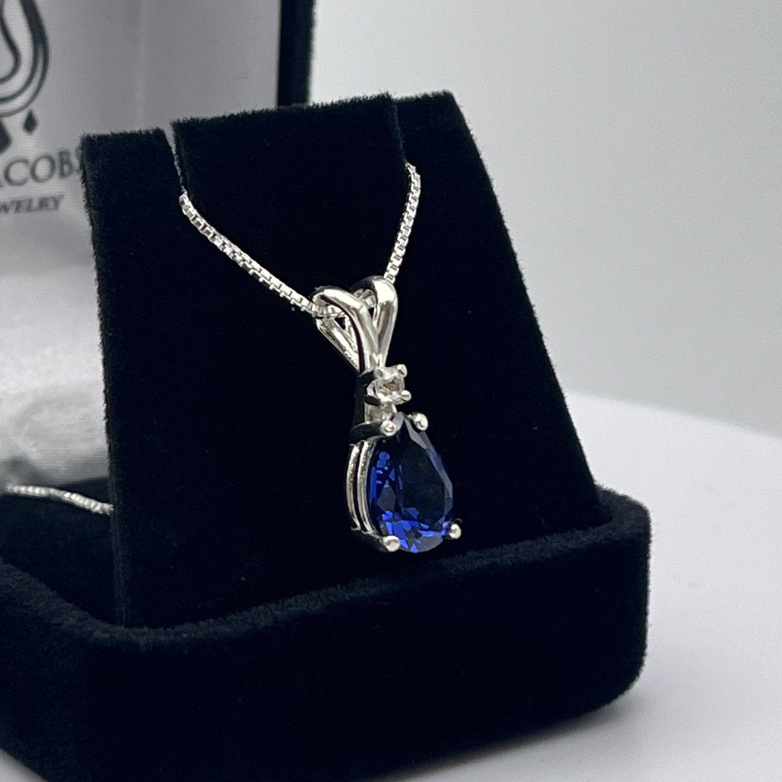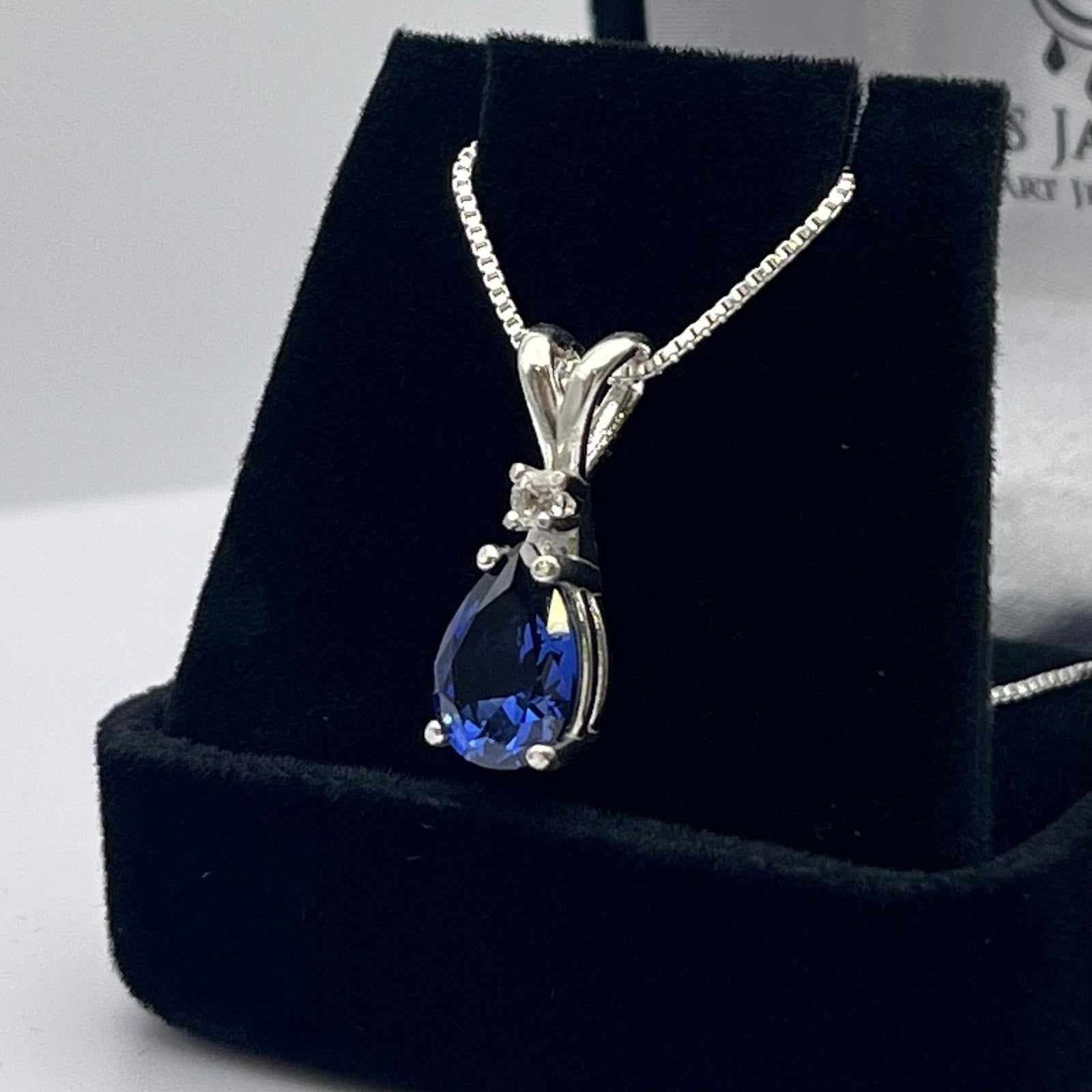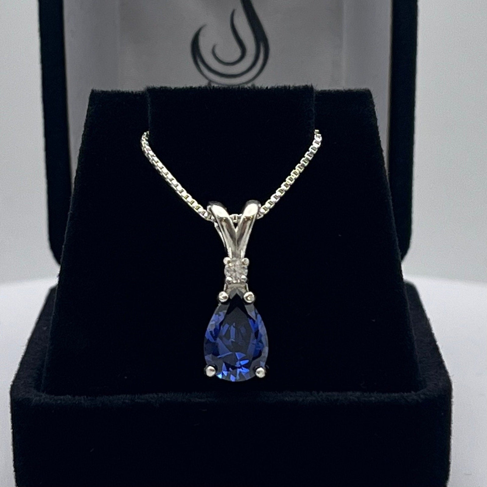 Beautiful 2.5ct Pear Cut Sapphire Necklace White Sapphire Accent Bridal Jewelry Gift Teardrop Sapphire Necklace