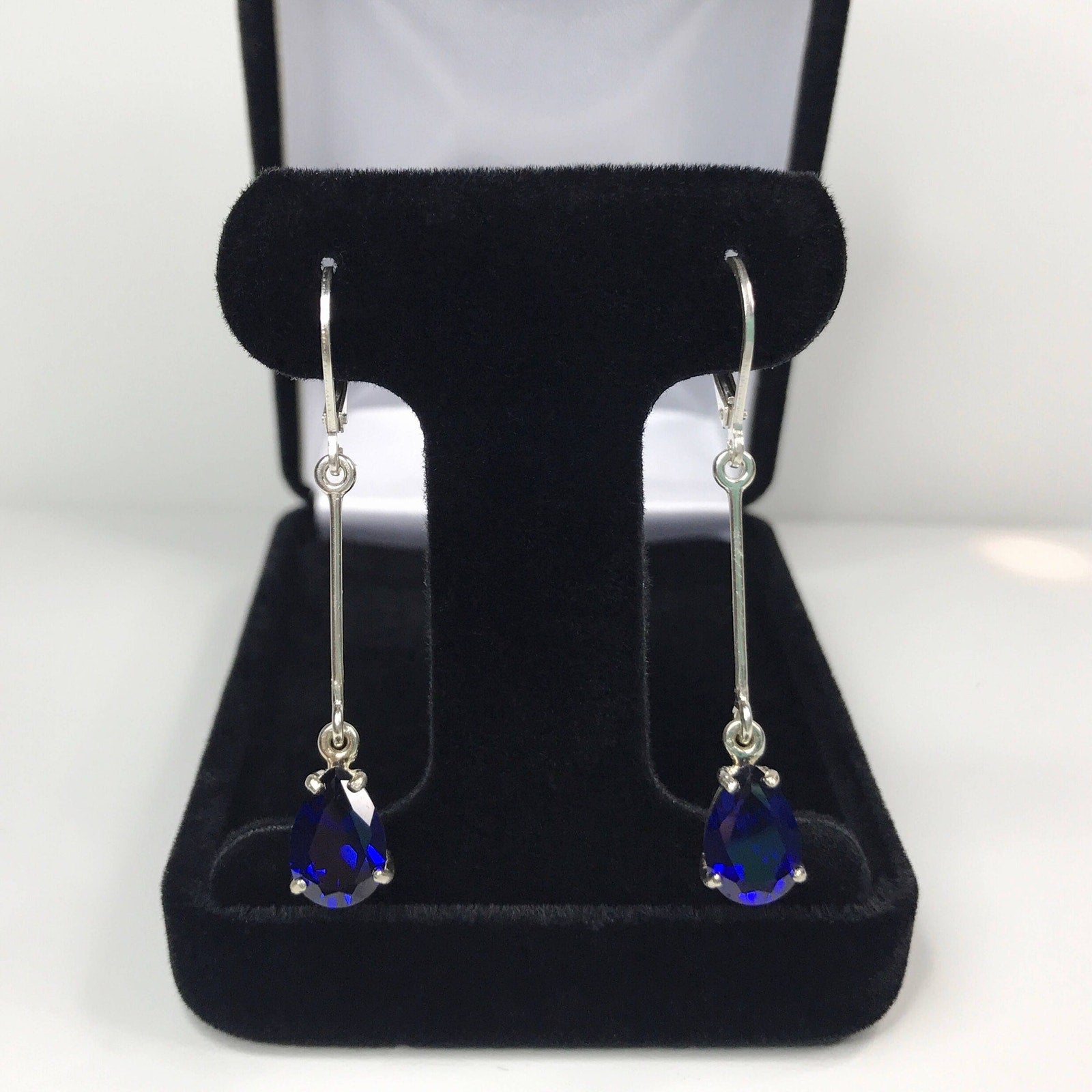 Beautiful Sapphire Leverback Dangle Earrings