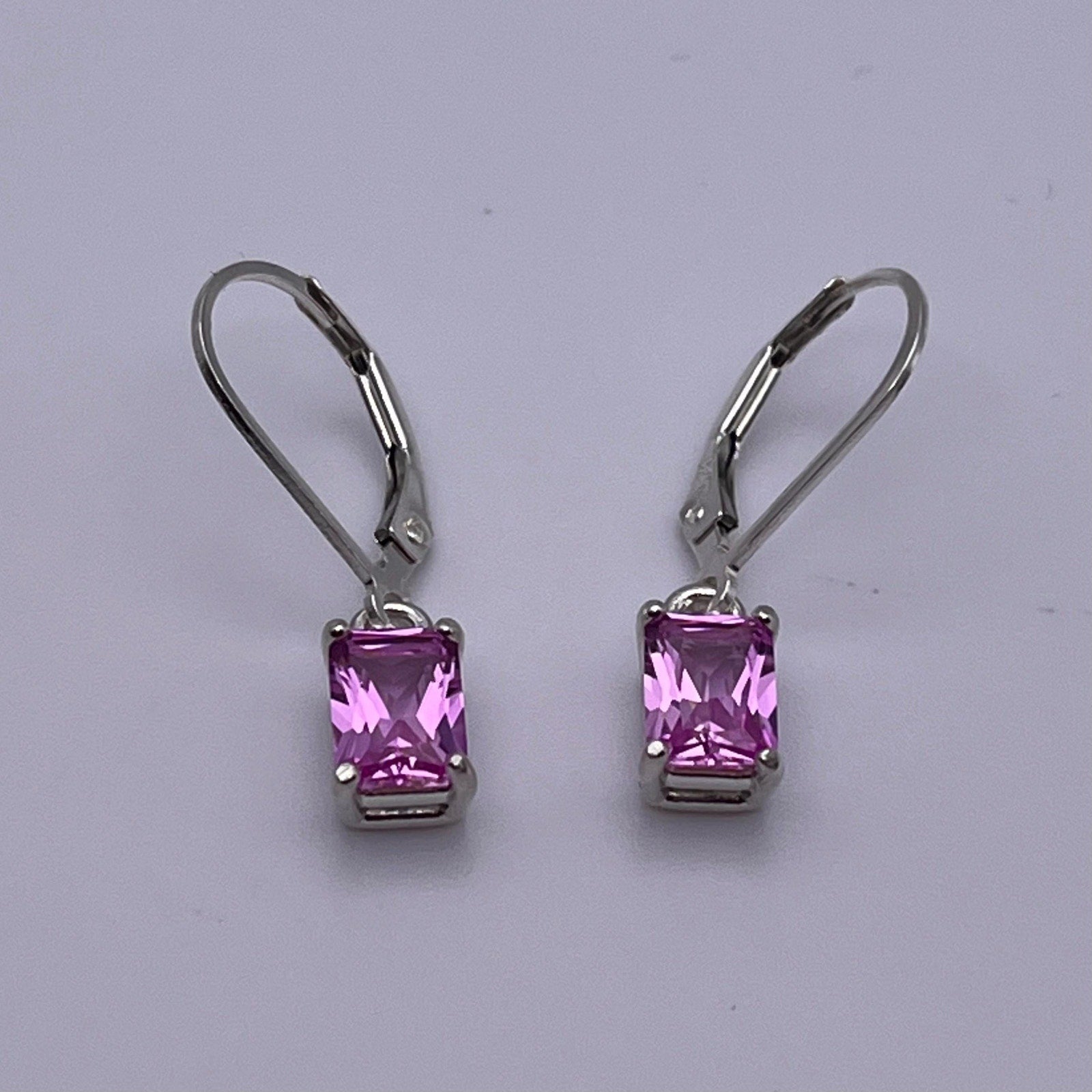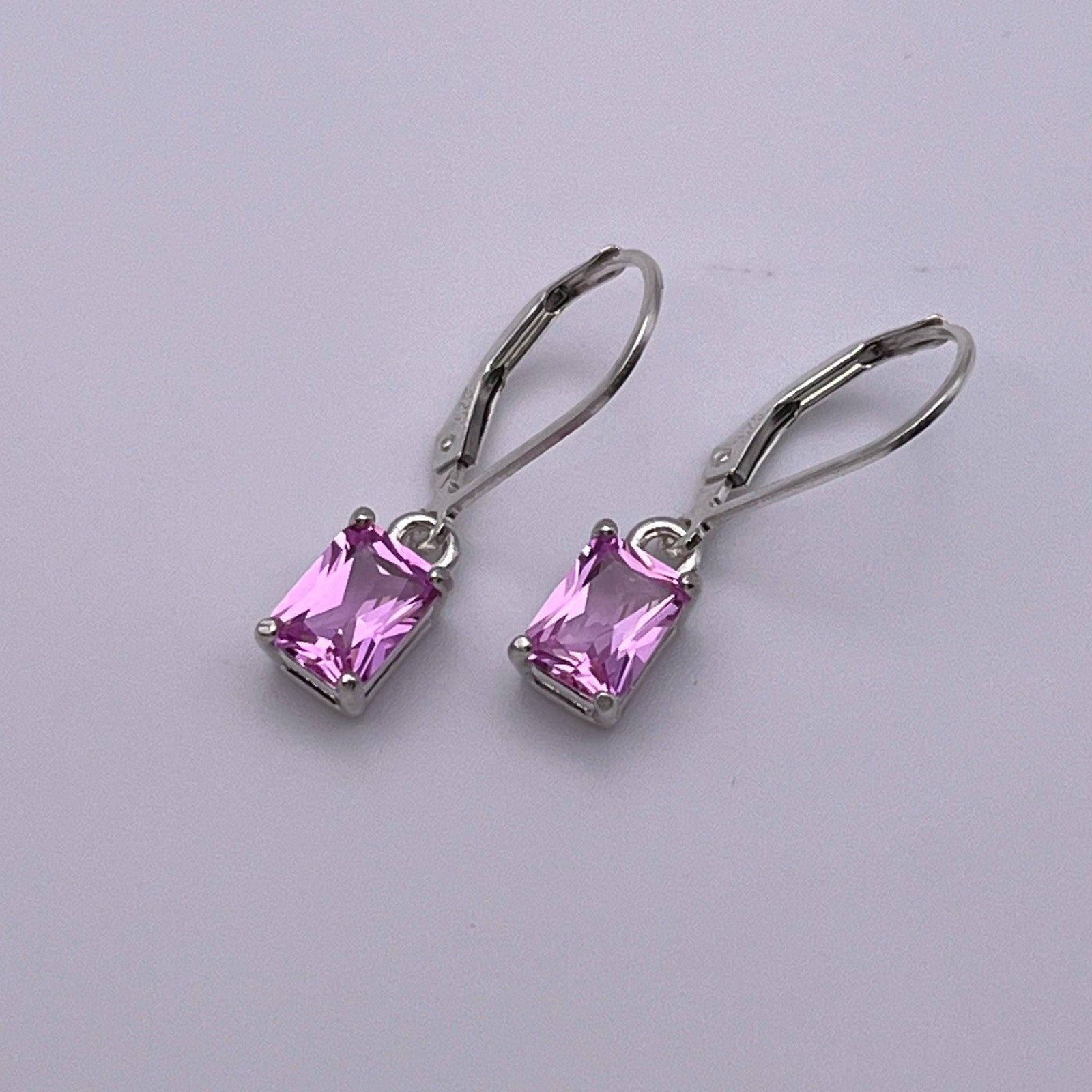 BEAUTIFUL 2ctw Emerald Cut Pink Sapphire Sterling Silver Drop Dangle Earrings Lever Jewelry Trend Jewelry and Gemstones Pink Gemstone Gift