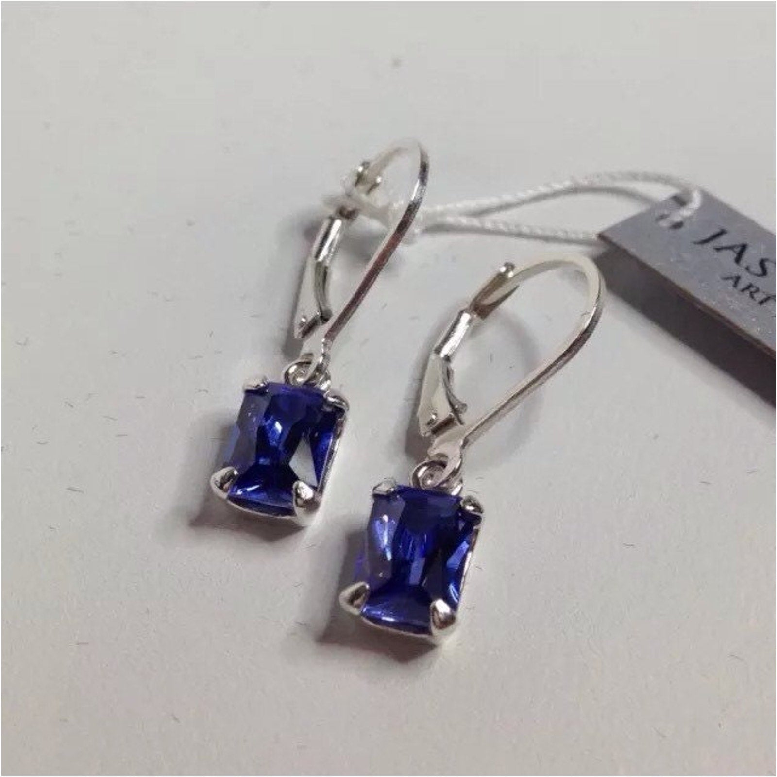 Beautiful Emerald Cut Tanzanite* & Sterling Silver Leverback Earrings