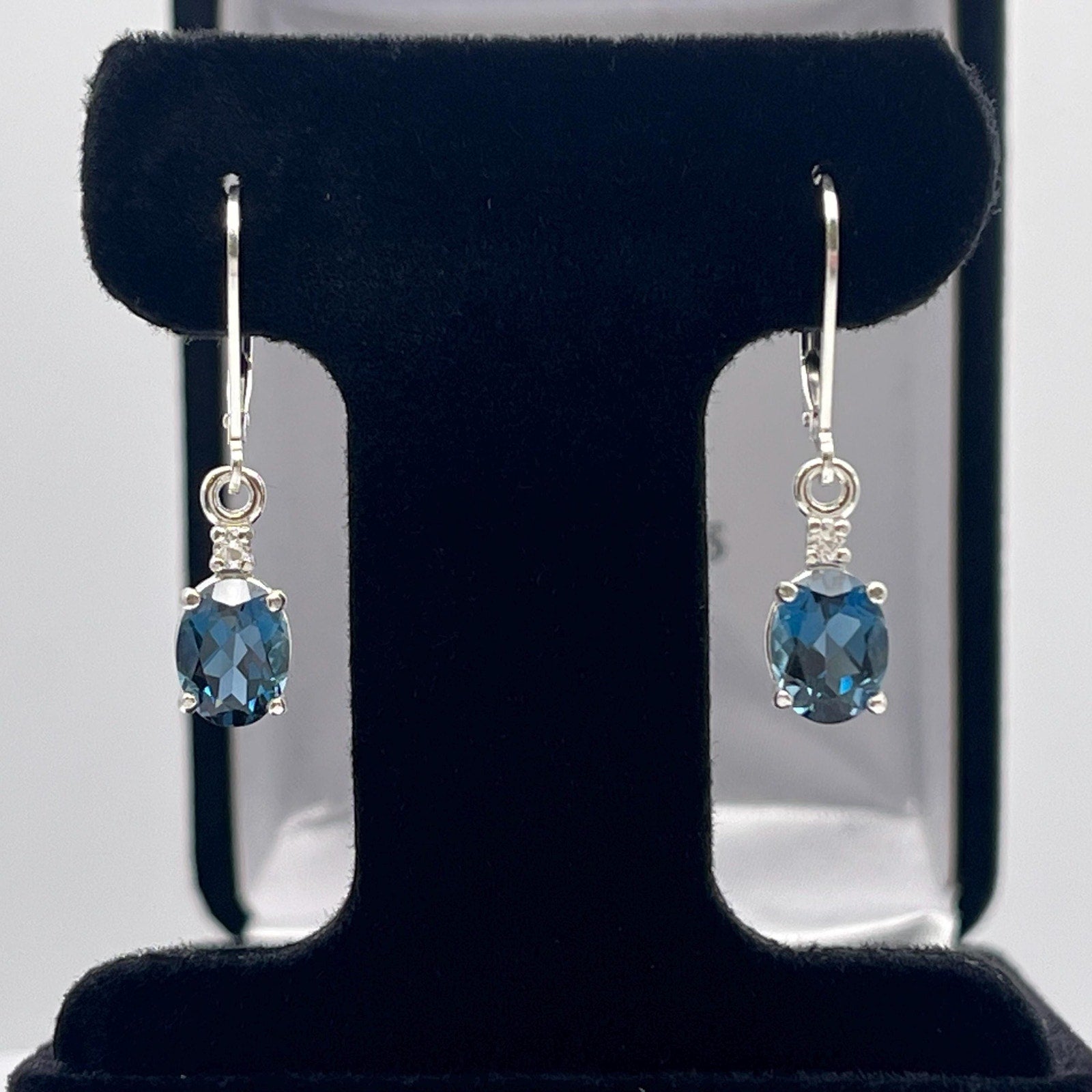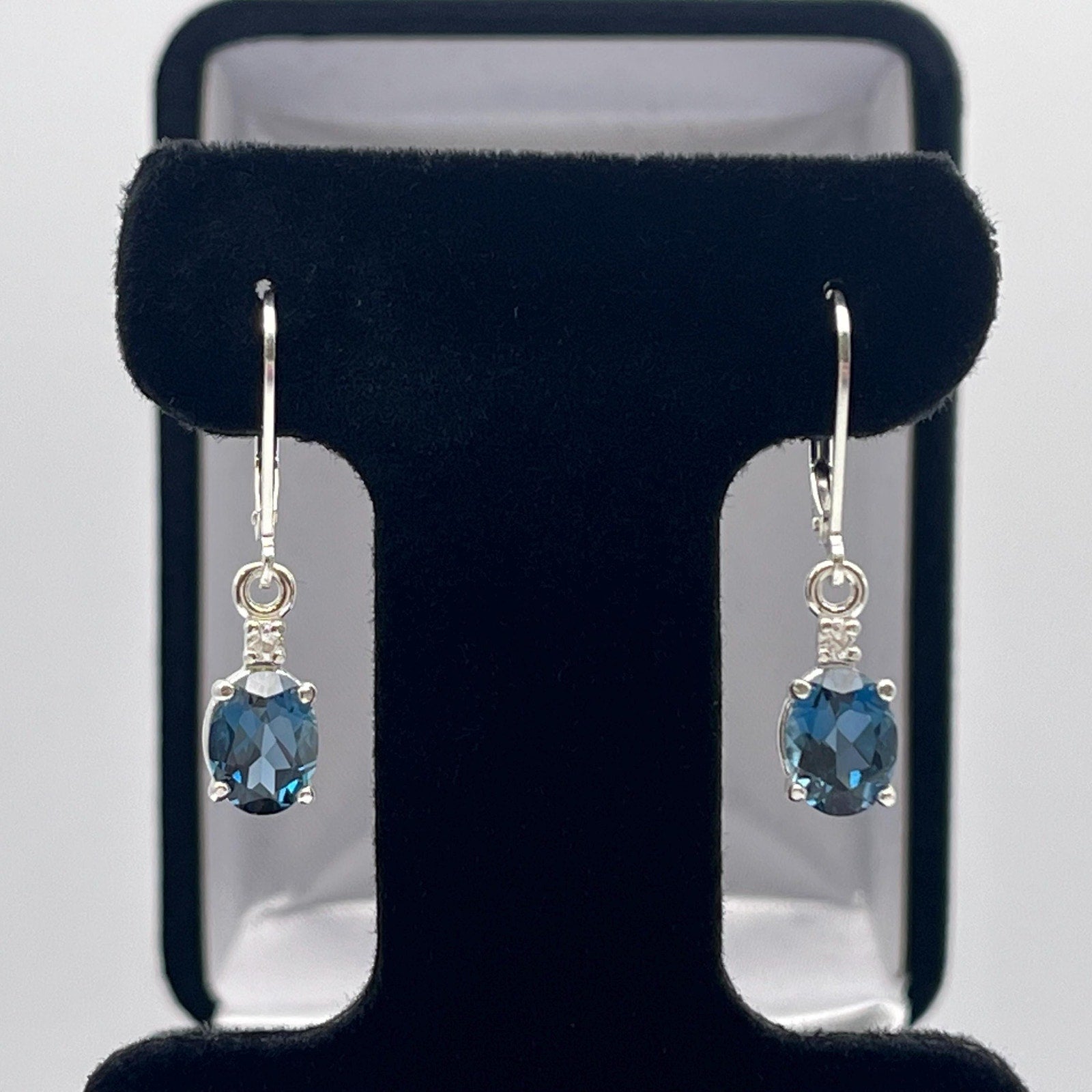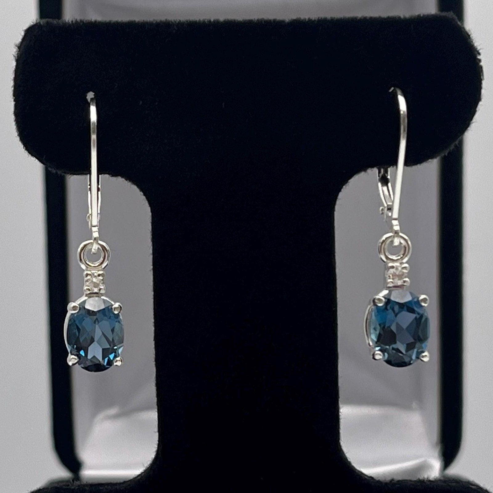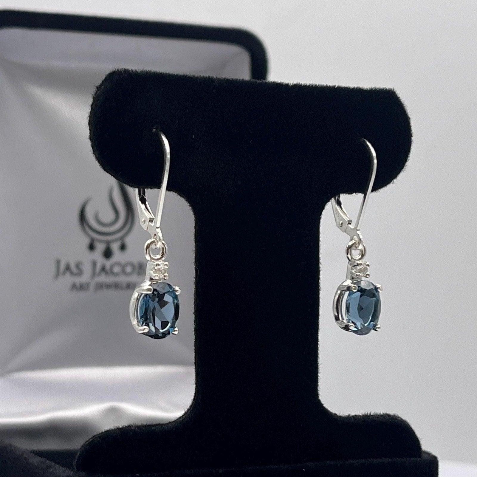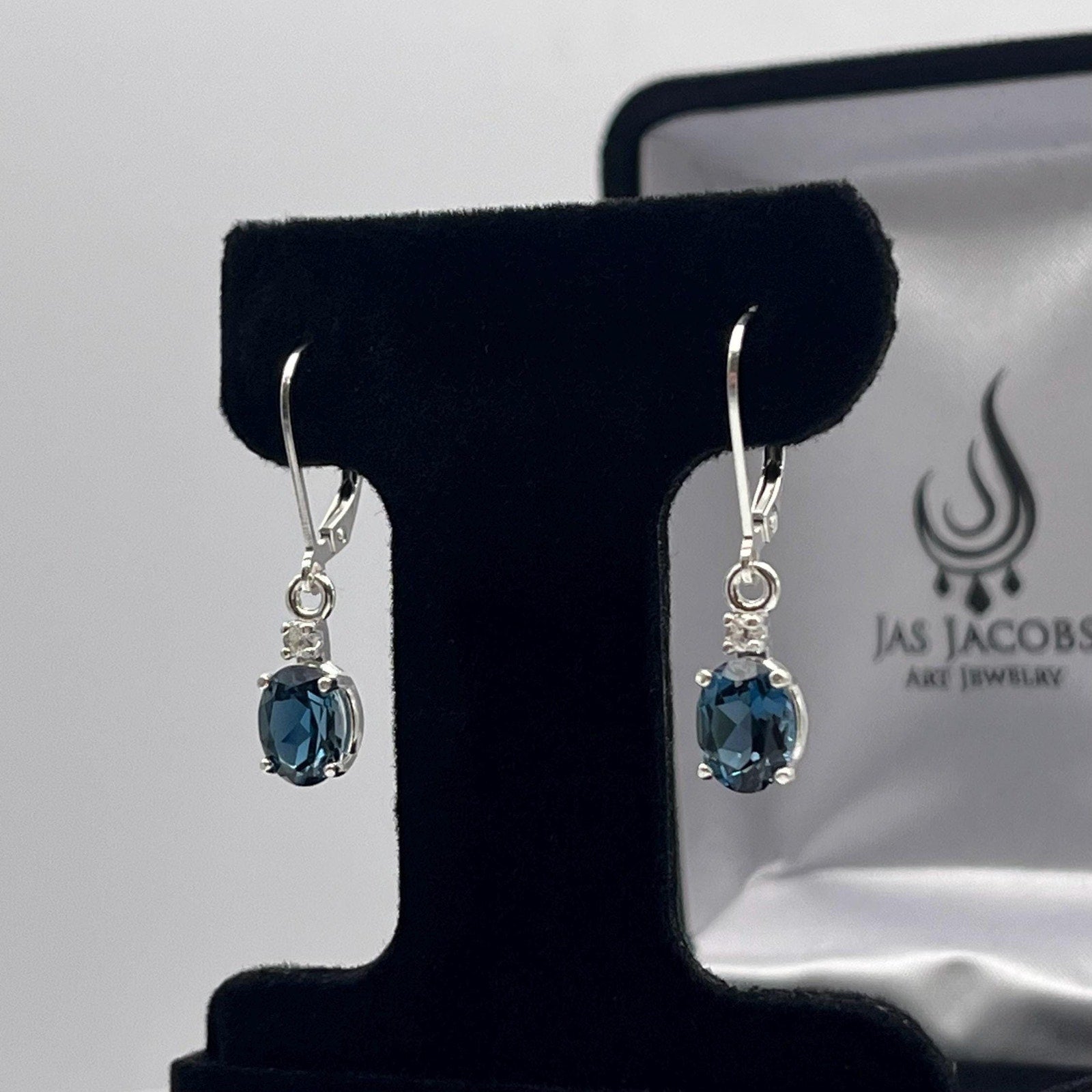 Beautiful 3.4ctw London Blue Topaz Earrings White Sapphire Leverback Earrings Trending Jewelry Gift December Birth