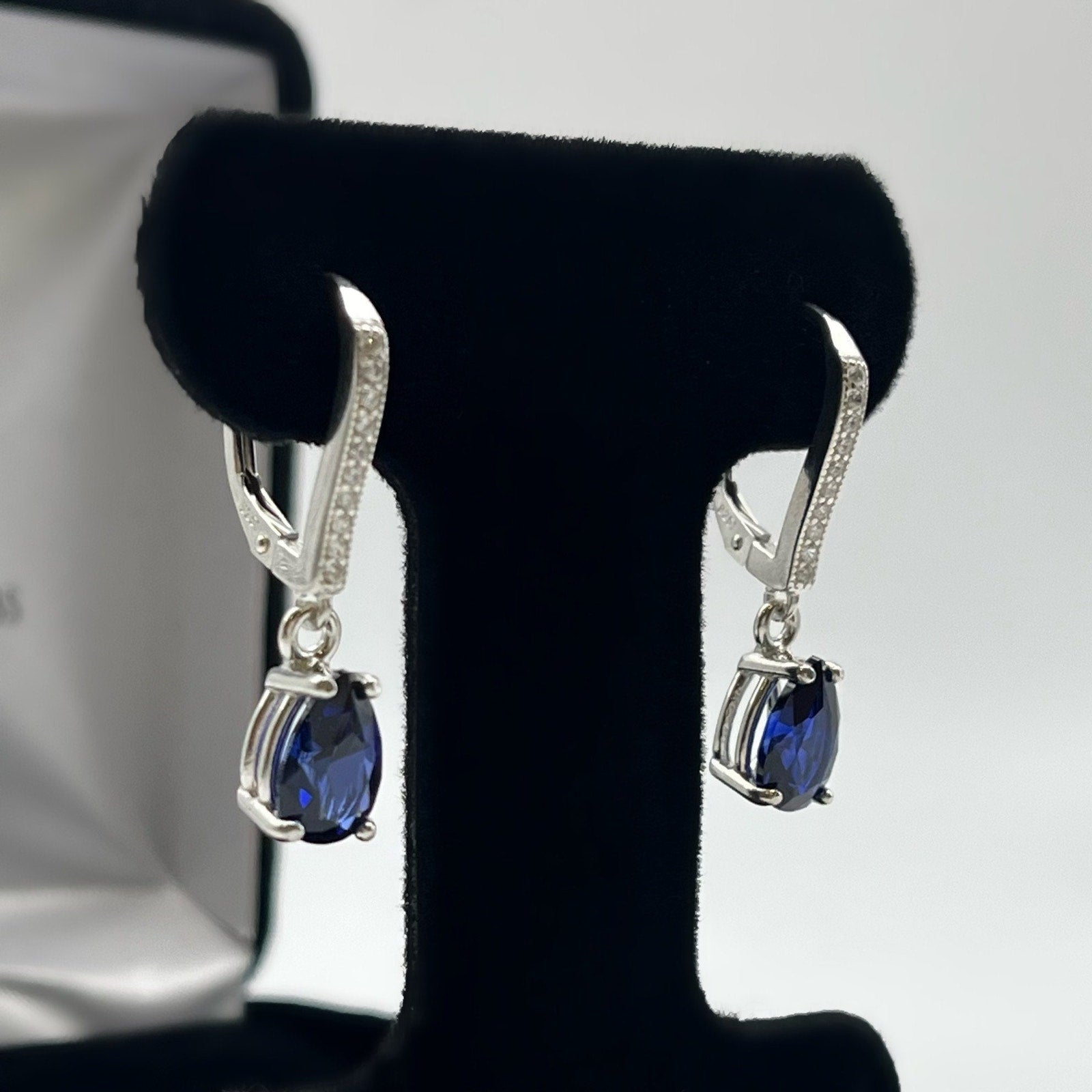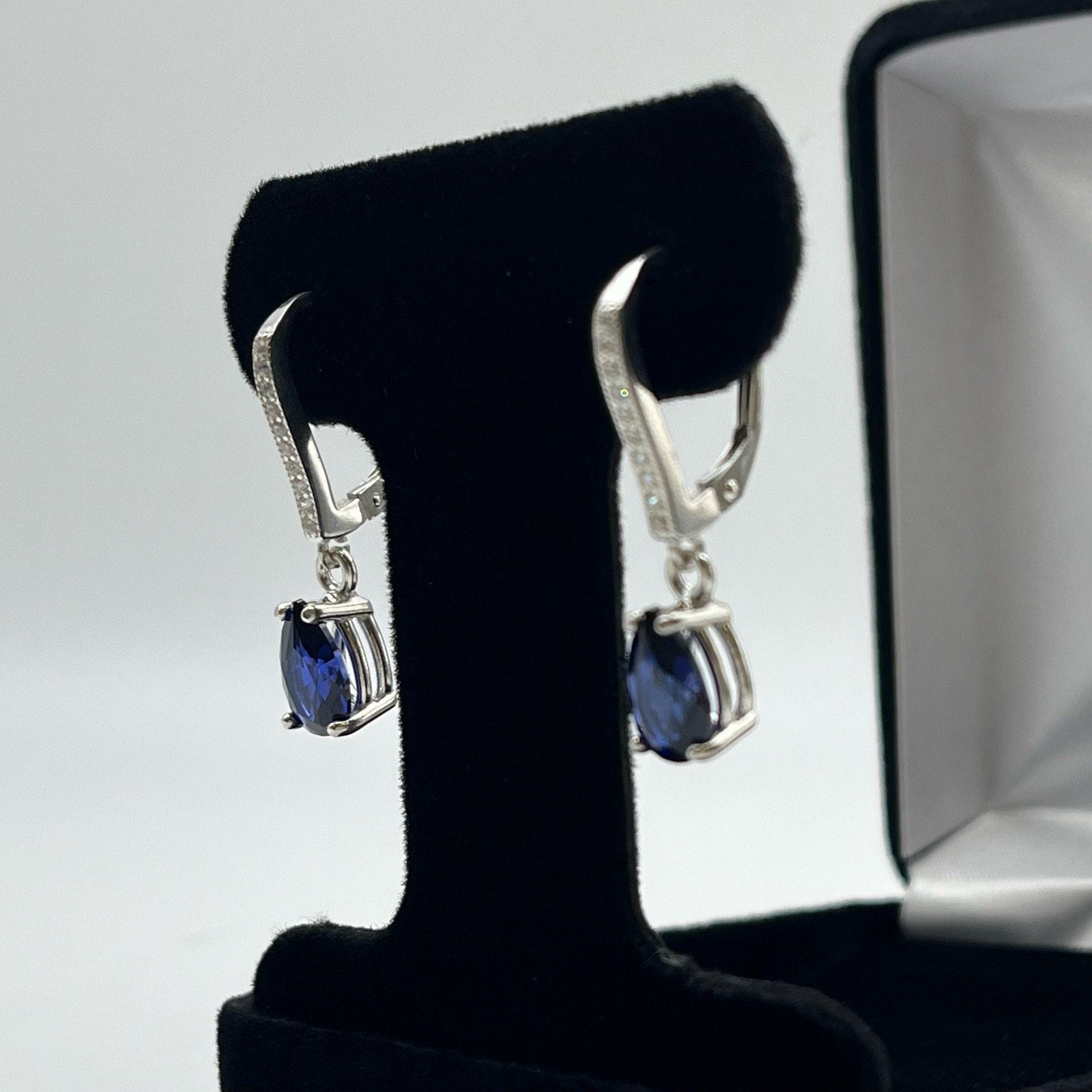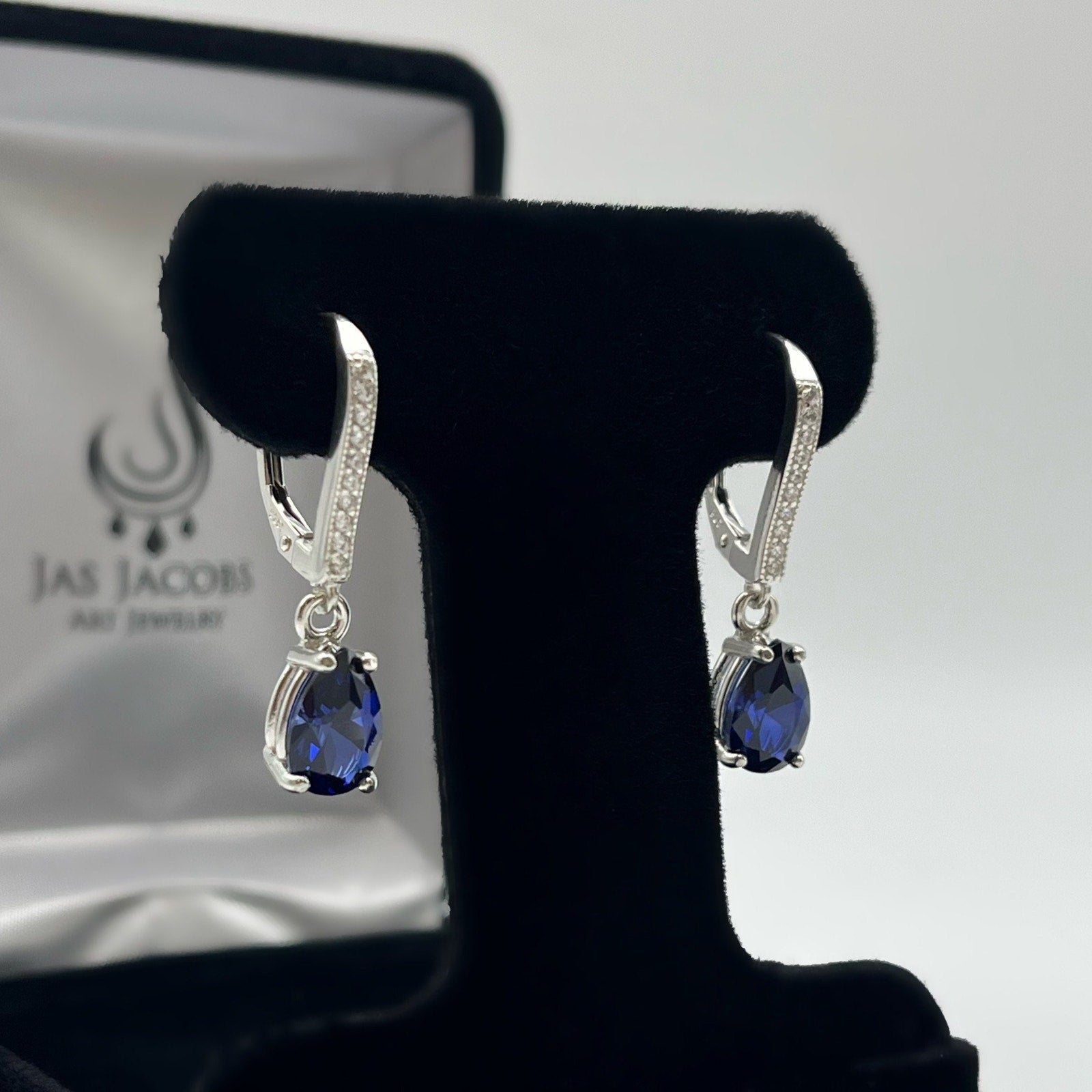 BEAUTIFUL 3.6ctw Blue Sapphire Sterling Silver Earrings Pear Cut Blue Sapphire Leverback Dangle Earrings Trending Jewelry Gift