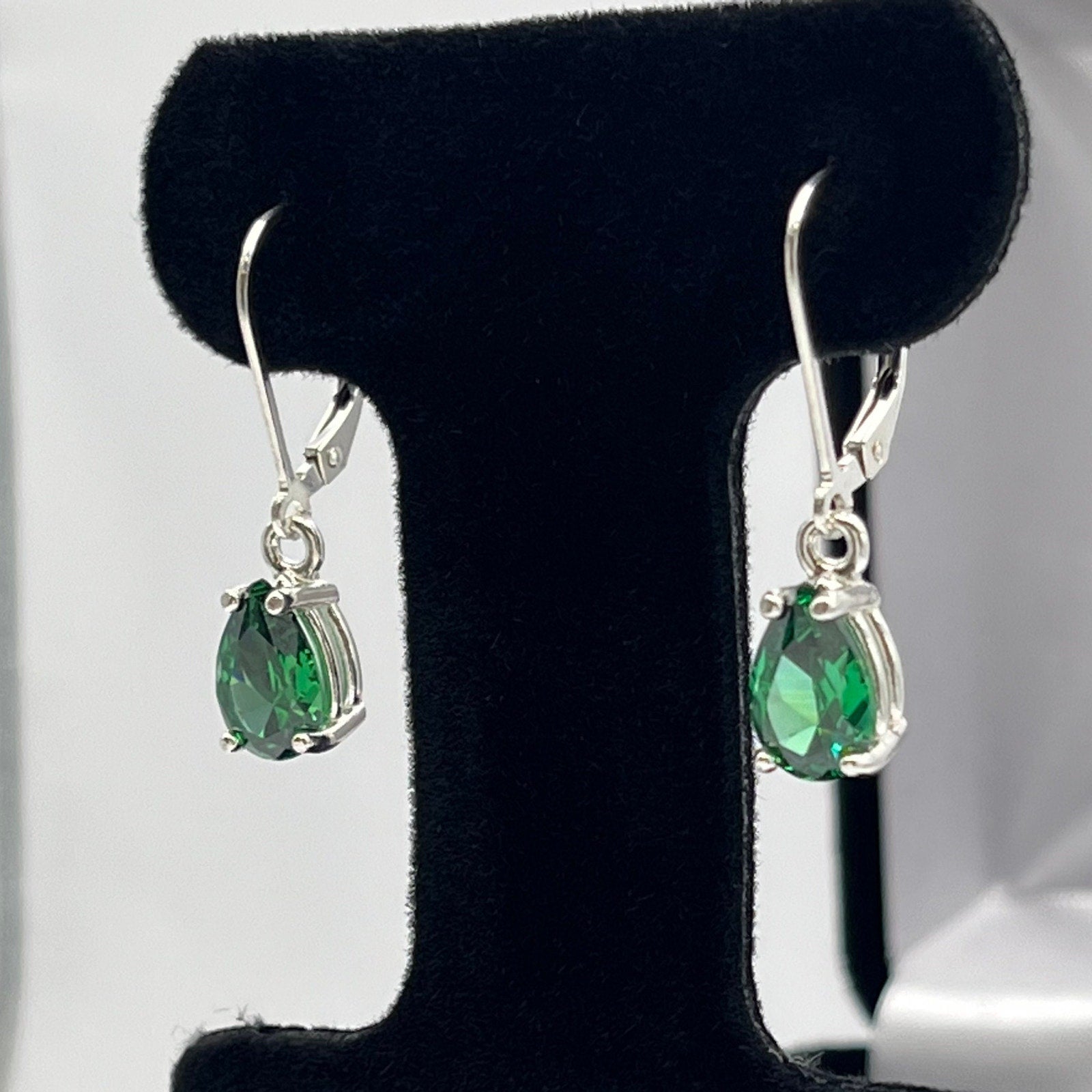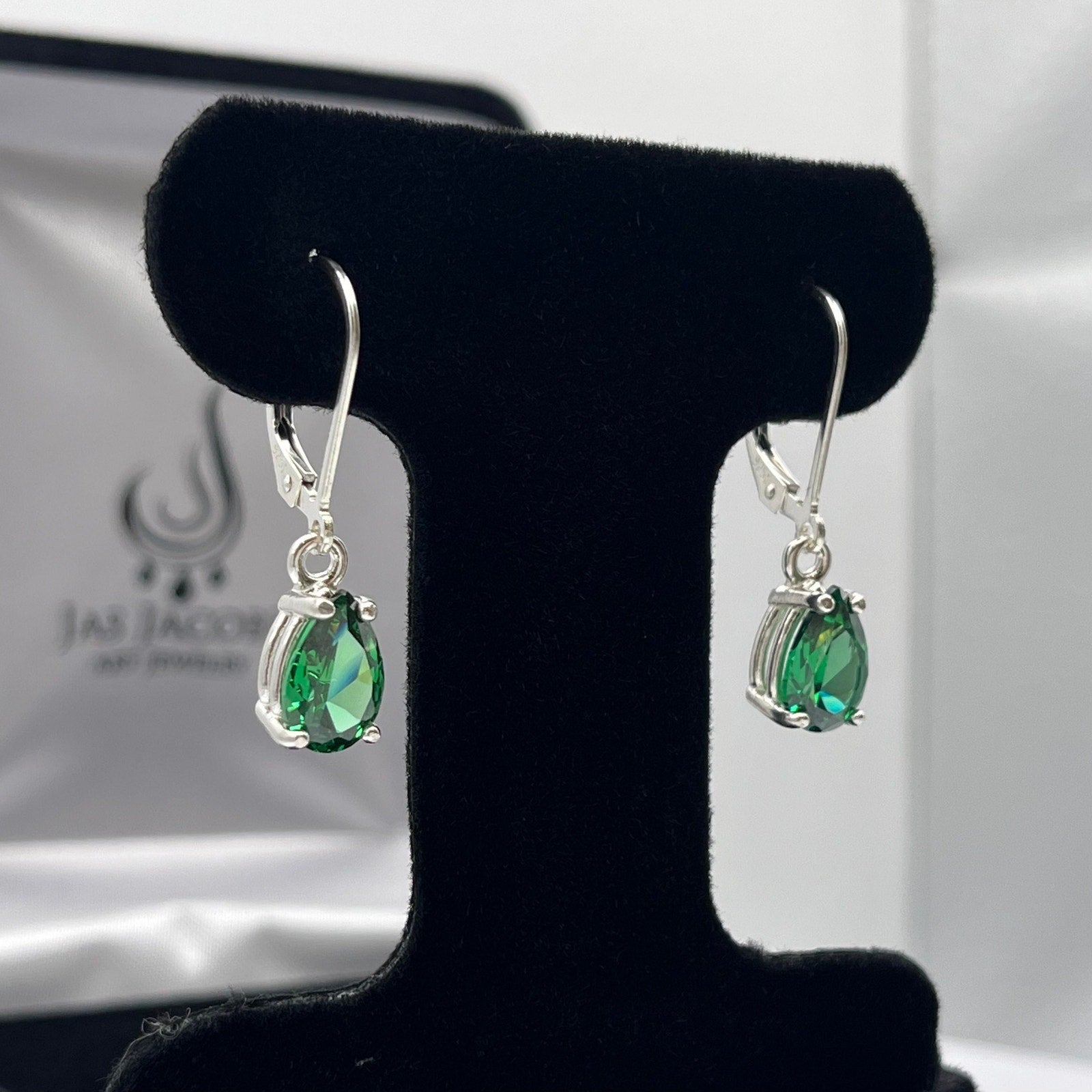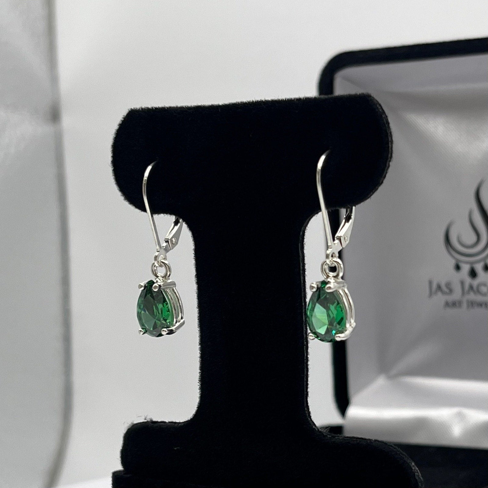 Beautiful 3ct Pear Cut Emerald Earrings Teardrop Emerald Earrings