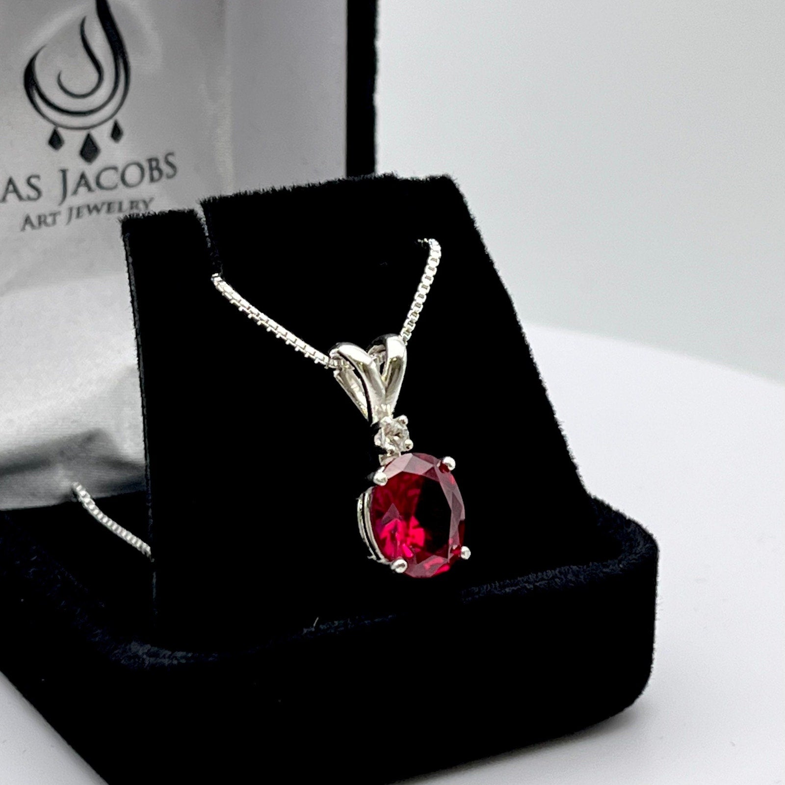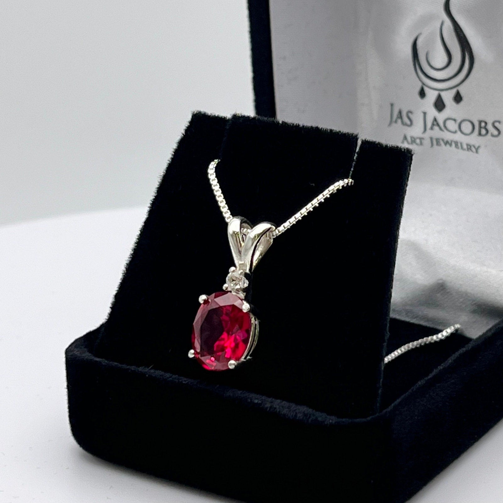 Beautiful 3ct Ruby Necklace Sterling Silver Pendant Necklace with White Sapphire Jewelry Trends Ruby Valentine Gift wife