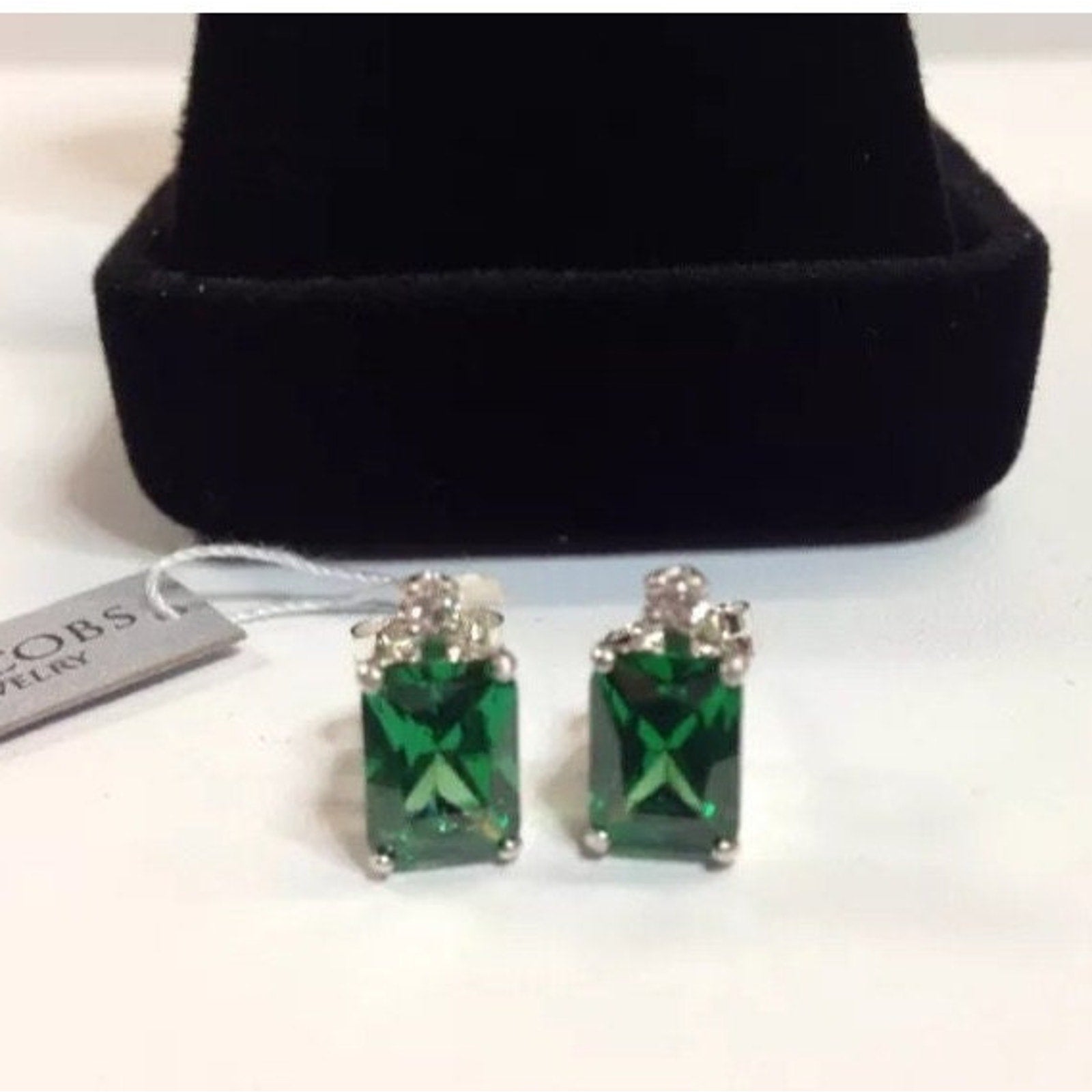 Beautiful 3ctw Emerald & White Sapphire Earrings Emerald Cut Emerald dangle earrings trending jewelry gifts Emerald earrings