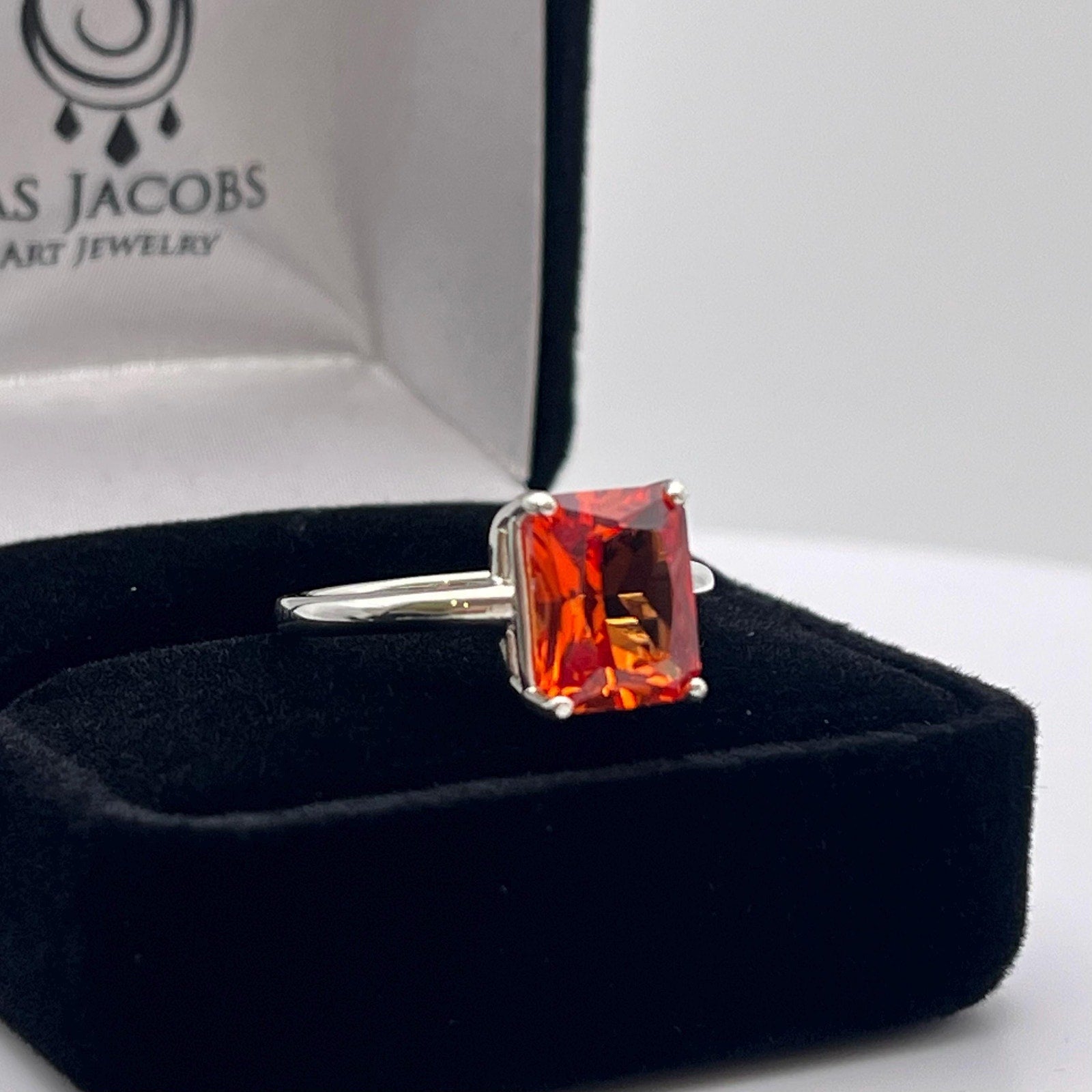Beautiful 4ct Emerald Cut Orange Sapphire Ring Padparadscha Ring with Sizing Sterling Silver Ring Trending Jewelry Gift September Birthstone