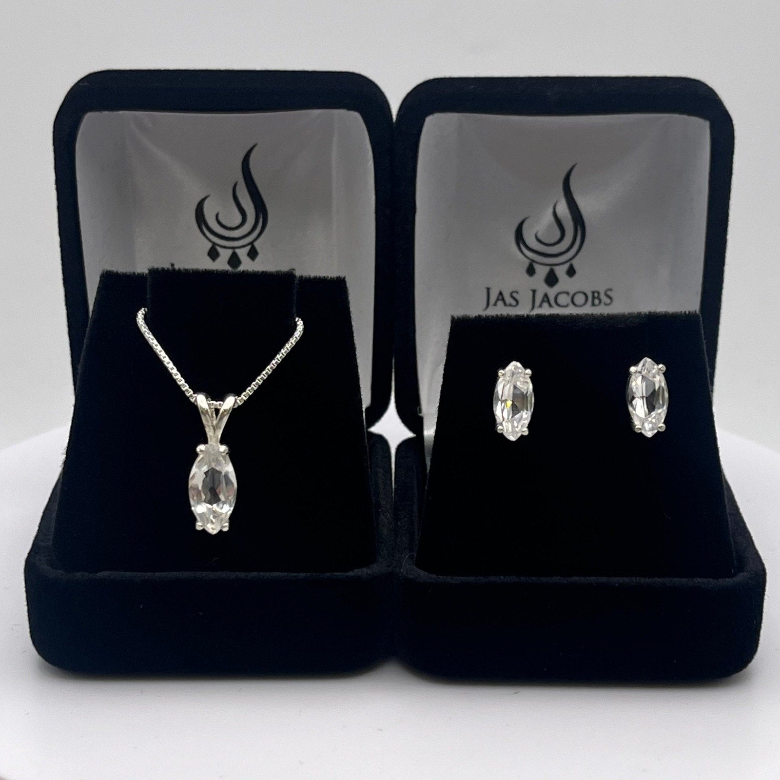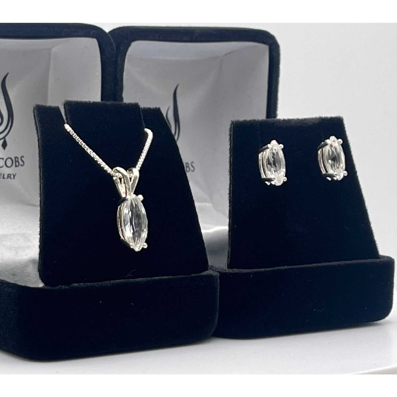 • Marquise Cut White Sapphires measure 12x6mm (necklace) and 10x5mm (earrings) each
