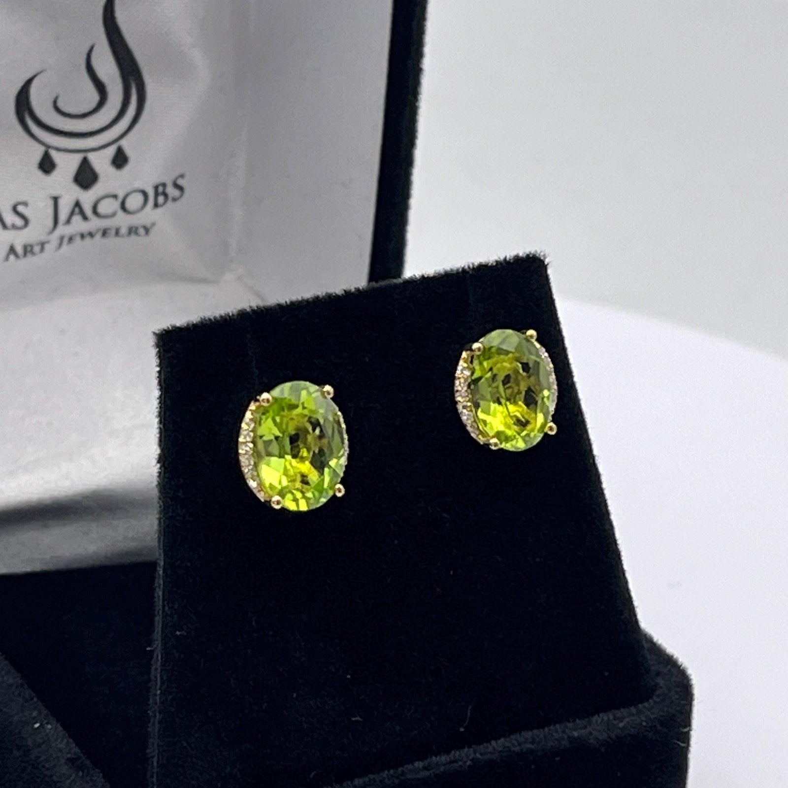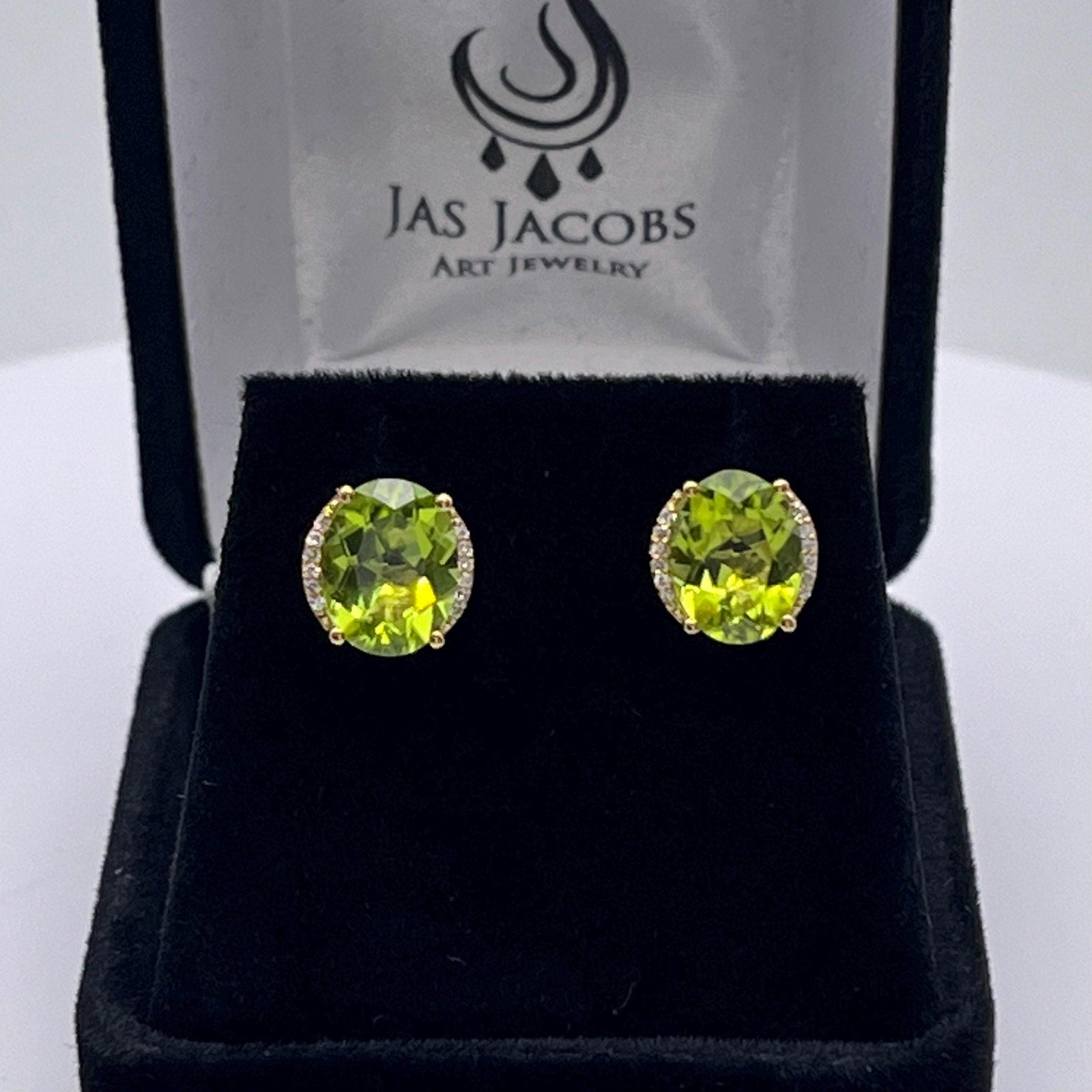 Beautiful Peridot and Diamond Earrings in 10k Yellow Gold