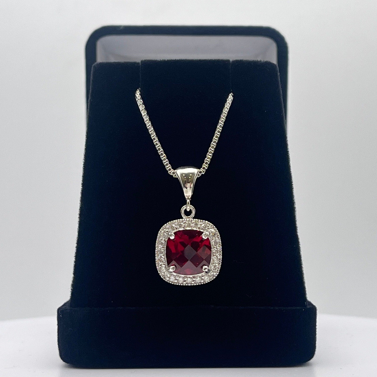 Beautiful 5.6ctw Ruby Necklace Sterling Silver Pendant Necklace Cushion Cut Ruby Necklace July Gift ladies jewelry