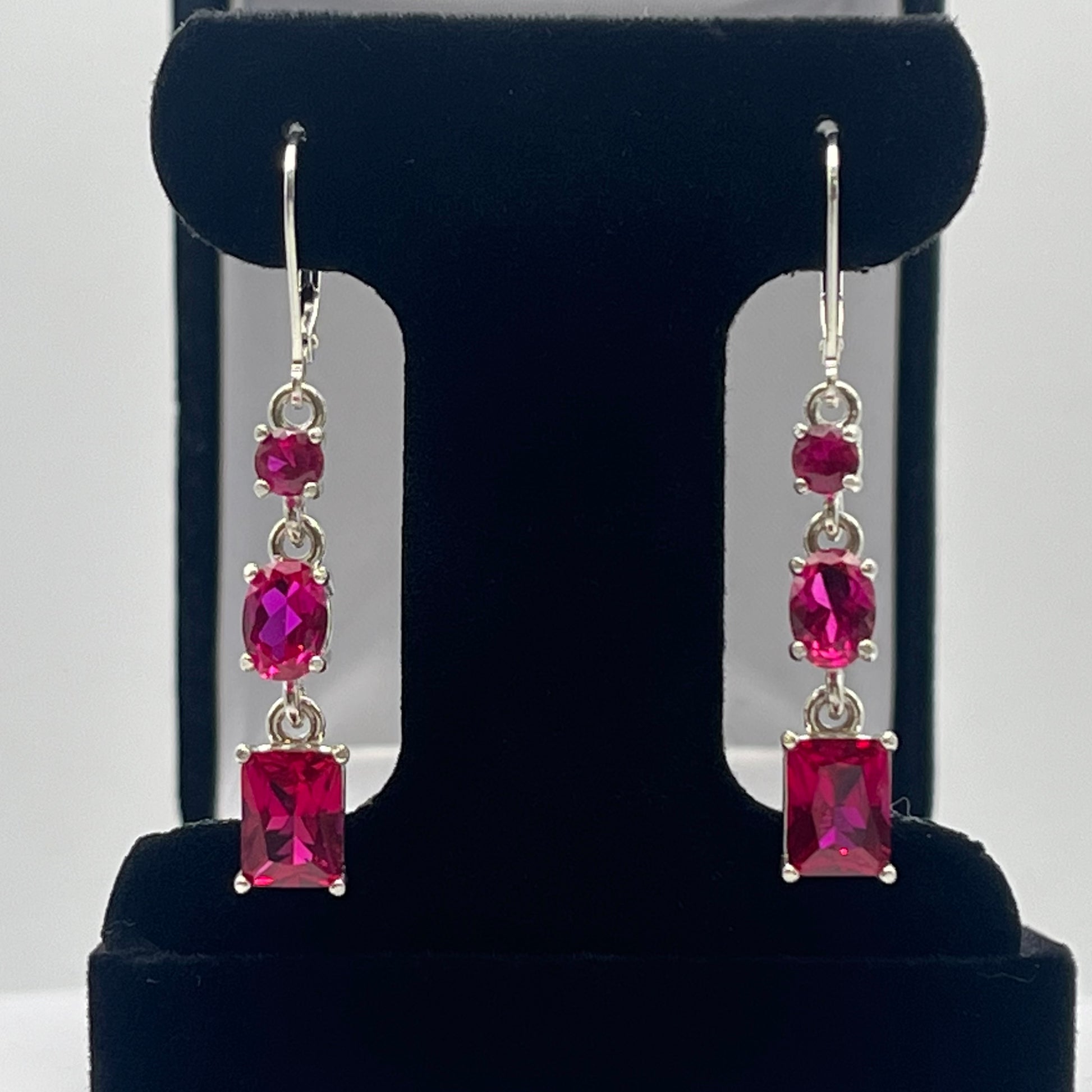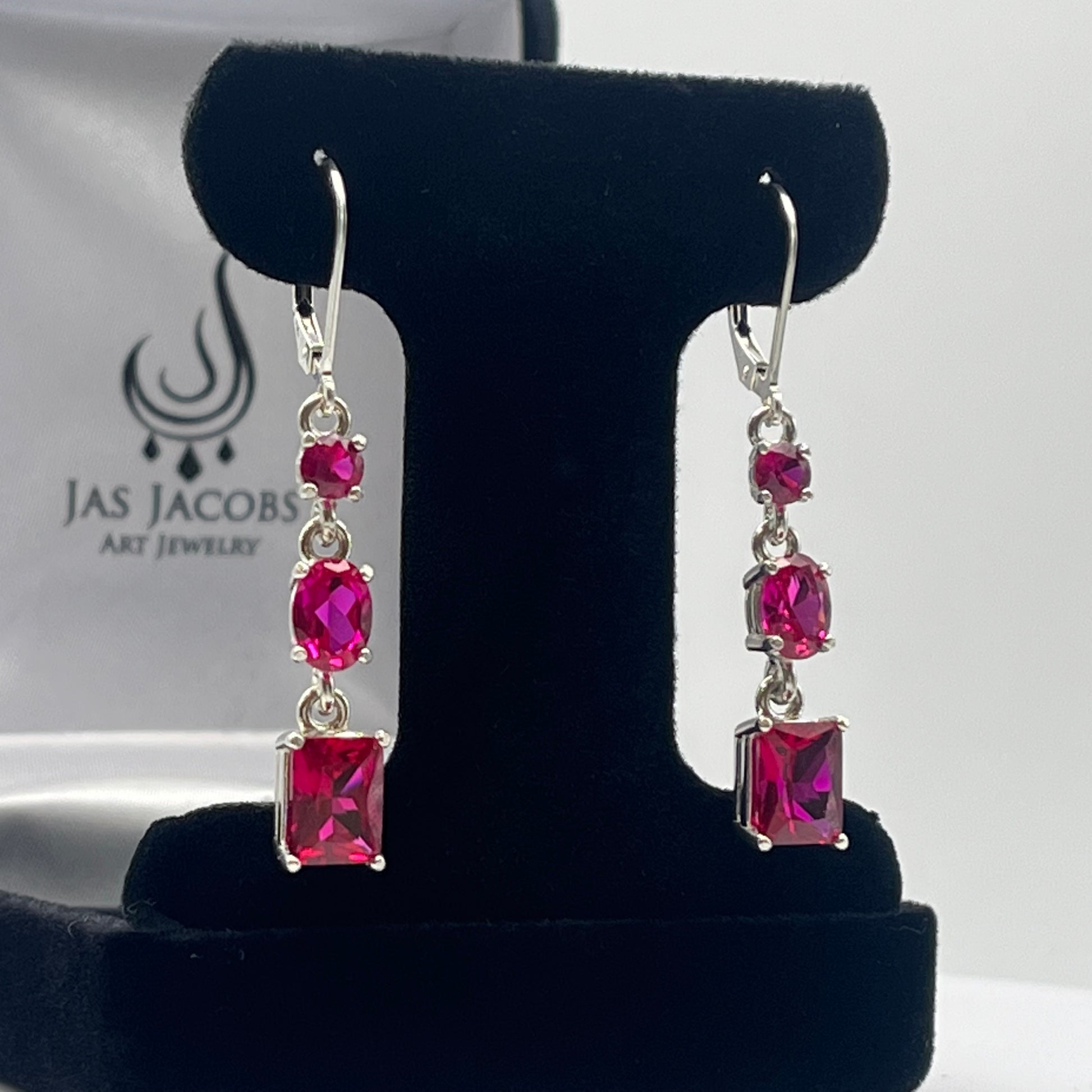 Beautiful 5ctw Multi Cut Ruby Earrings Ruby Drop Dangle Earrings