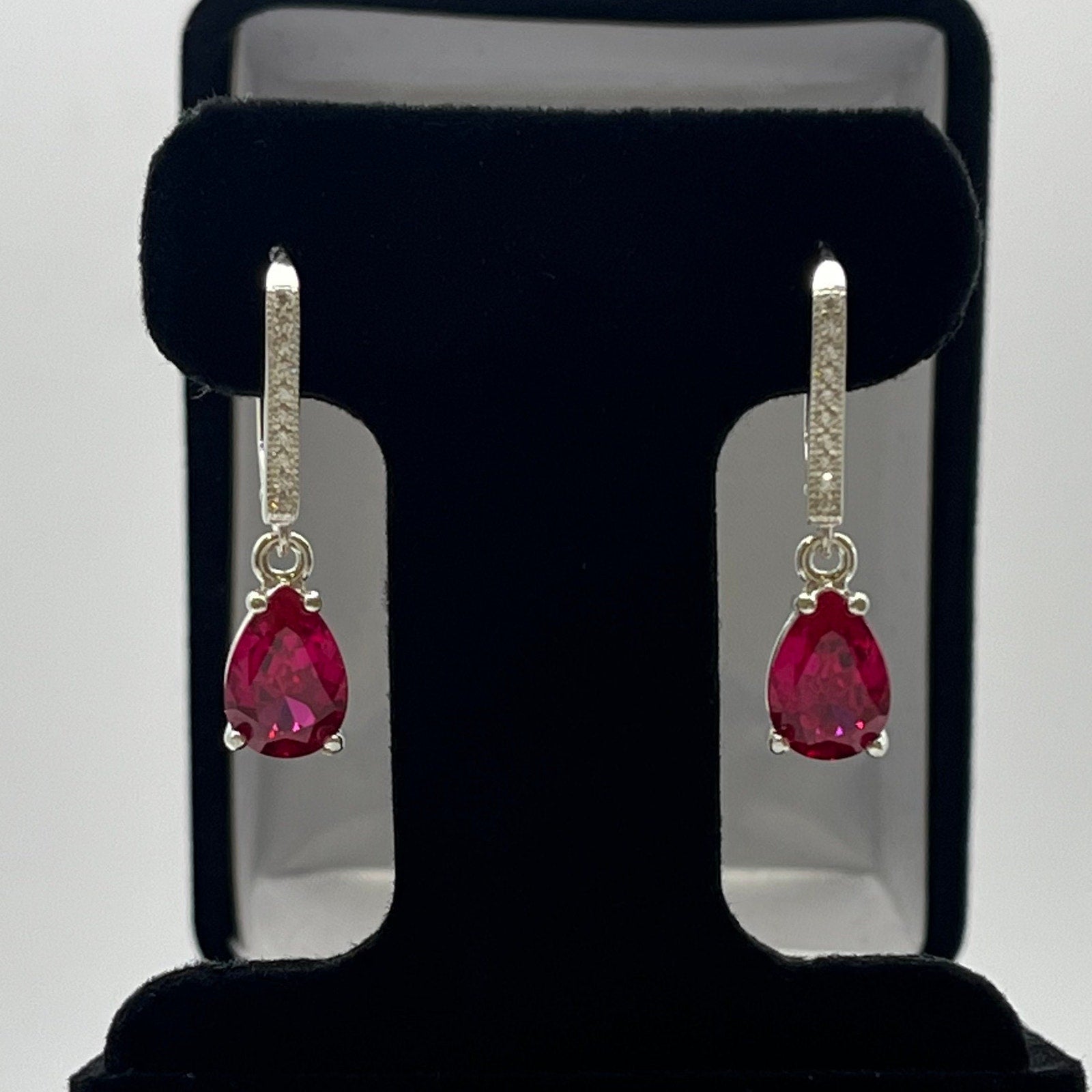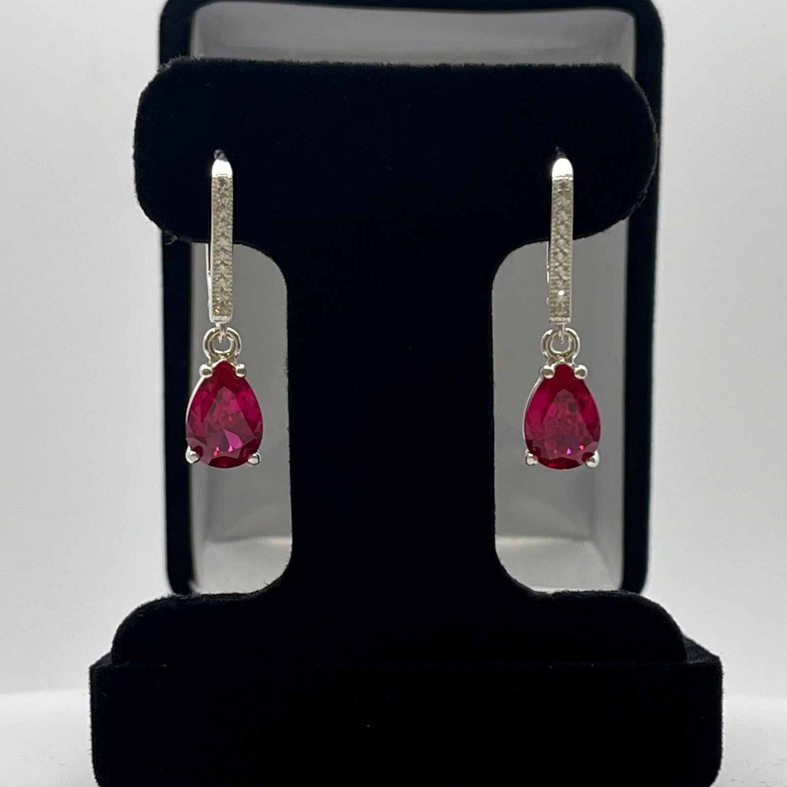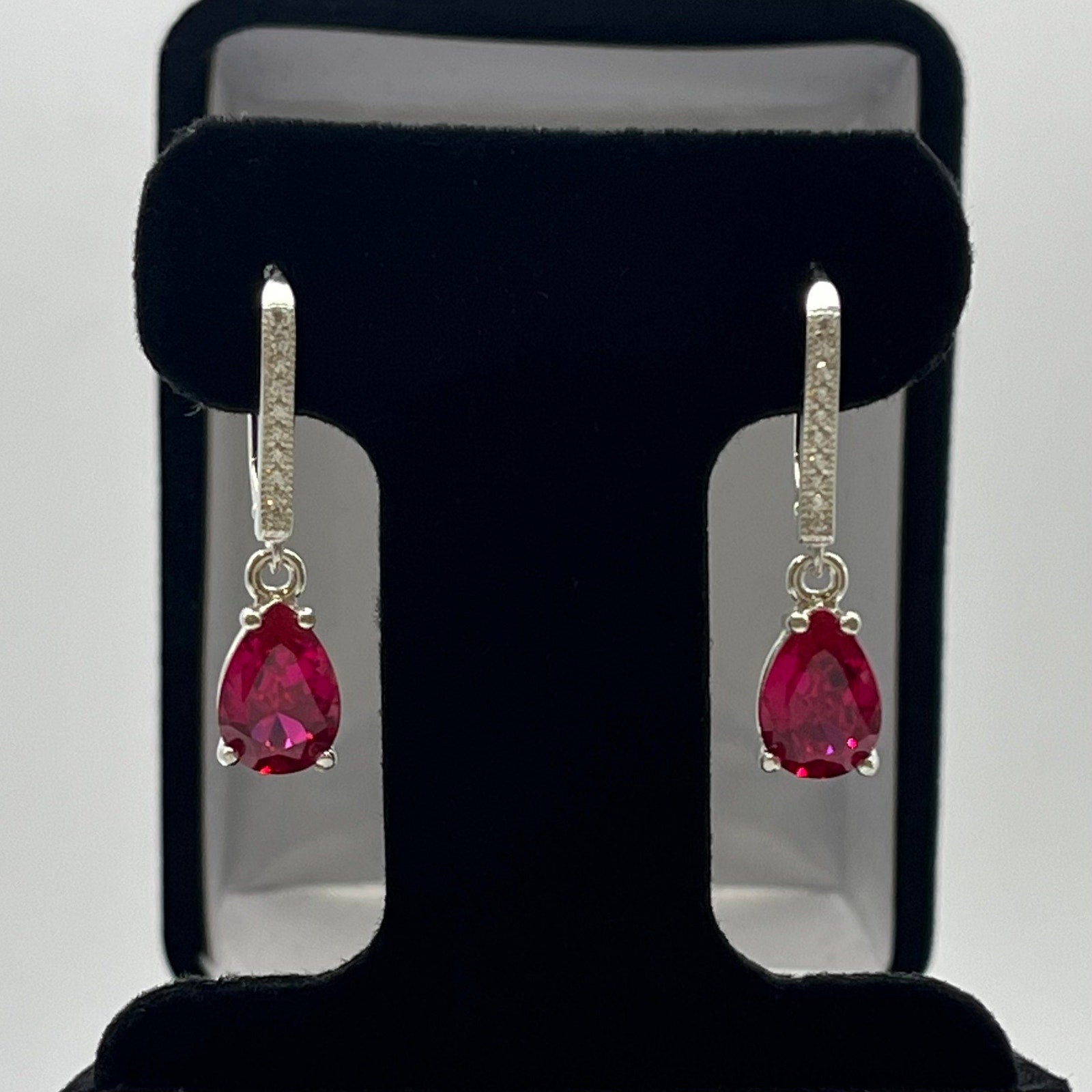 Beautiful 5ctw Pear Cut Ruby Earrings in Sterling Silver Teardrop Ruby Earrings