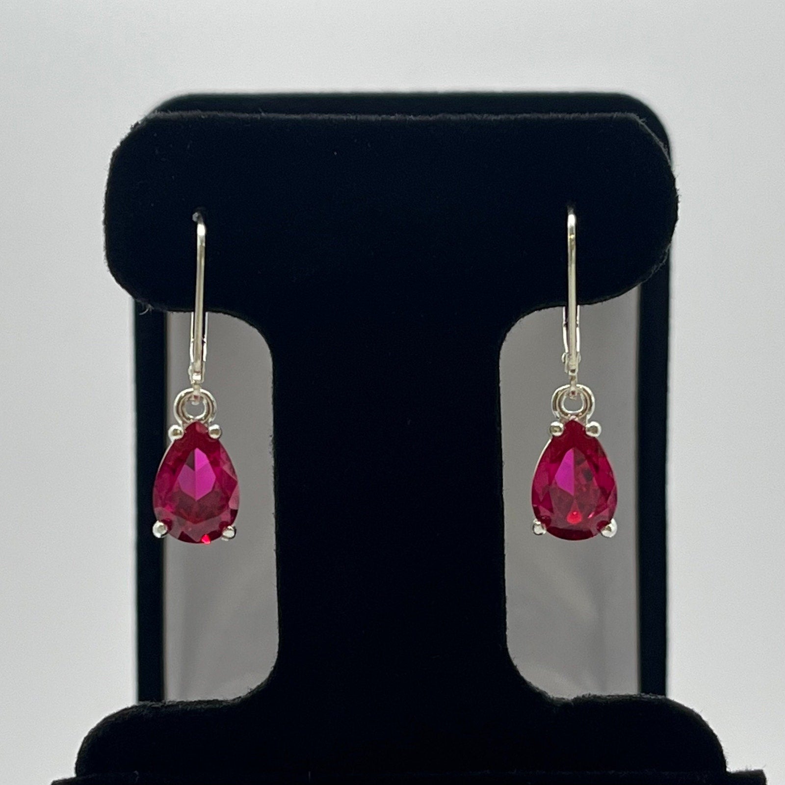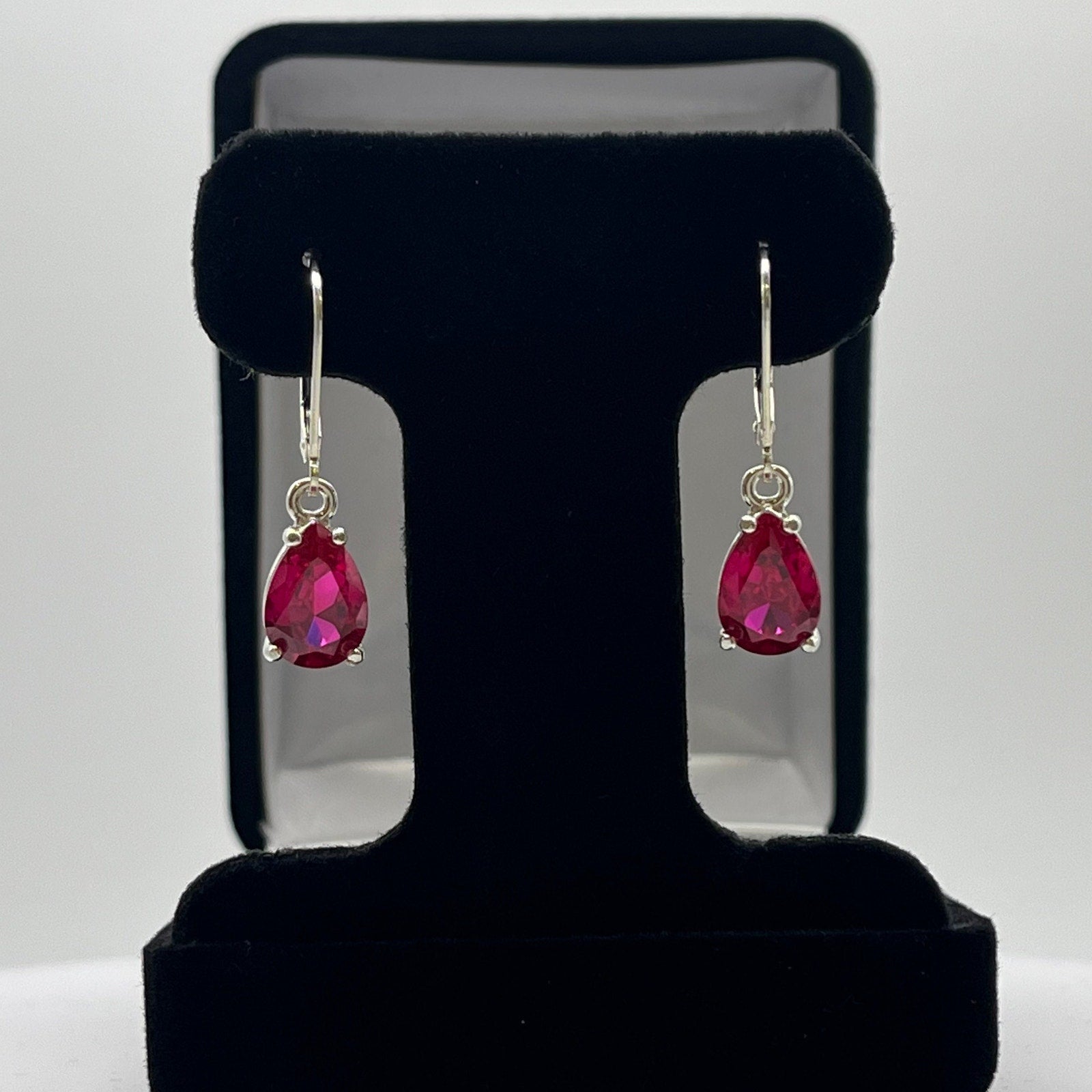 Beautiful 5ctw Pear Cut Ruby Earrings Sterling Silver Drop Dangle Leverback Fine Jewelry Trends Red Ruby Teardrop July Lady Gift