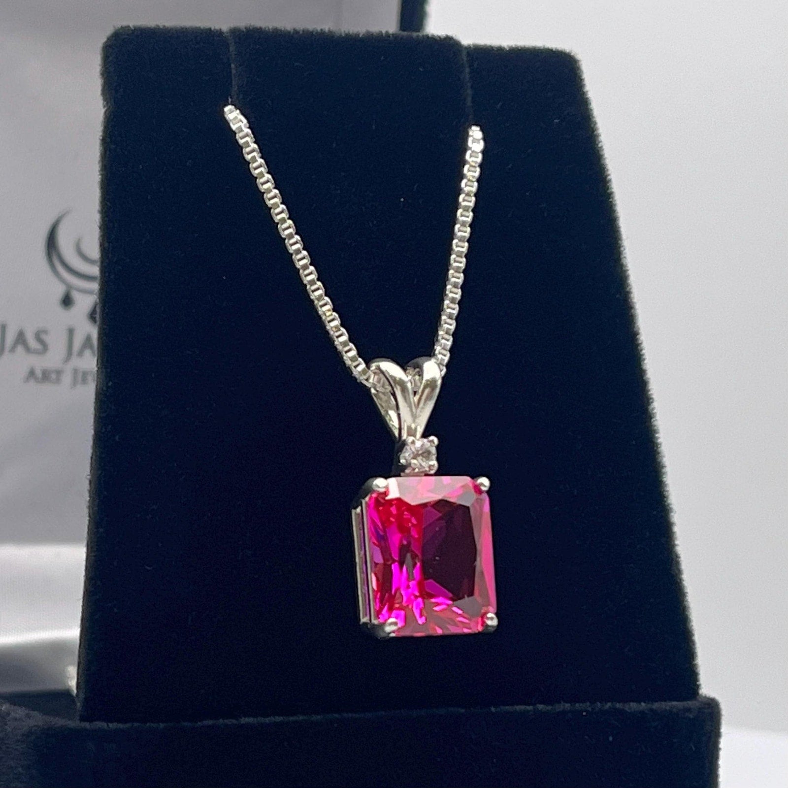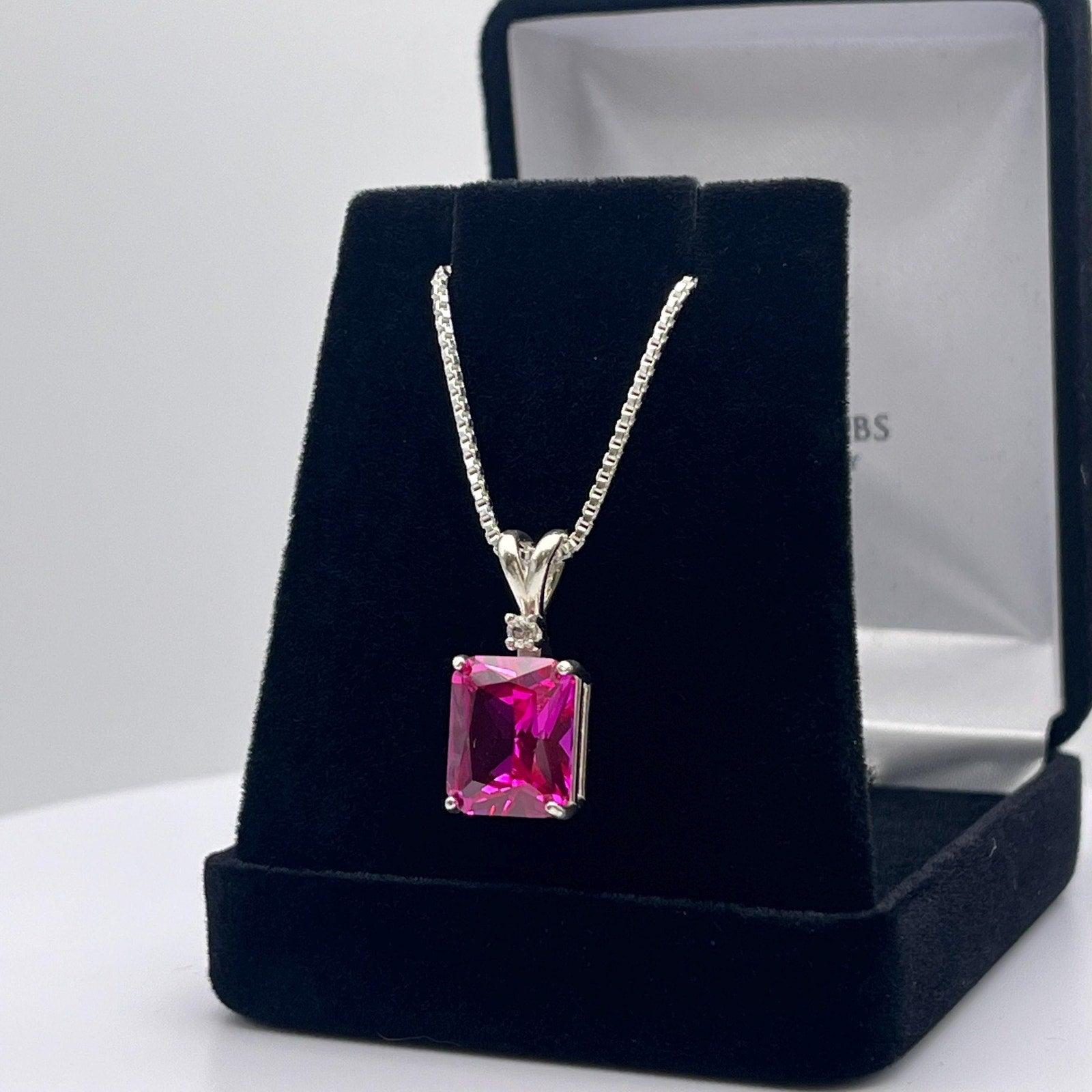 Beautiful 6ct Emerald Cut Bright Pink Sapphire Necklace