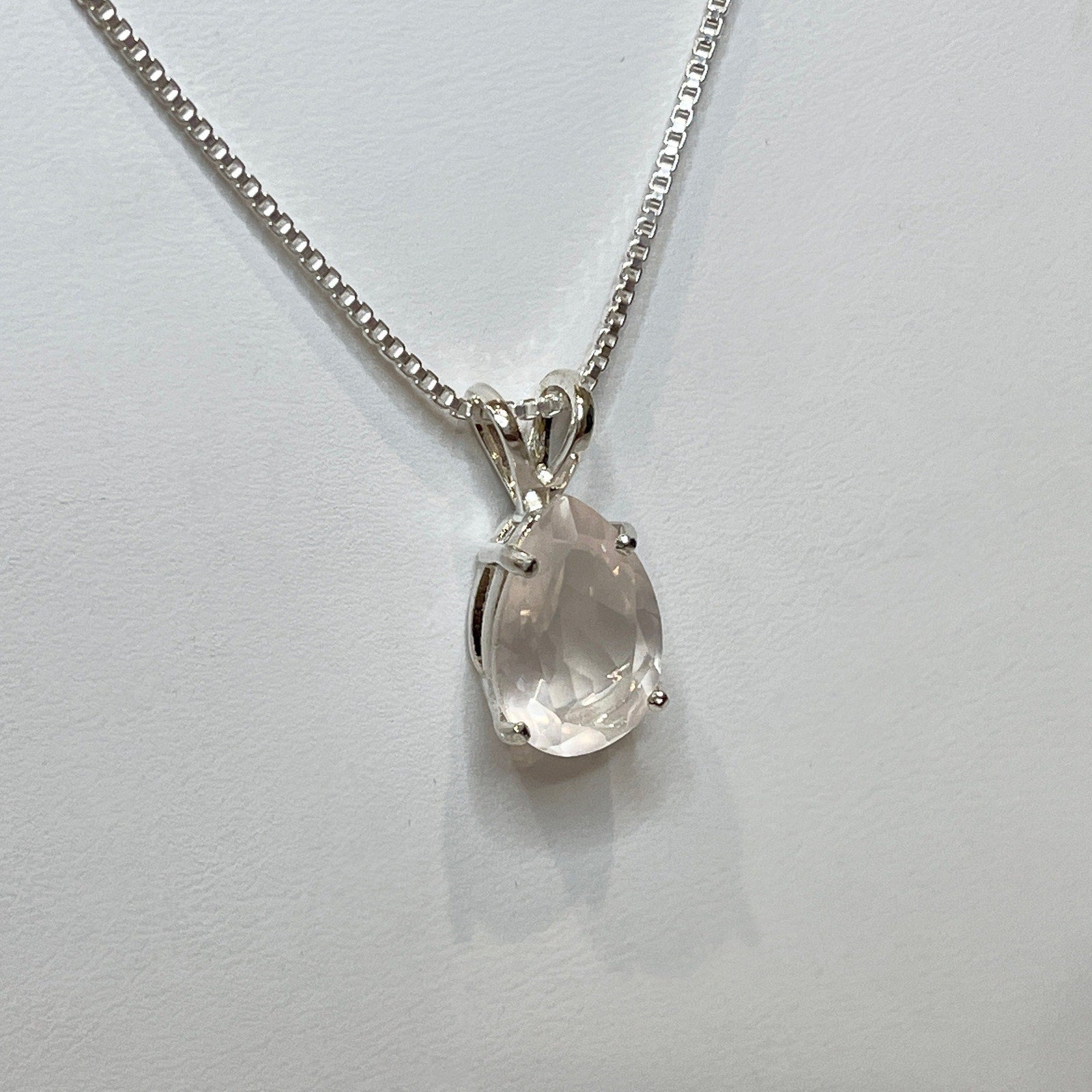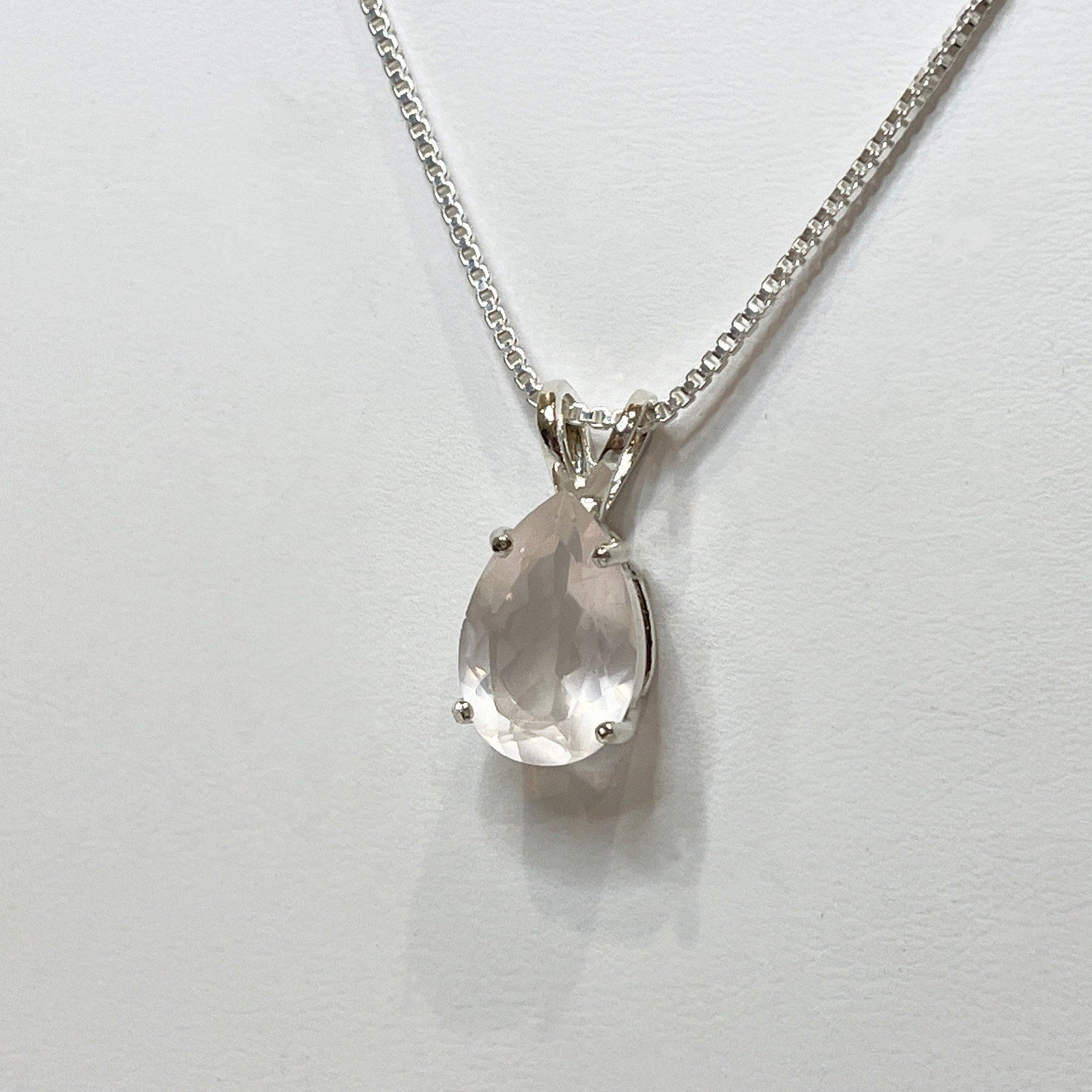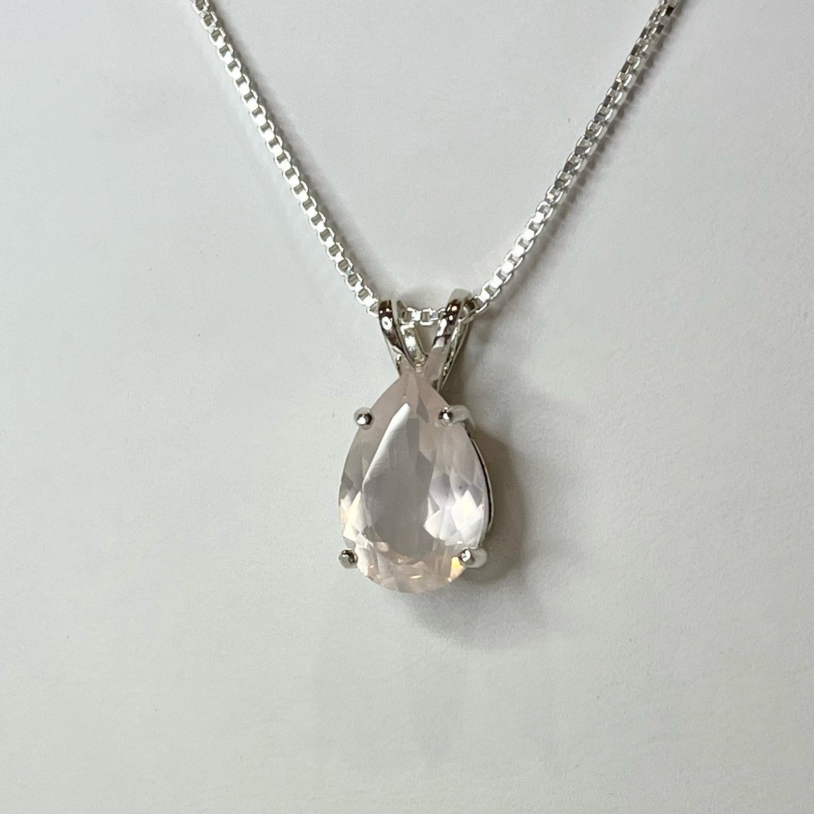 BEAUTIFUL 6ct Pear Cut Natural Rose Quartz Necklace Sterling Silver Trending Jewelry Gift Pale Pink Gemstone Necklace