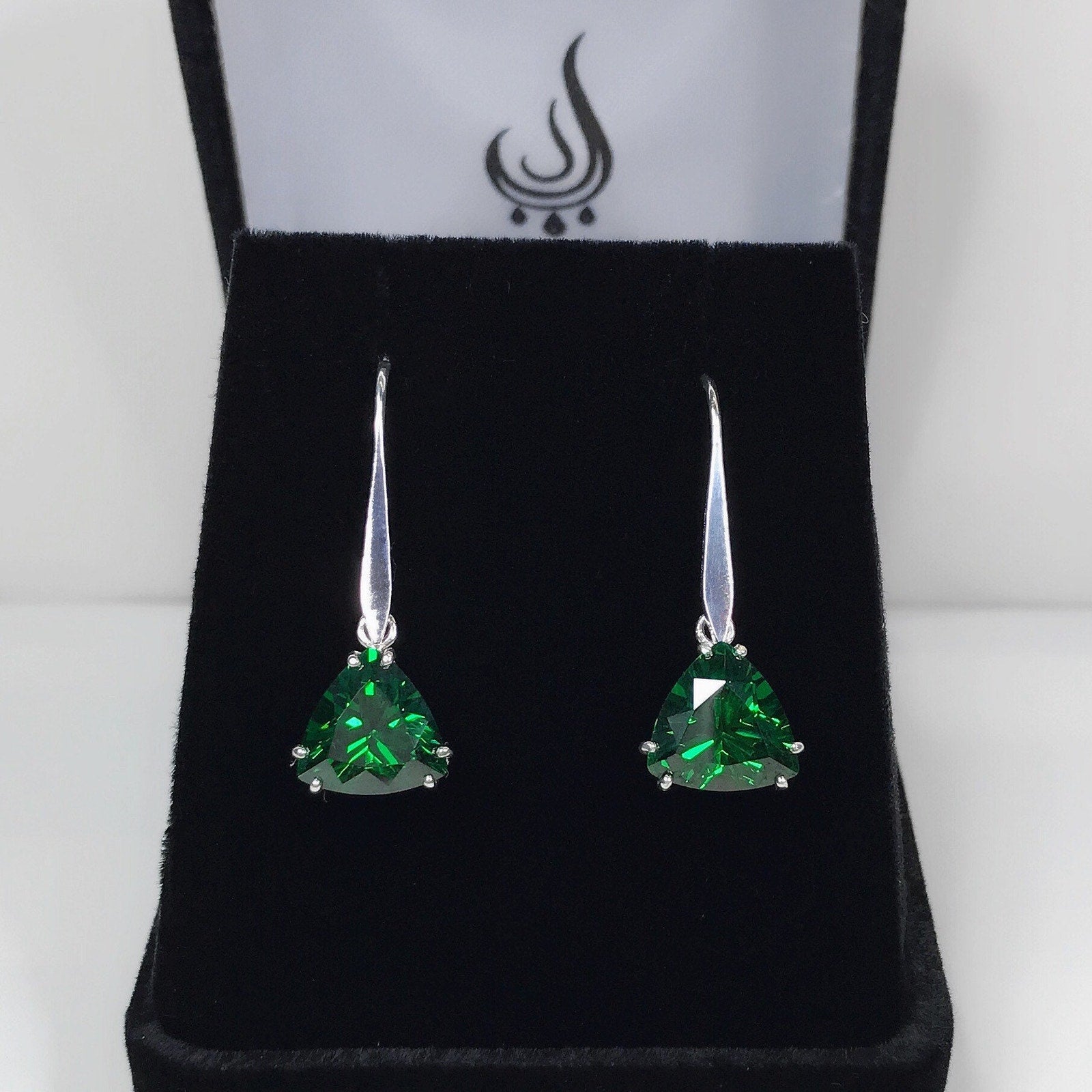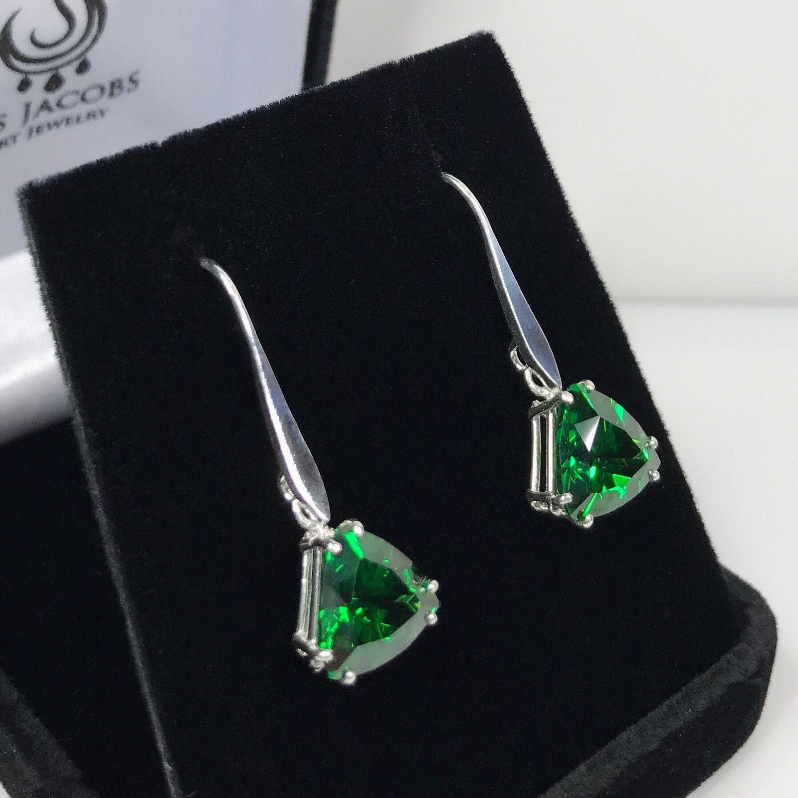 Beautiful 6ctw Trillion Cut Emerald Earrings in Sterling Silver