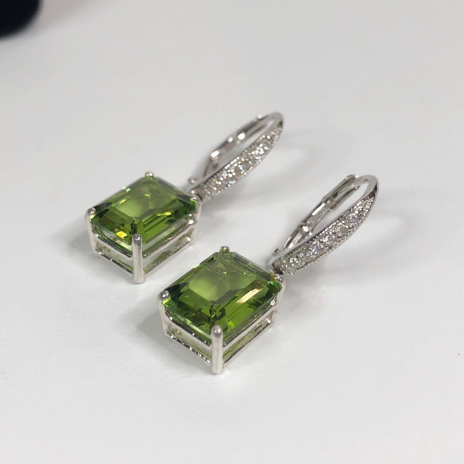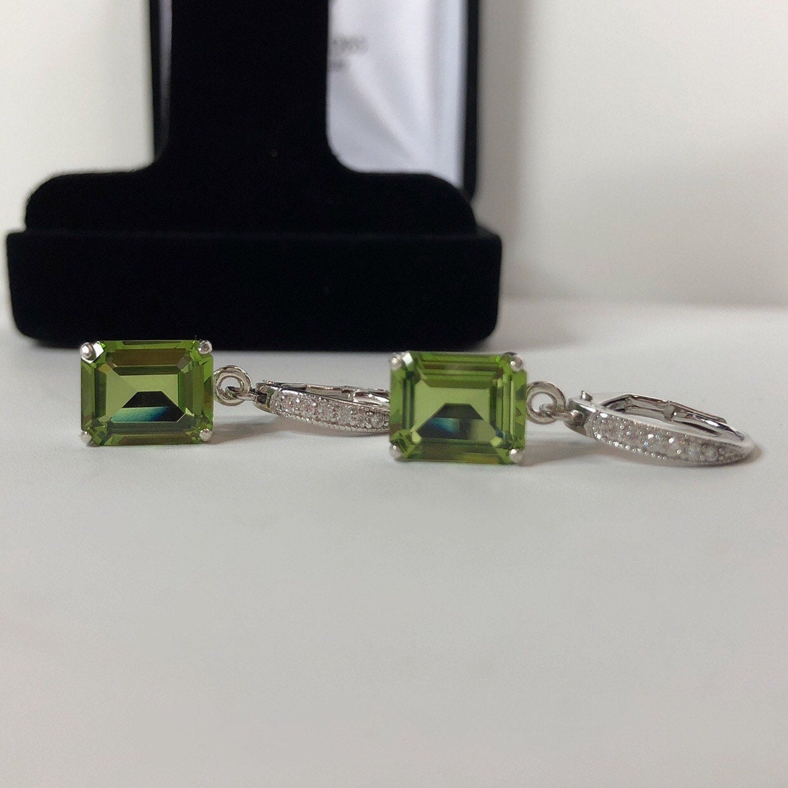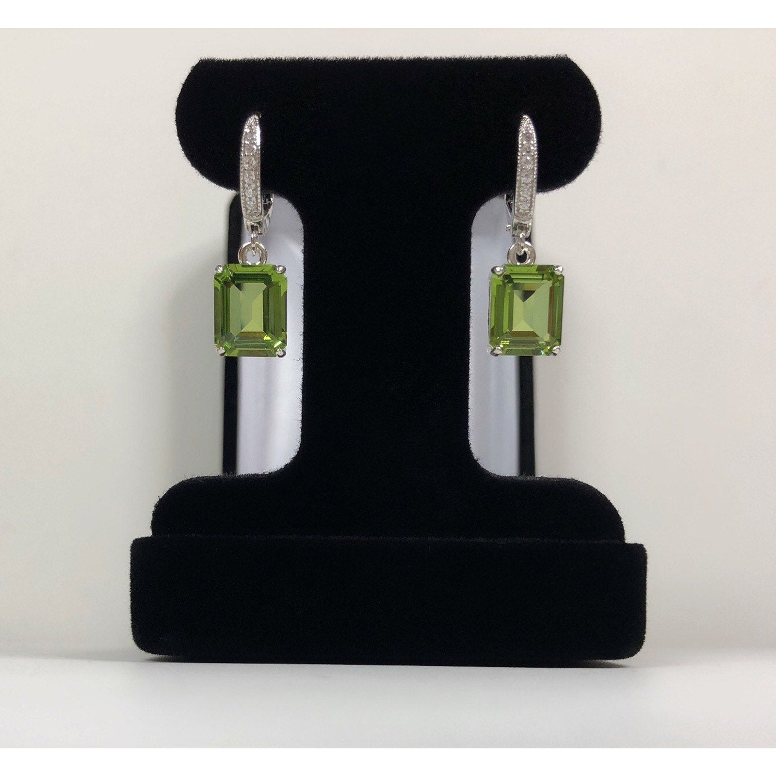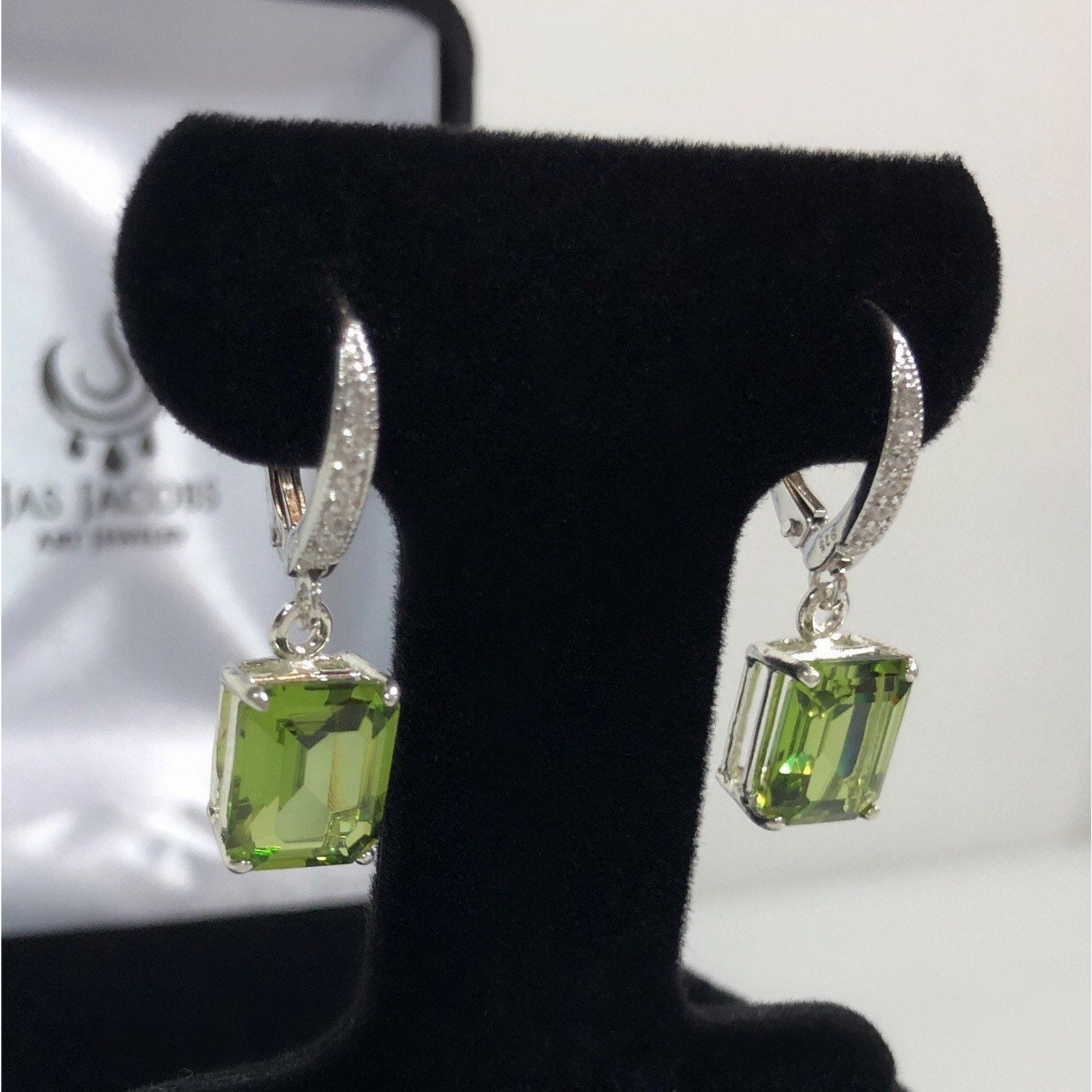 Beautiful 7.3ctw Emerald Cut Peridot Earrings with White Sapphire Accents in Sterling Silver