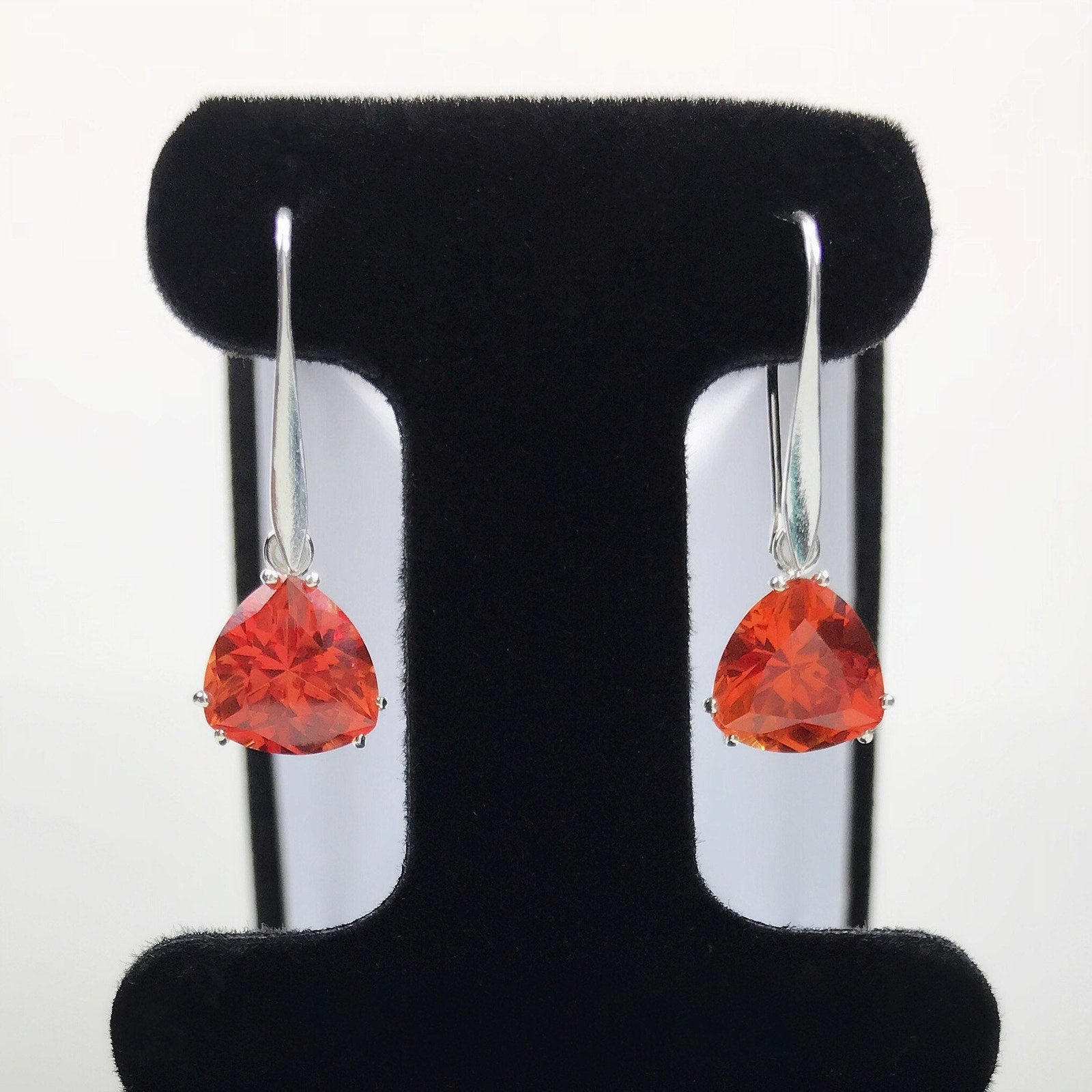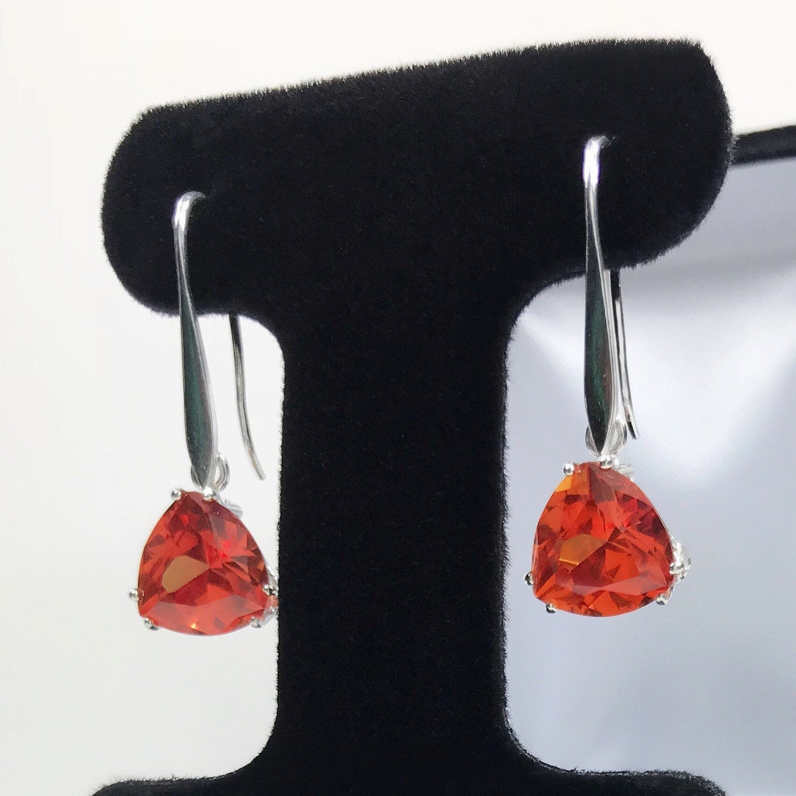 Beautiful 7ctw Trillion Cut Orange Padparadscha Sapphire & Sterling Silver Earrings Fine Jewelry Gift Orange Sapphire Triangle Drop