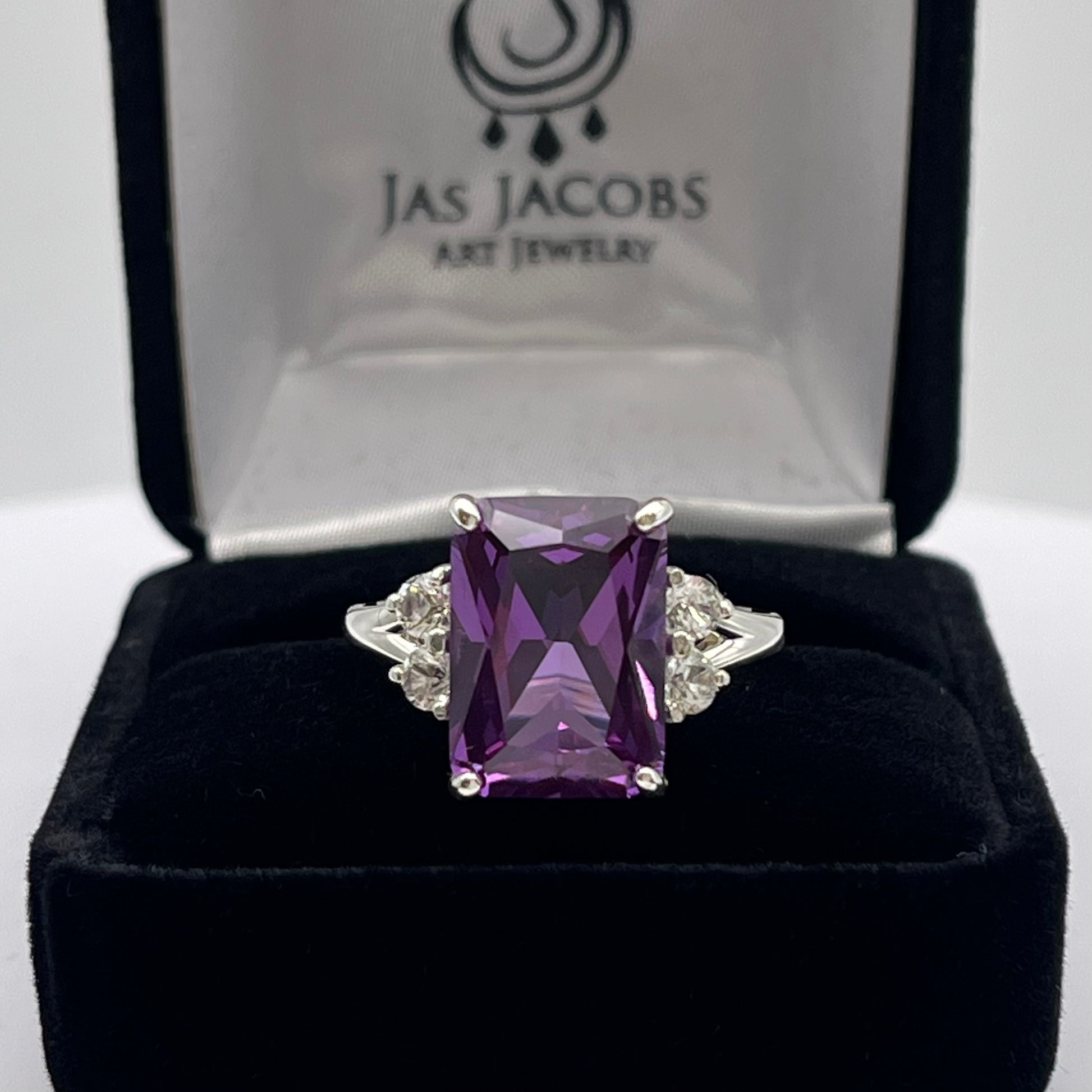 BEAUTIFUL 8ct Emerald Cut Alexandrite & White Sapphire 14kt Gold or Sterling SIlver Ring Size 5 6 7 8 9 Gemstone Jewelry Trending Stones