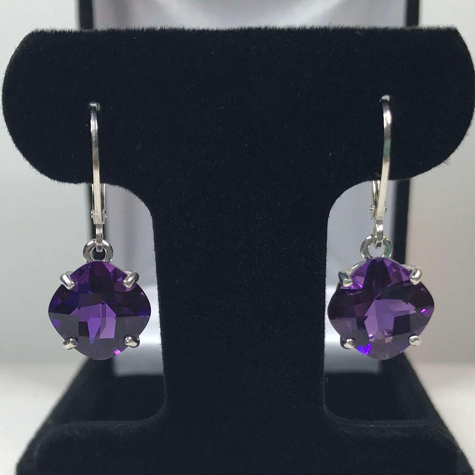 Beautiful 9ctw Cushion Cut Amethyst Earrings in Sterling Silver Royal Purple