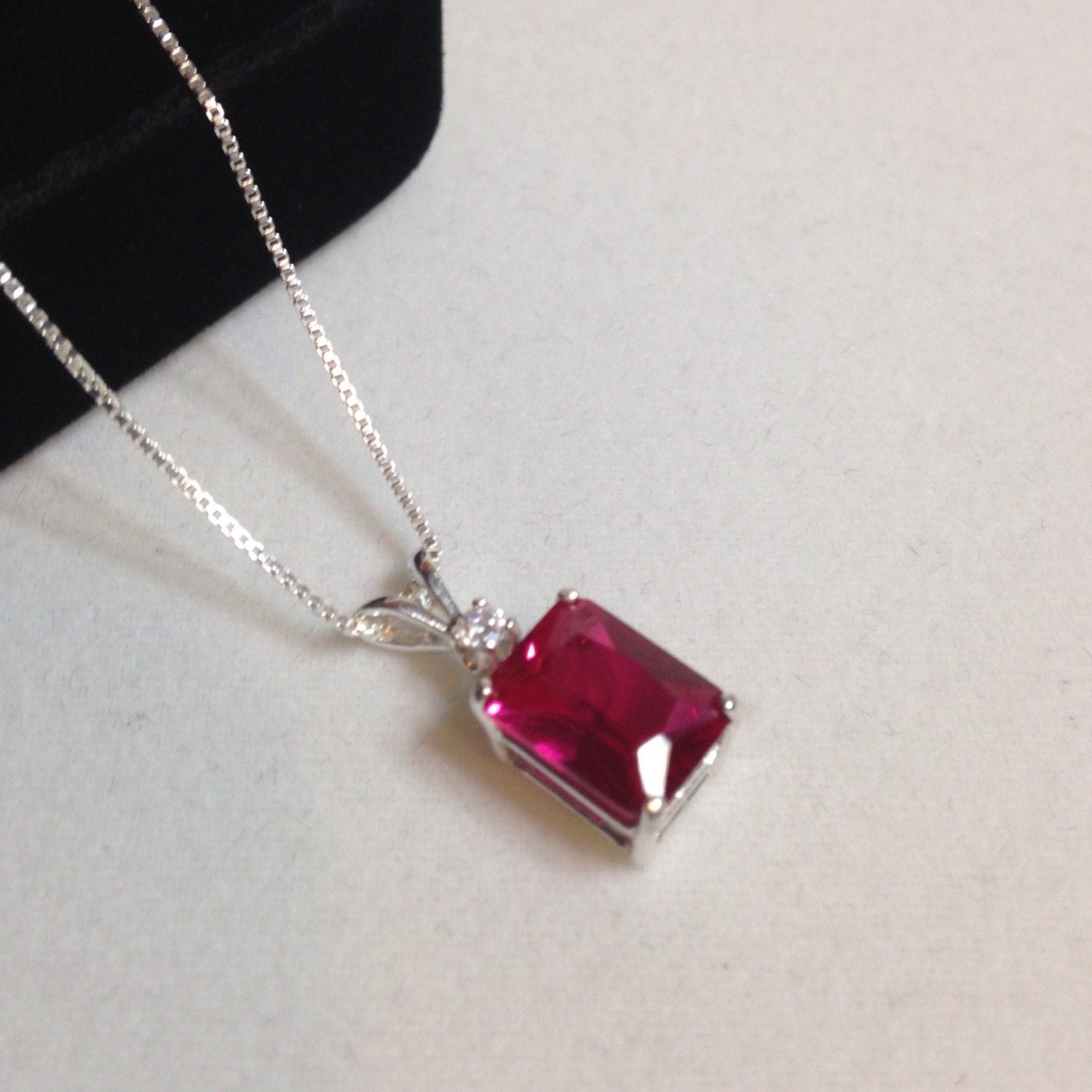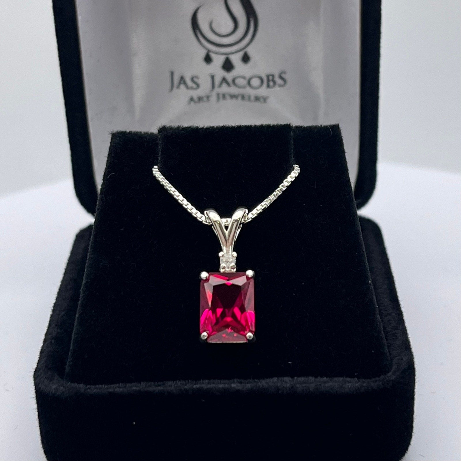 Beautiful Emerald Cut Ruby Necklace with White Sapphire accent
