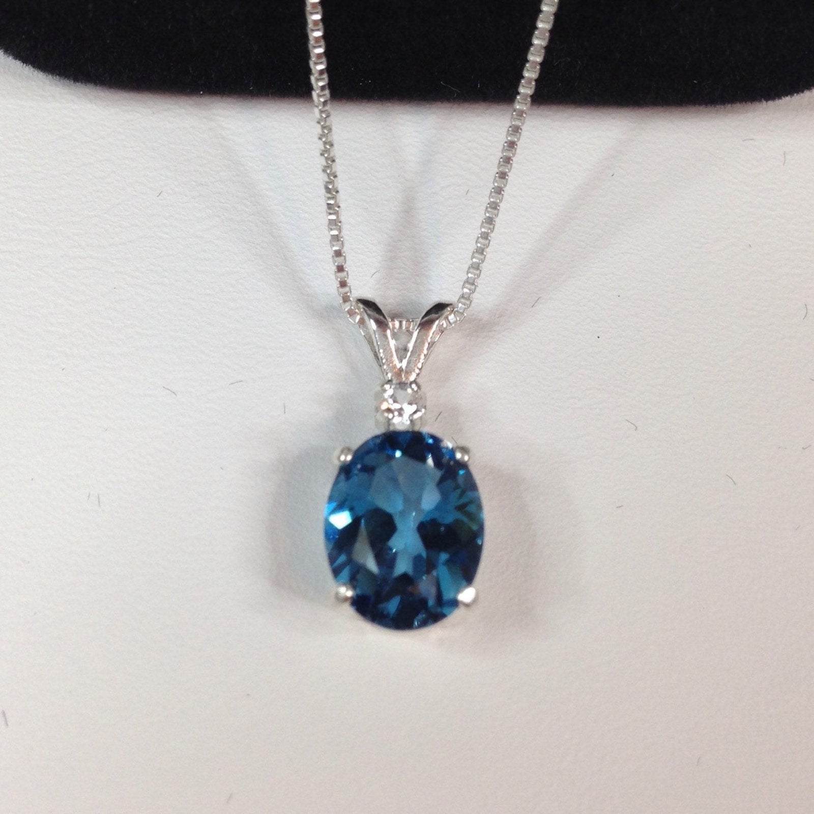 BEAUTIFUL London Blue Topaz & White Sapphire Sterling Silver Pendant Necklace 18" Trending Jewelry Gift December Fianc