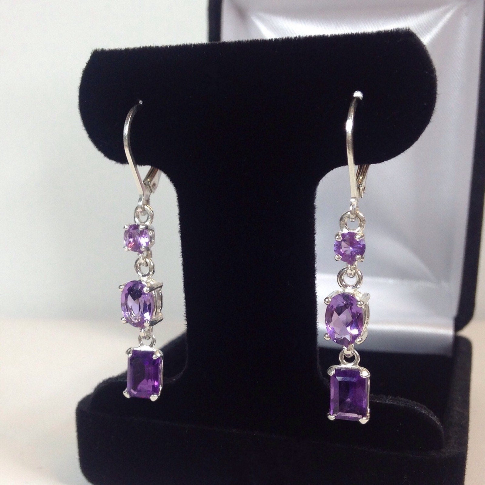Gorgeous Amethyst & Sterling Silver Multi Cut Leverback Earrings