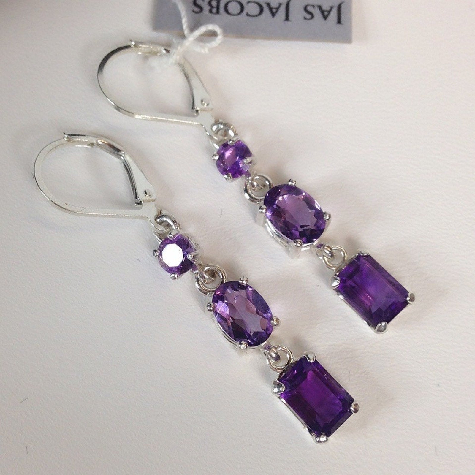 Beautiful Multi Cut Amethyst Earrings in Sterling Silver