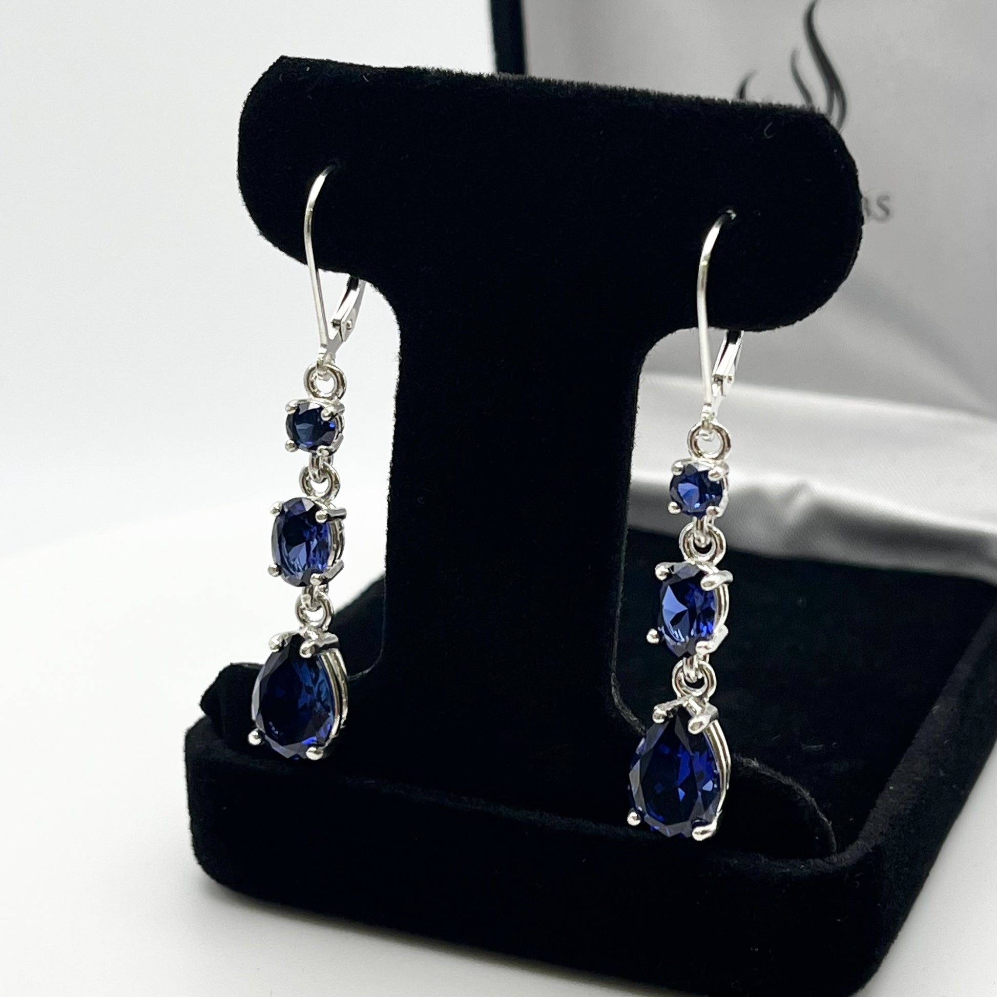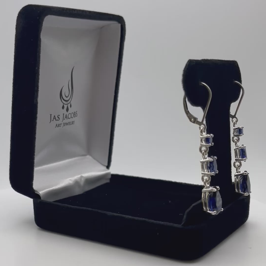 Gorgeous Multi Cut Blue Sapphire Leverback Earrings