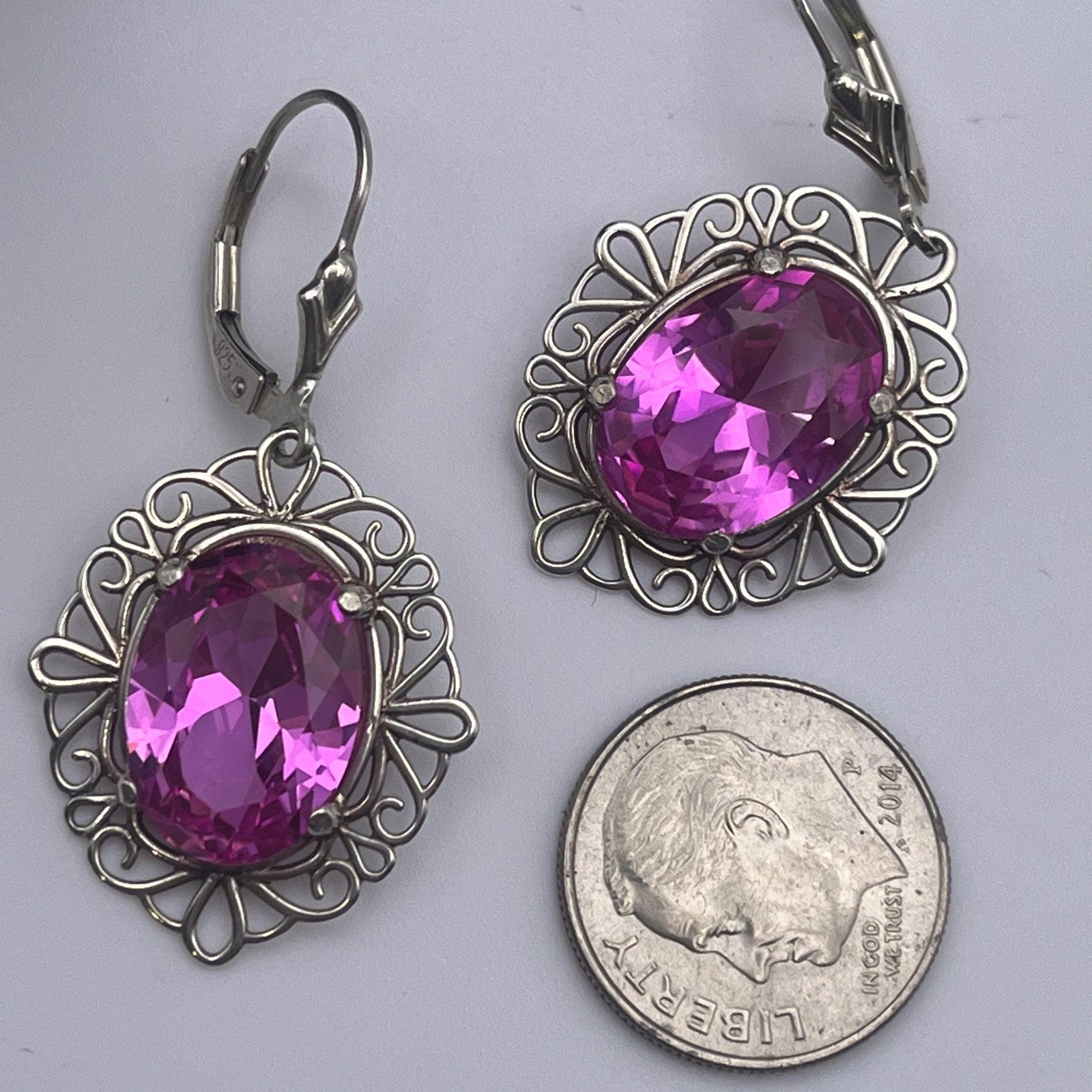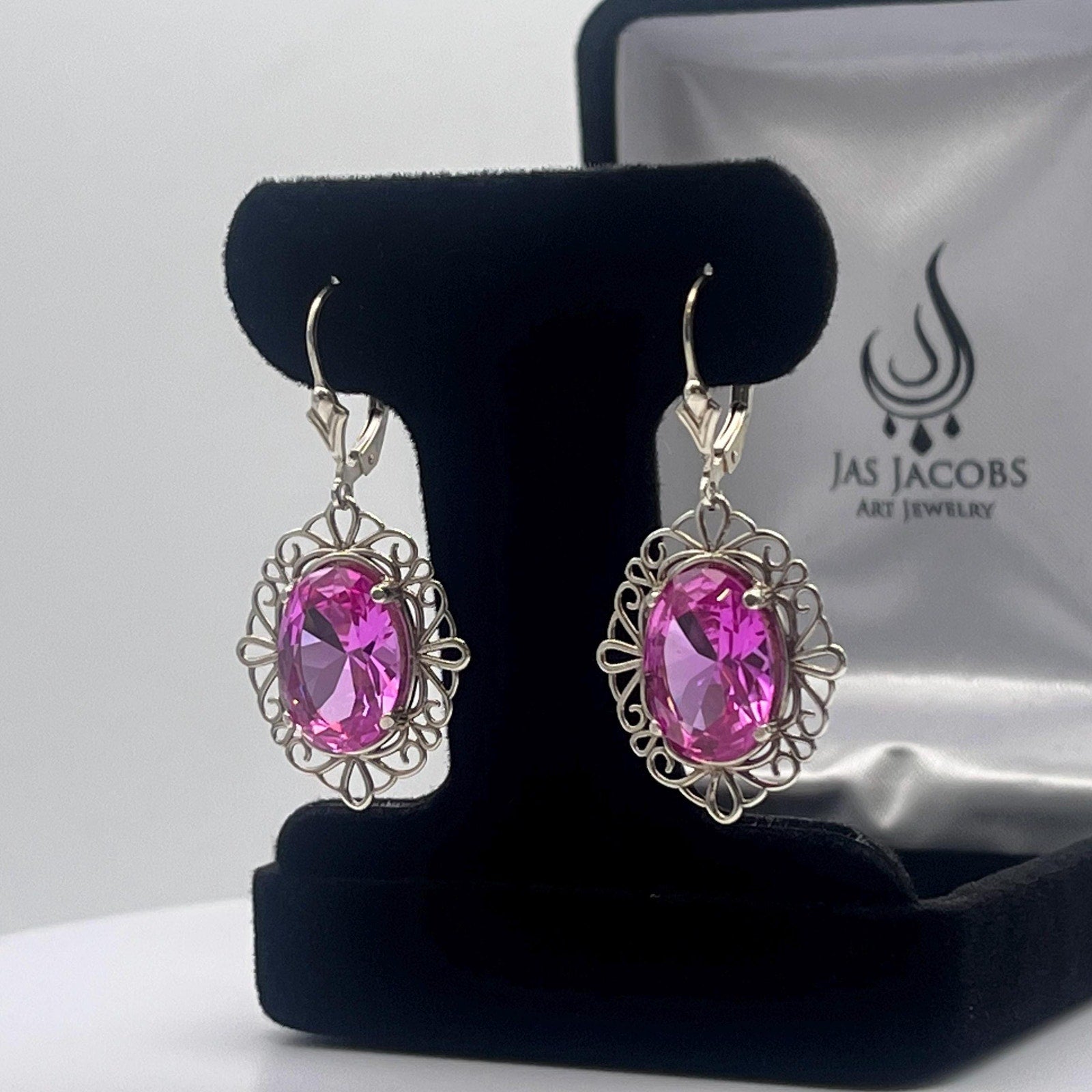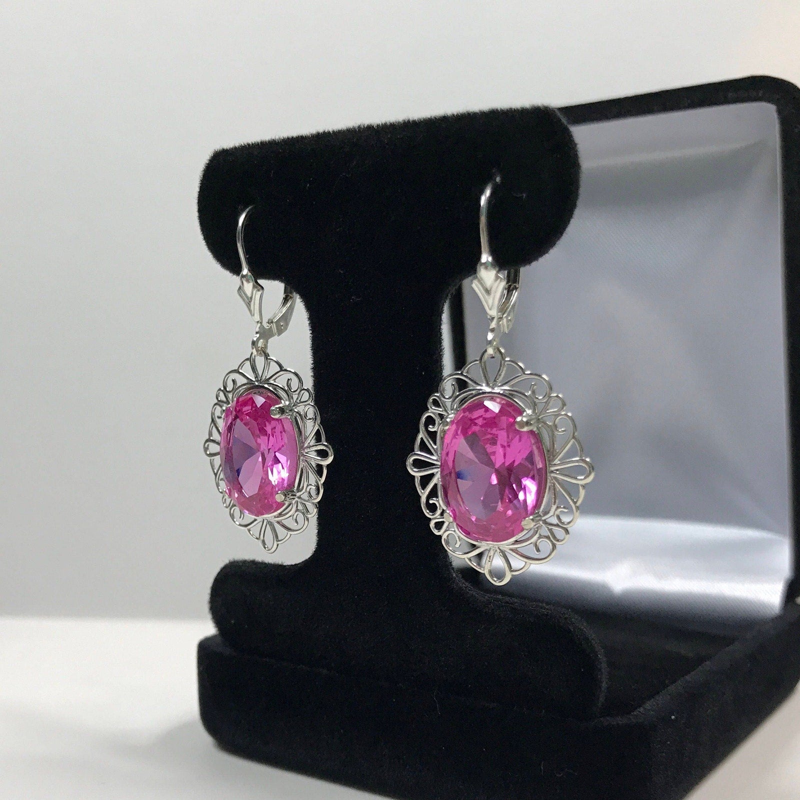 Beautiful Pink Sapphire & Sterling Silver Leverback Earrings
