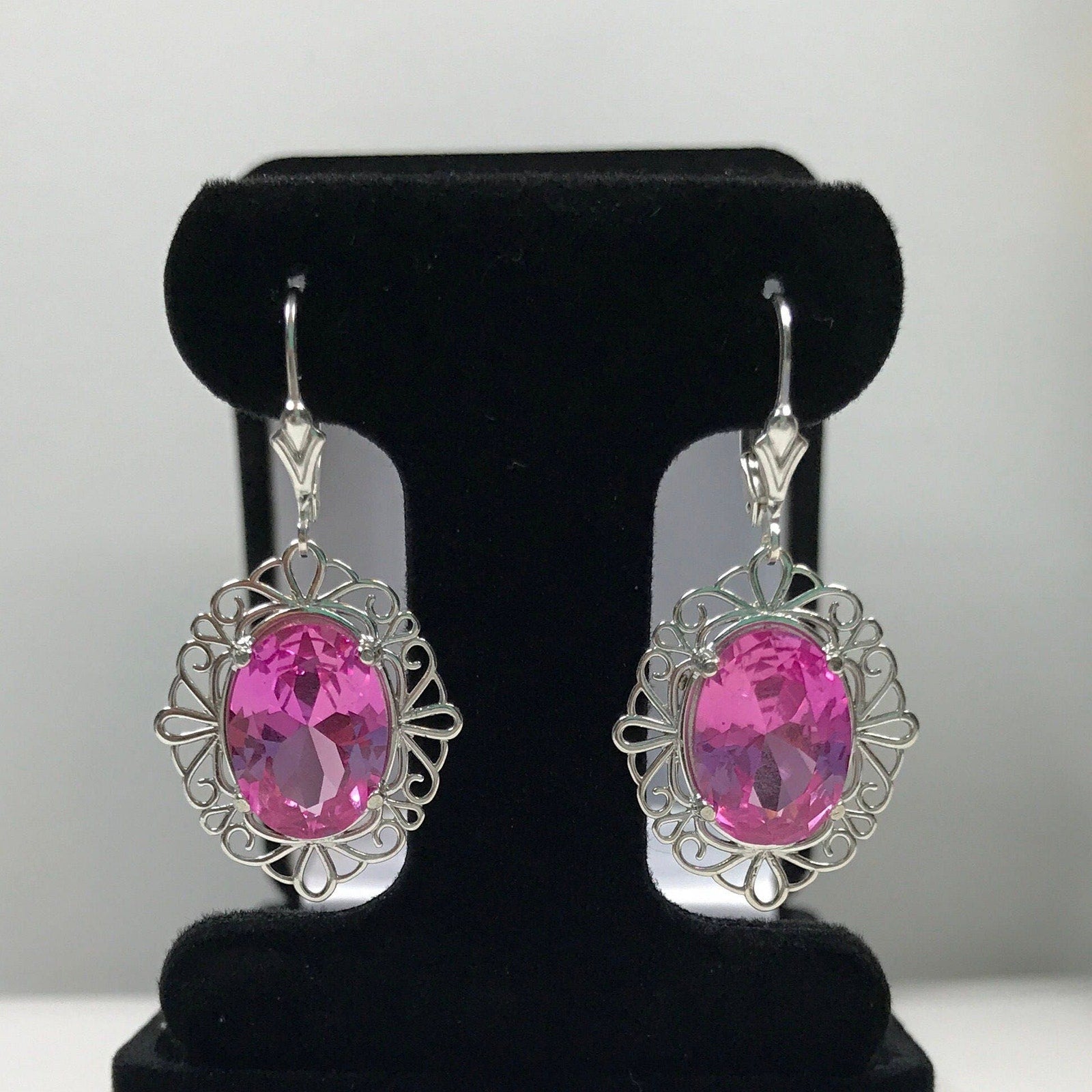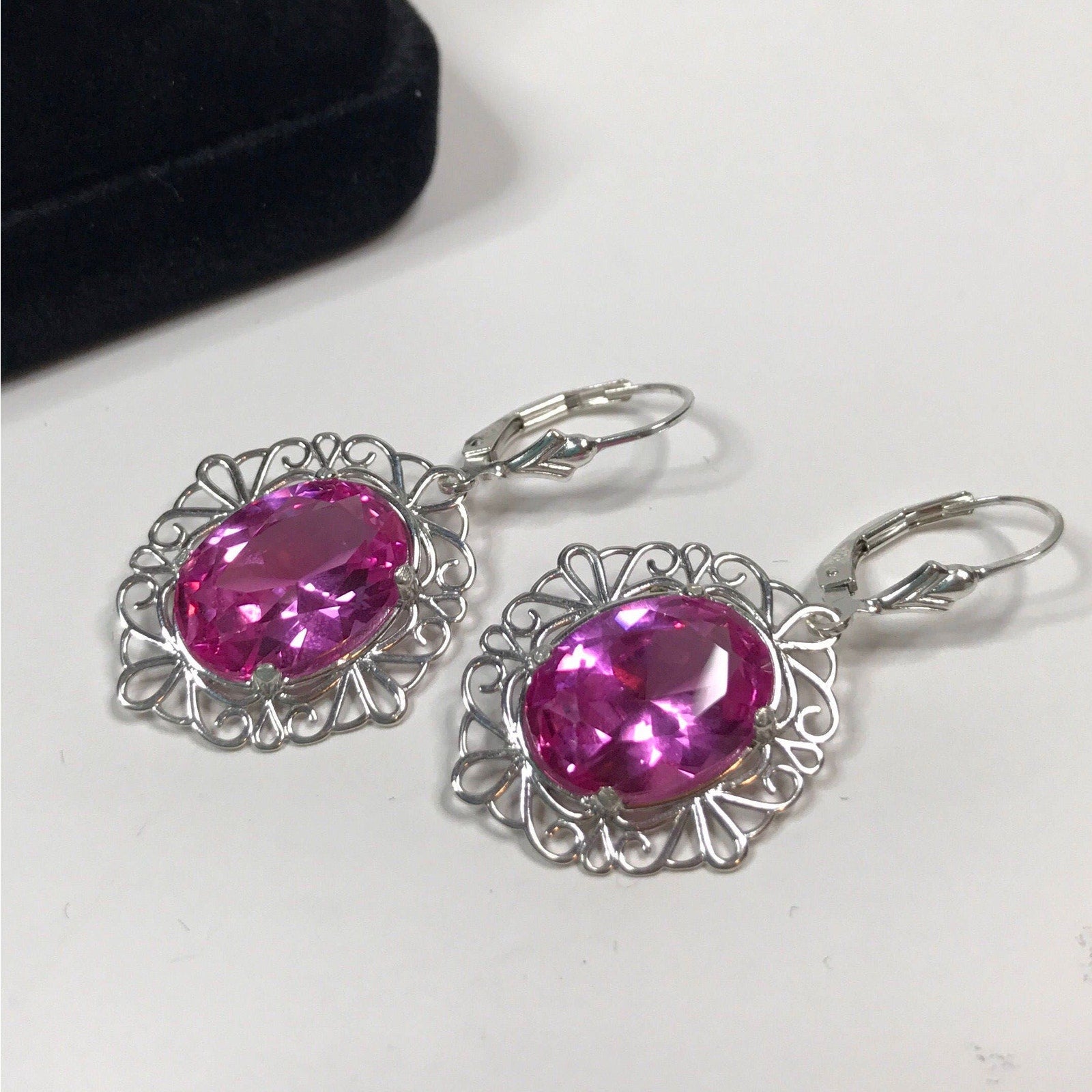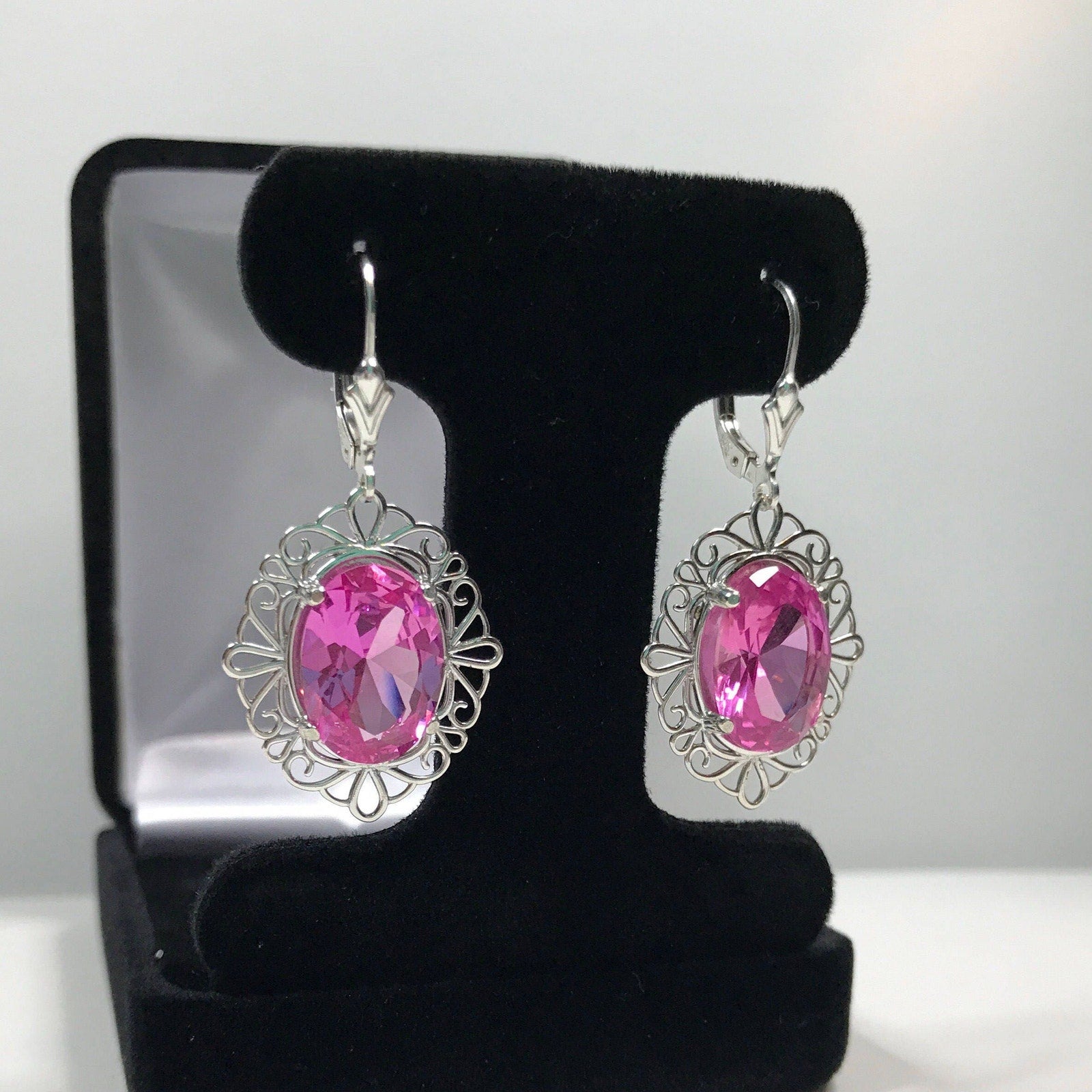 Beautiful Pink Sapphire & Sterling Silver Leverback Earrings