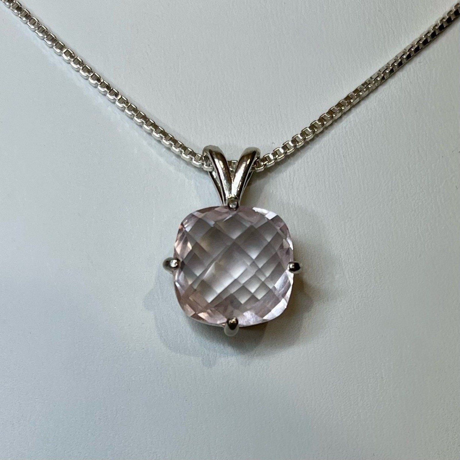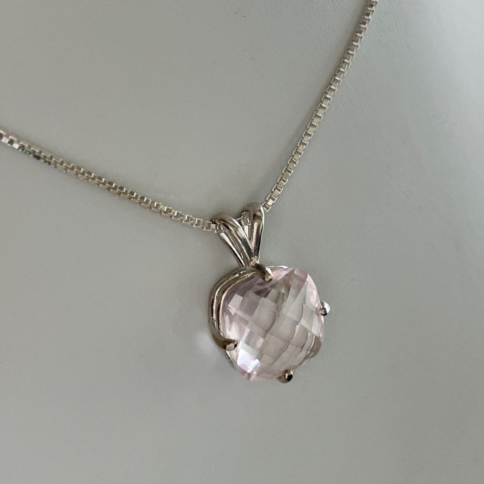 Gorgeous 12mm 6.5ct Rose Quartz Necklace or Pendant in Sterling Silver 10k or 14k Rose Gold Yellow or White Gold Jewelry Gift
