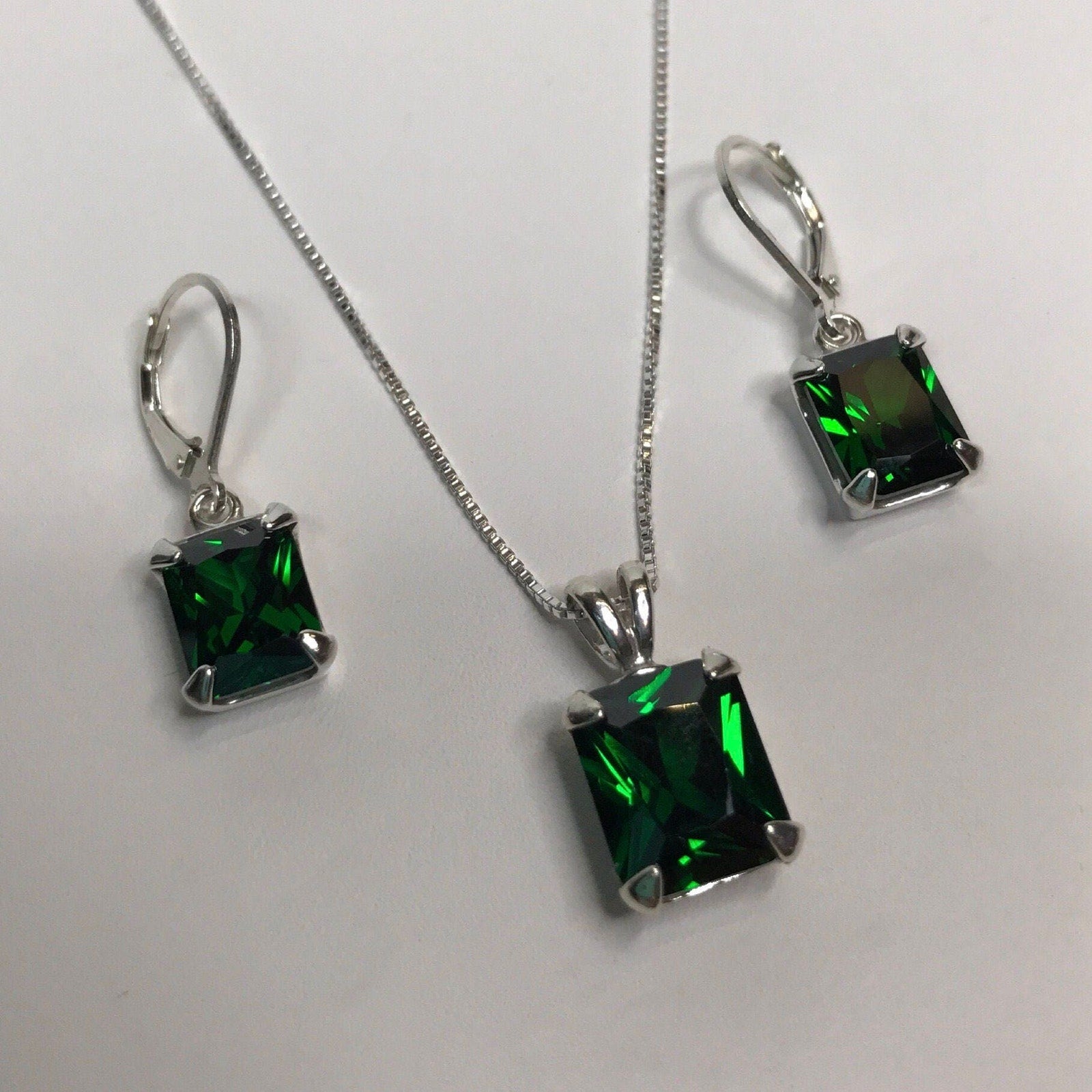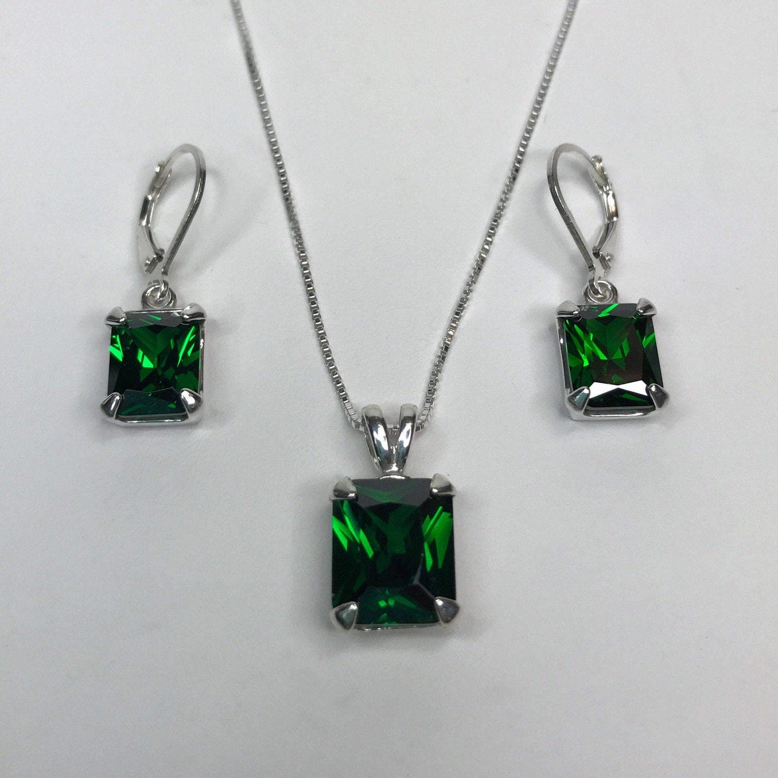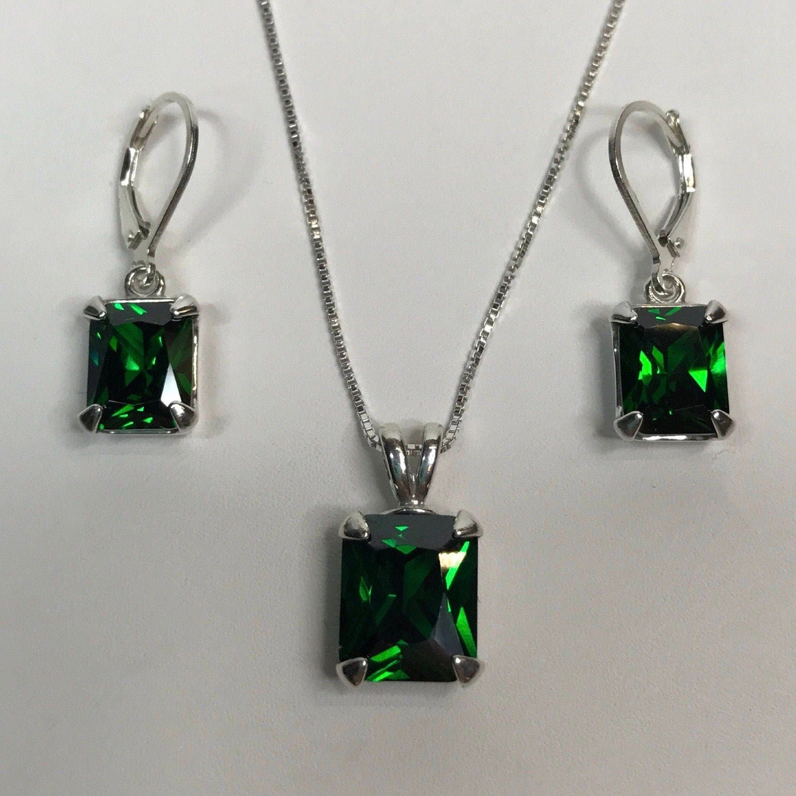 Gorgeous 13ctw Emerald Cut Emerald Pendant Necklace and Earring Set Fine Jewelry Gift Holiday May Birthstone Emerald Earring