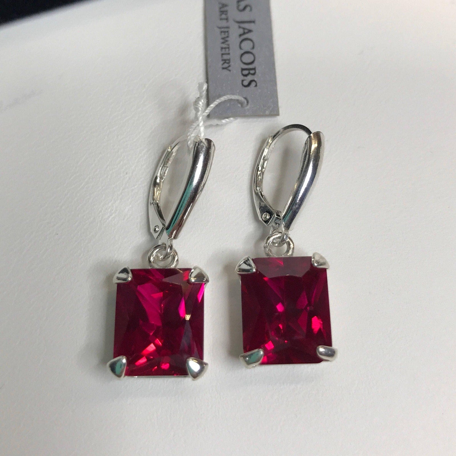 GORGEOUS 14ctw Emerald Cut Ruby Earrings in Sterling Silver