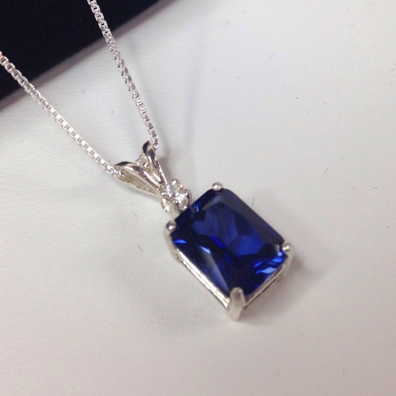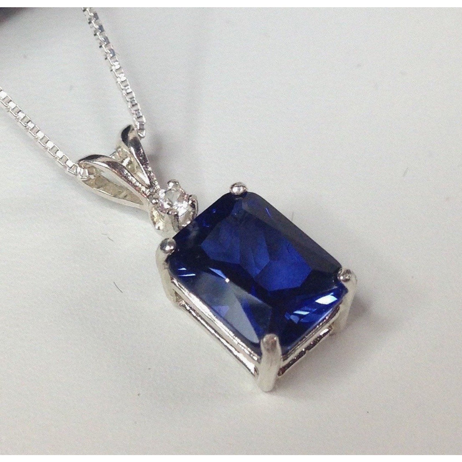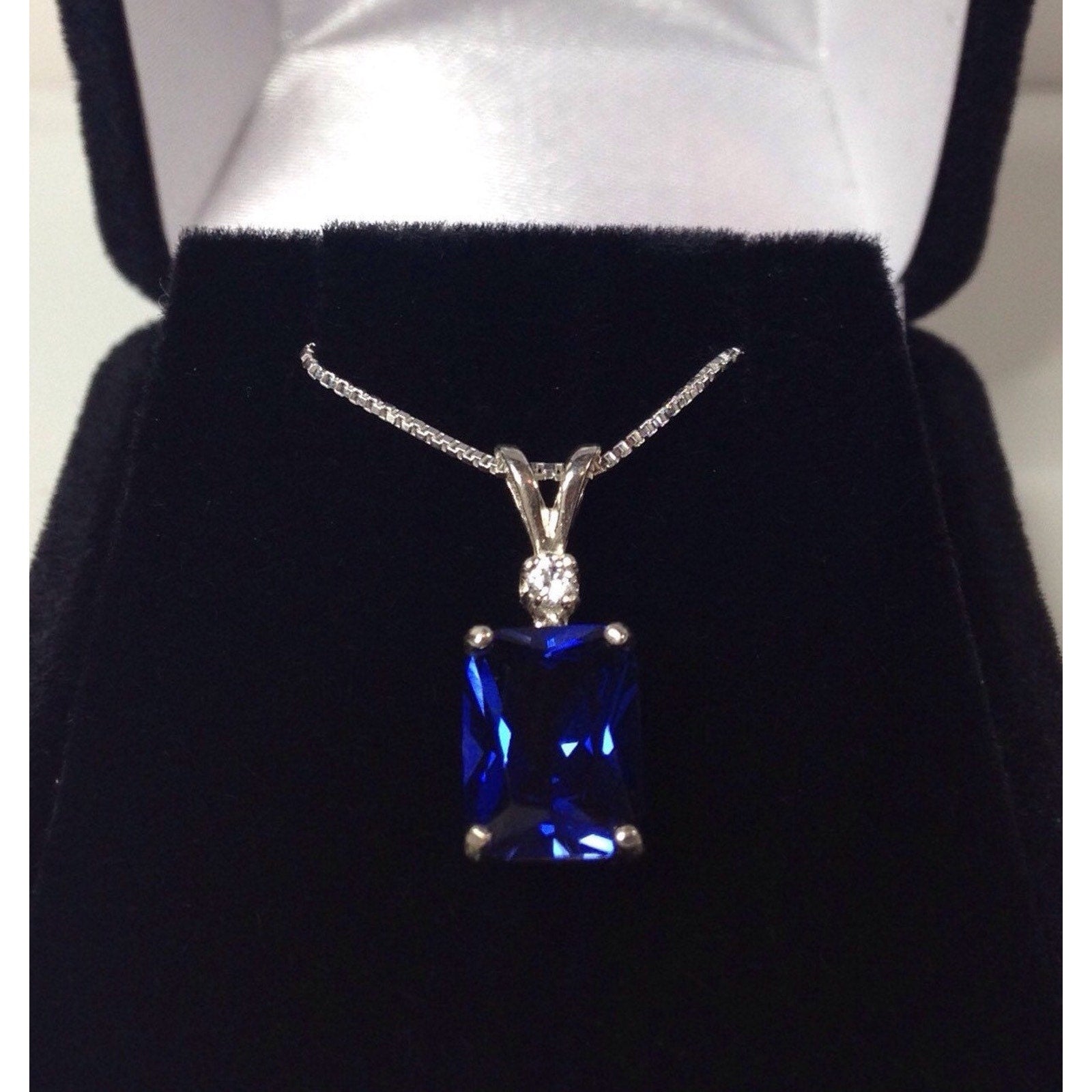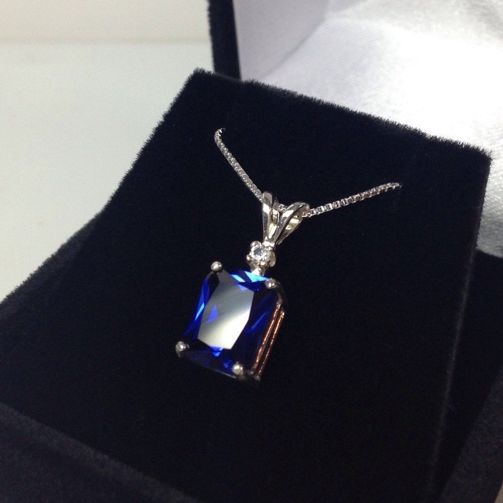 Gorgeous 4ct Emerald Cut Sapphire Pendant Necklace Blue & White Sapphire Accents jewelry trends Gift Bridal September