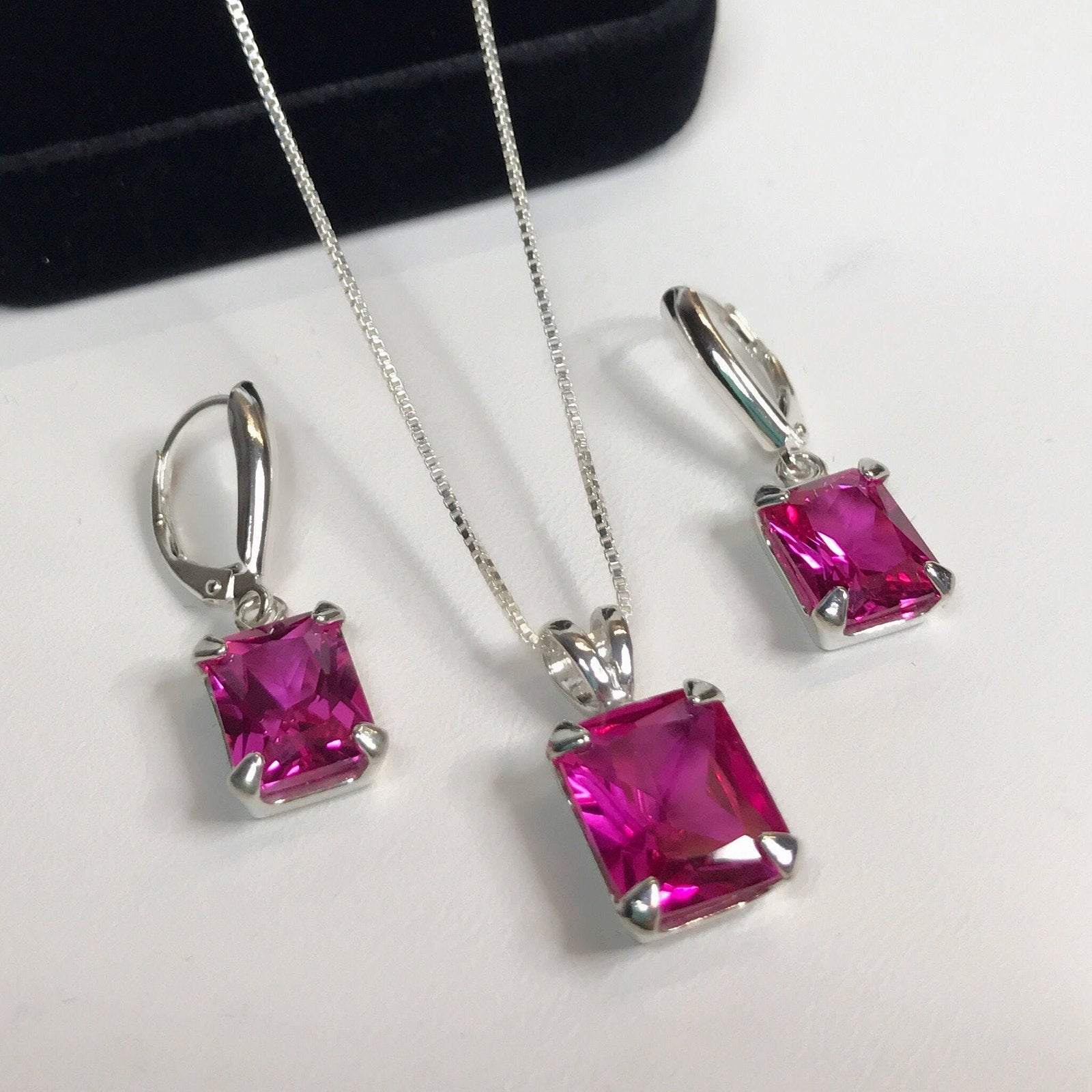GORGEOUS 7ct Emerald Cut Pink Sapphire Necklace Sterling Silver Pendant 18" Trending Jewelry Gift September