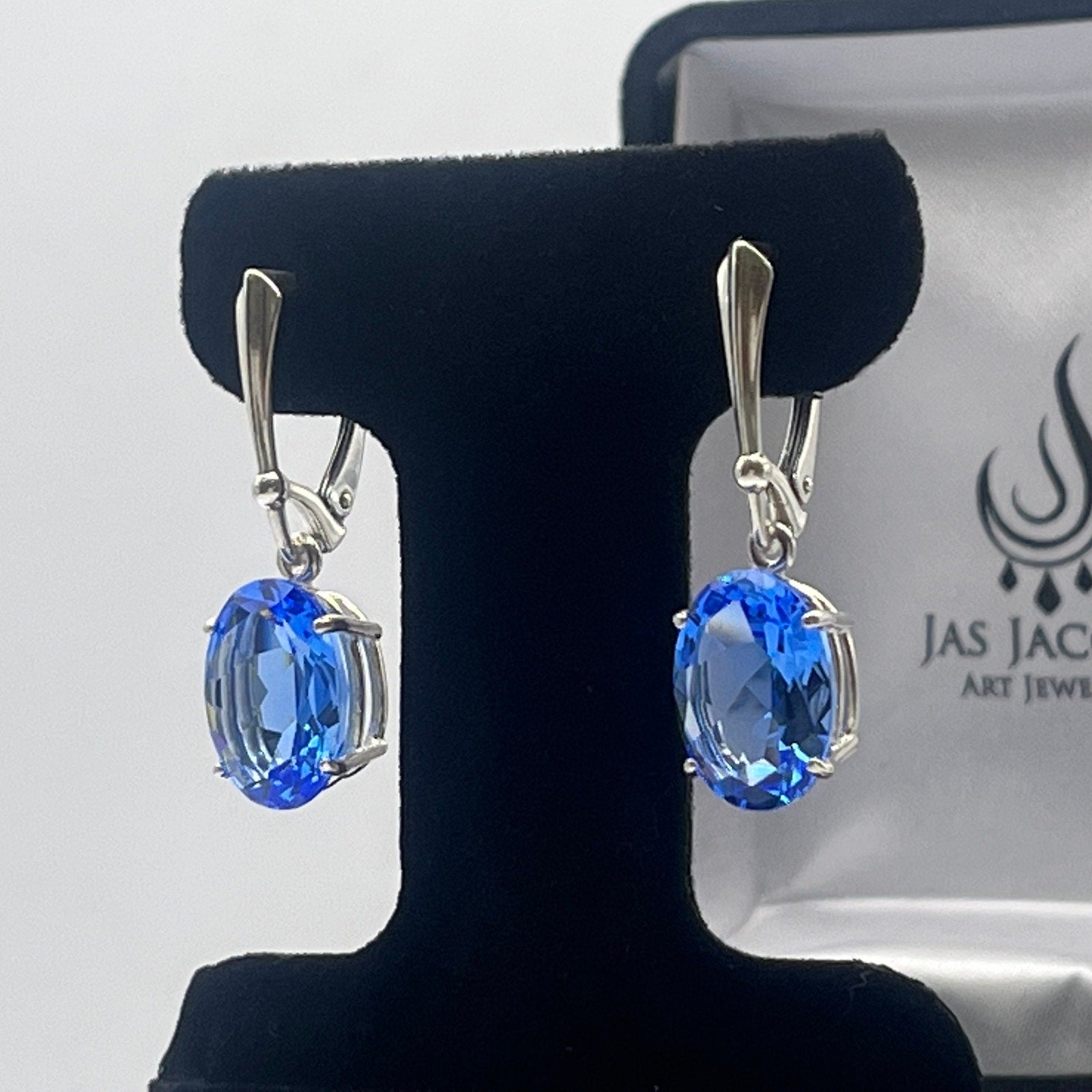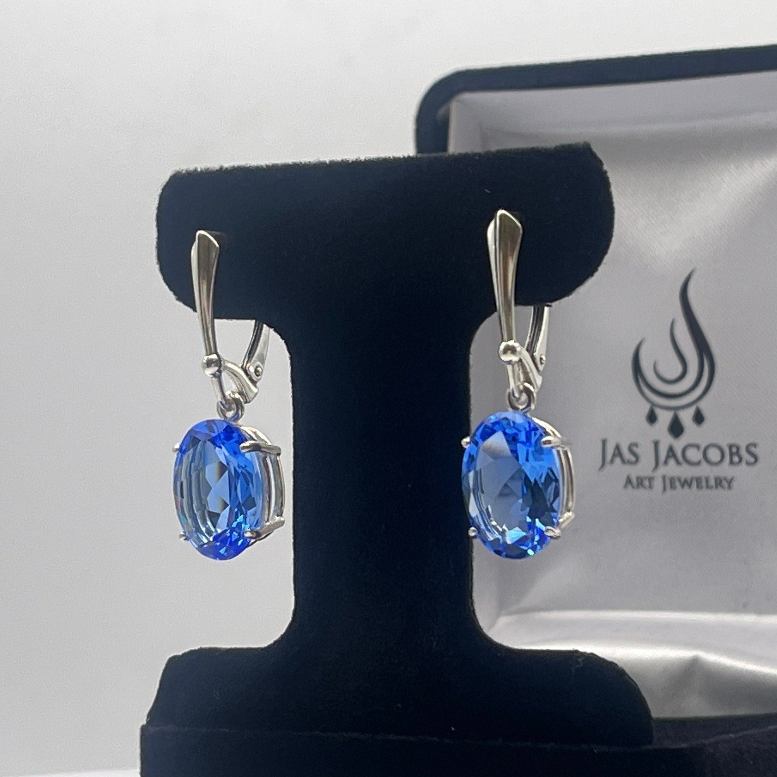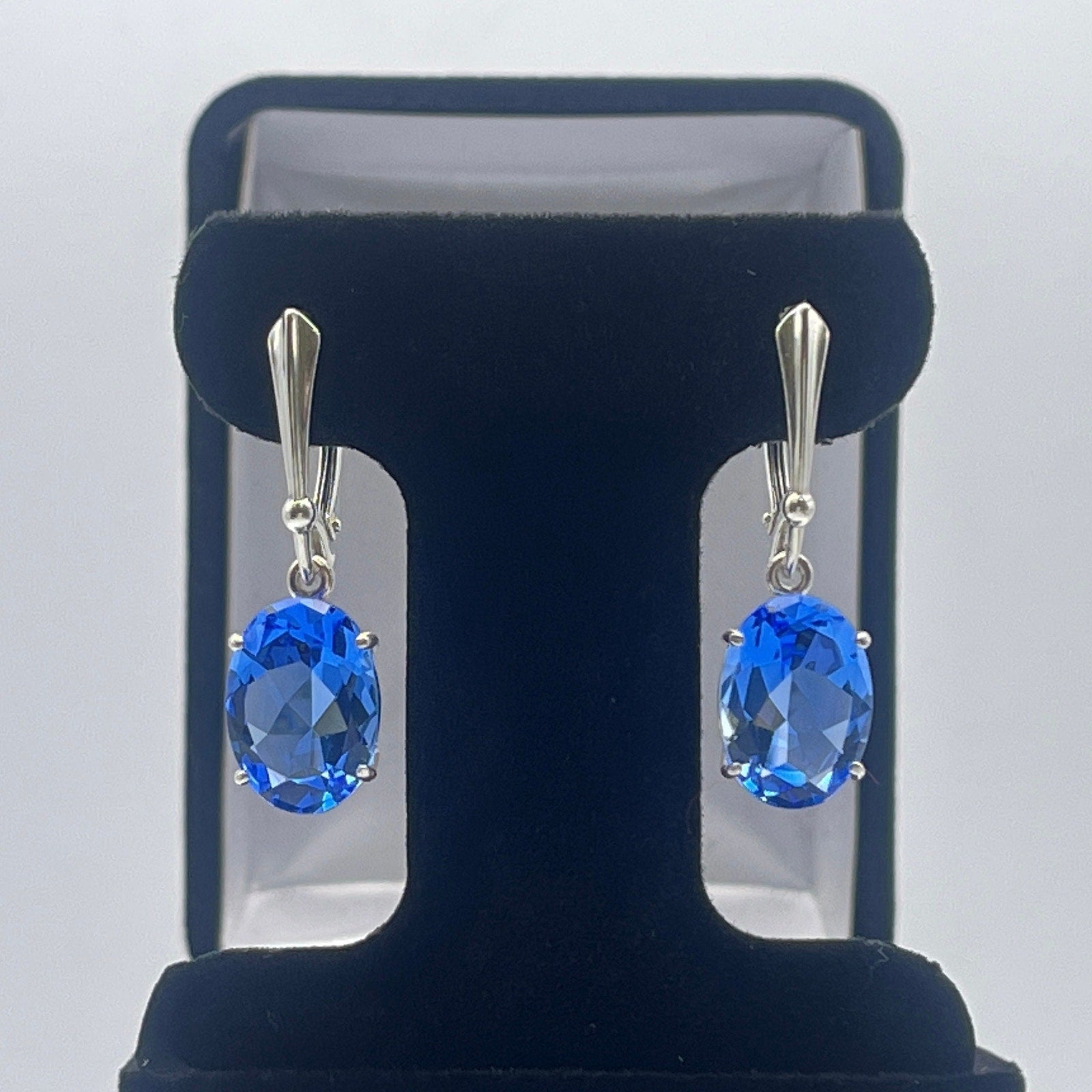 Gorgeous Oval Cut Blue Quartz Dangle Leverback Earrings