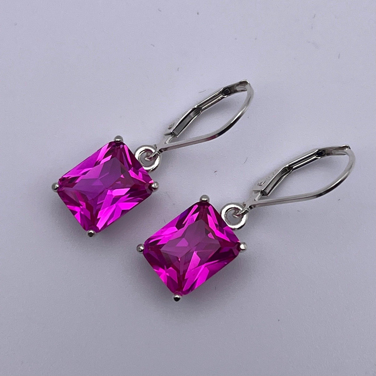 Gorgeous 8ctw Emerald Cut Pink Sapphire Earrings Jewelry Gift